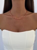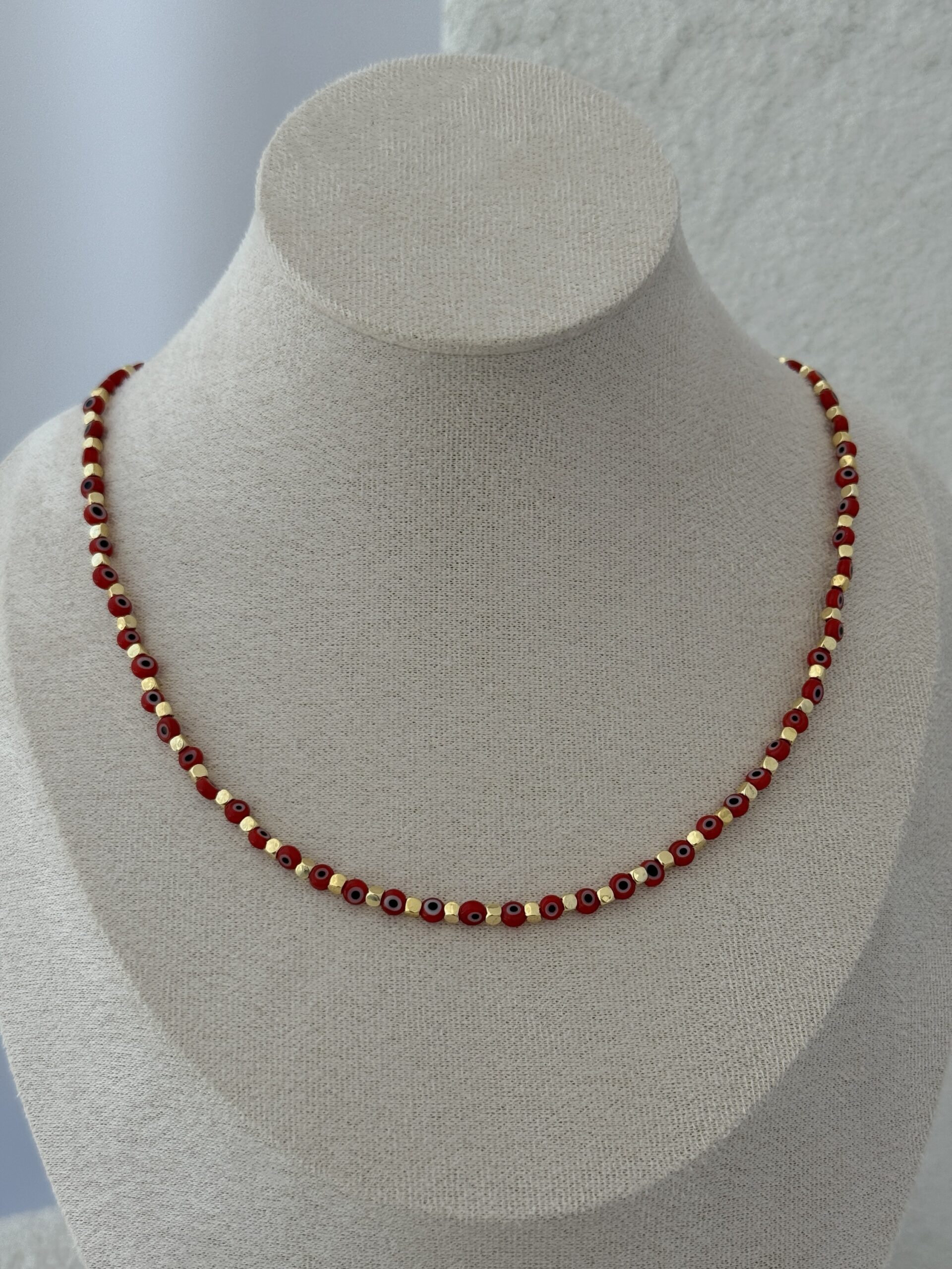 Özel Seri Nazar Motif Kırmızı Boncuklu Gold Kolye