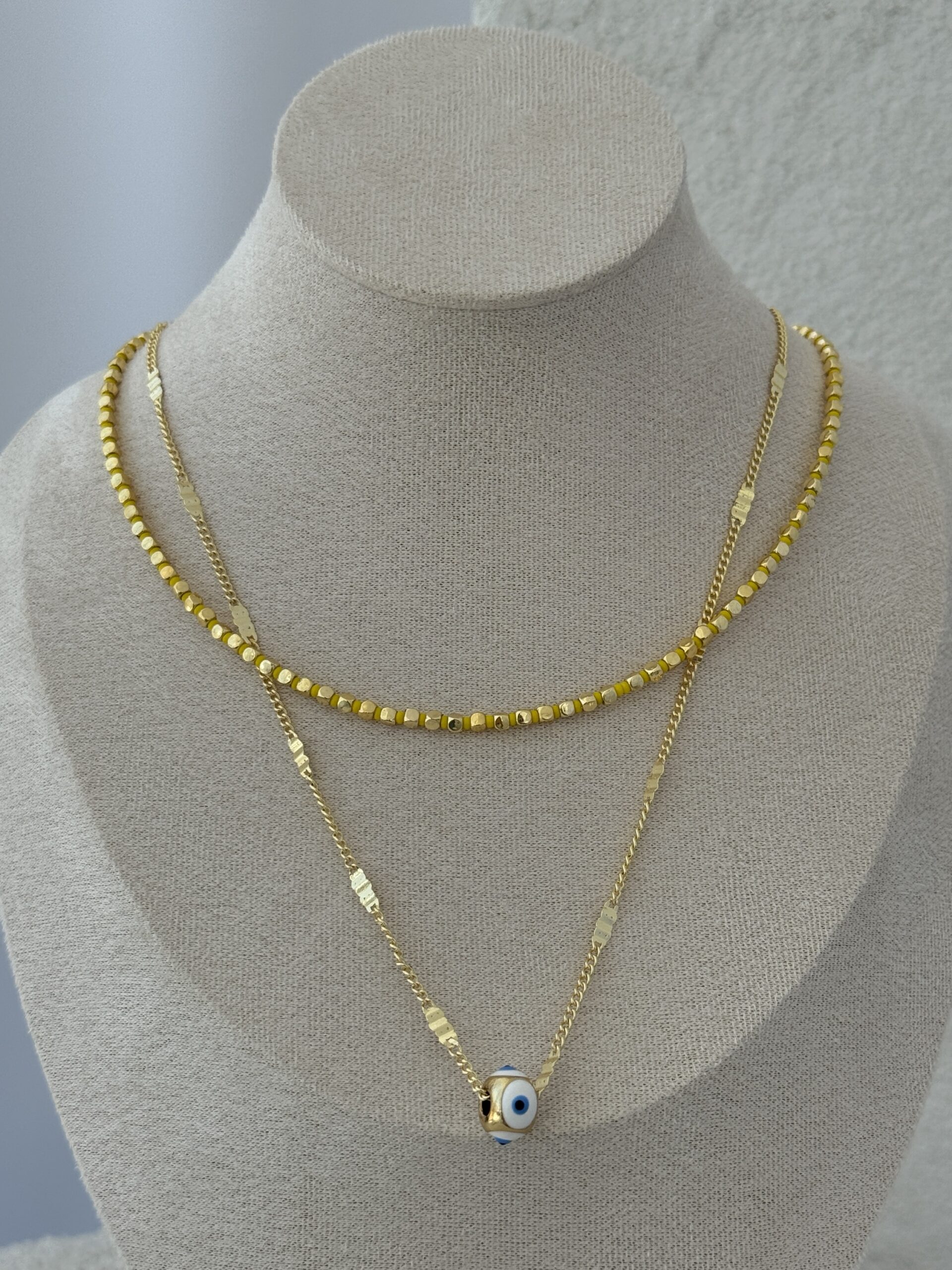 Özel Seri Nazar Motif Sarı Boncuklu Gold İkili Kolye