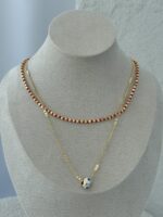 Özel Seri Nazar Motif Turuncu Boncuklu İkili Gold Kolye