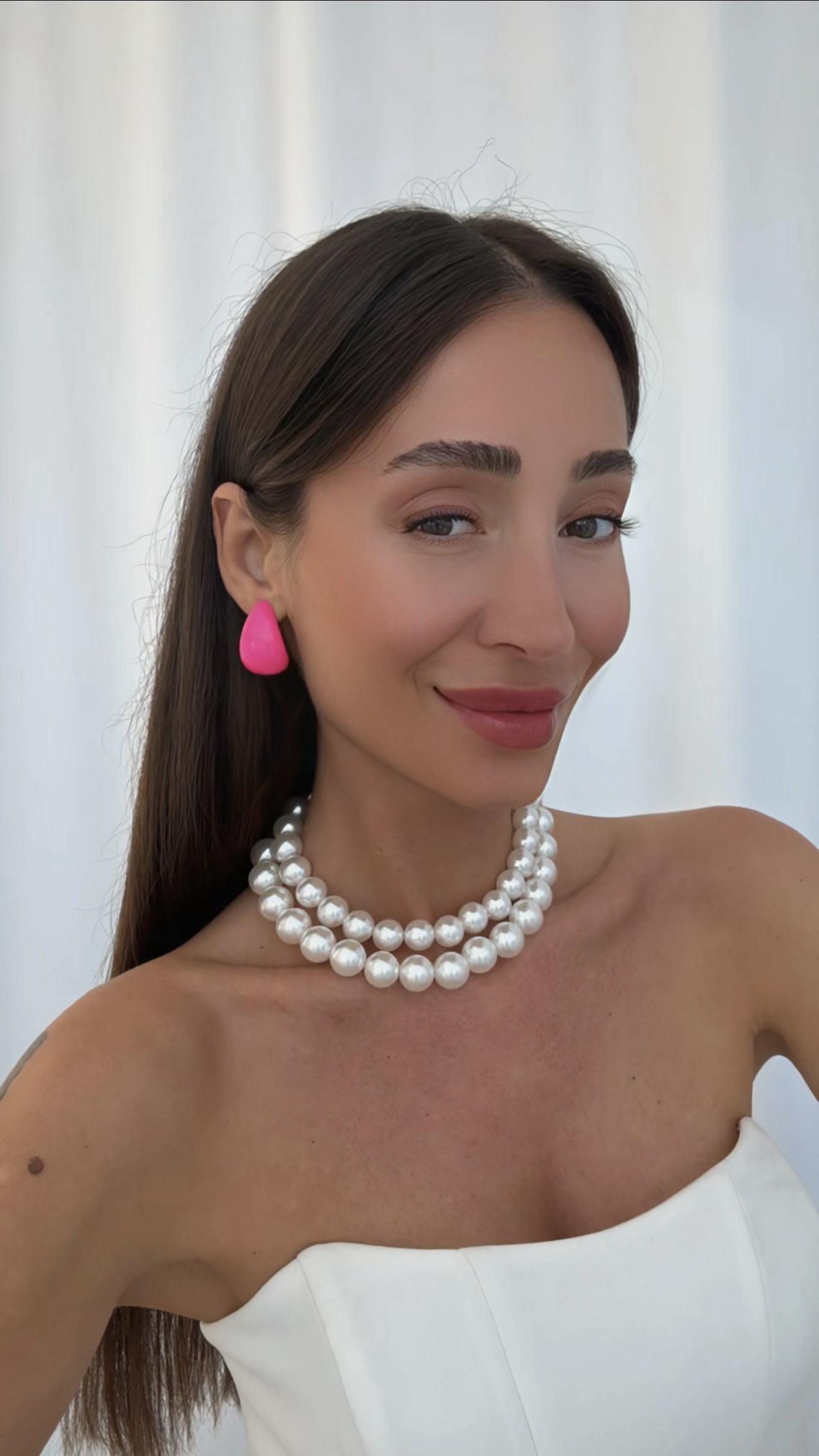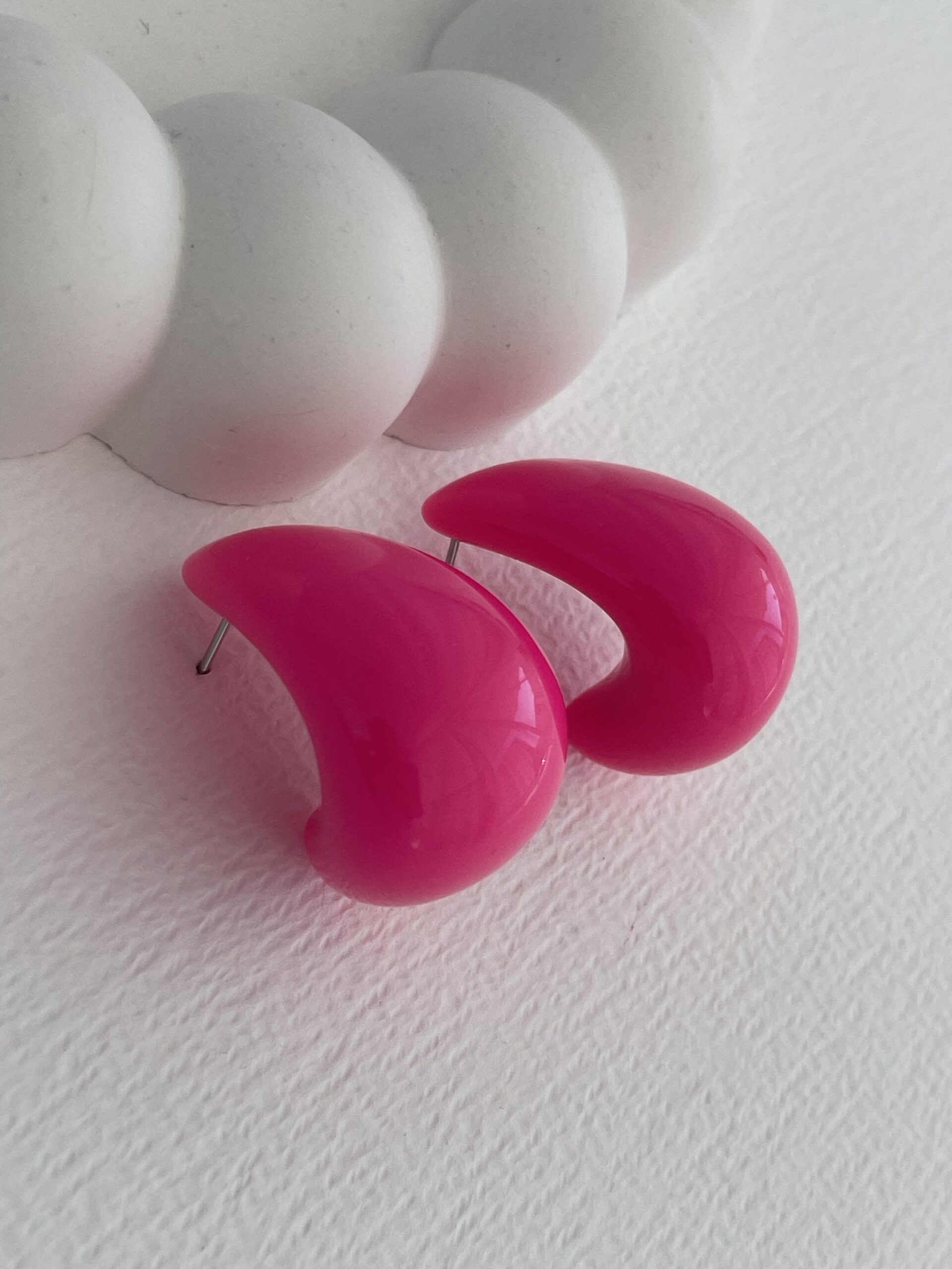 Özel Seri Neon Pembe Renk Damla Tasarım Akrilik Küpe