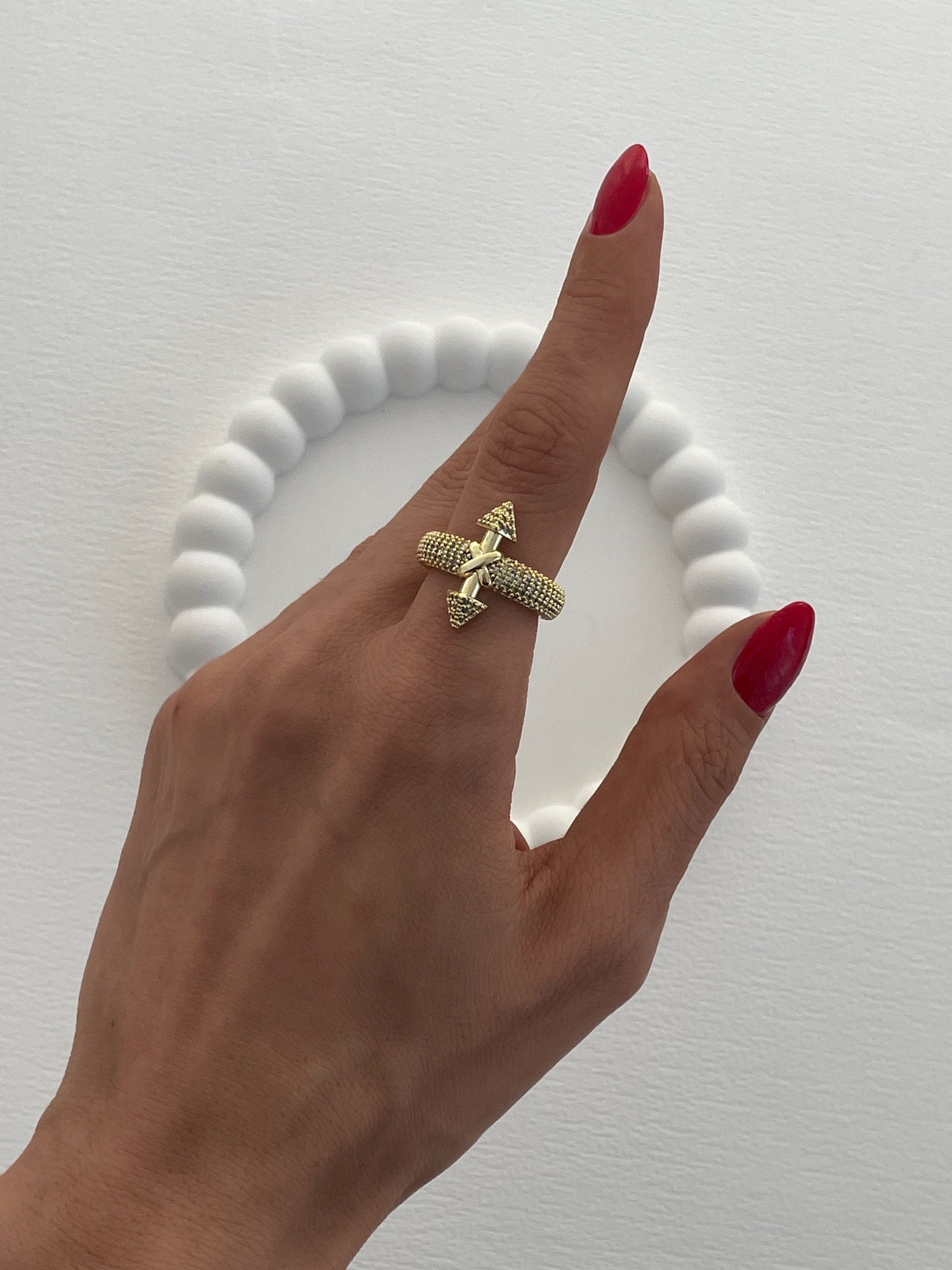 Özel Seri Ok Tasarım Zirkon Taşlı Ayarlanabilir Gold Yüzük