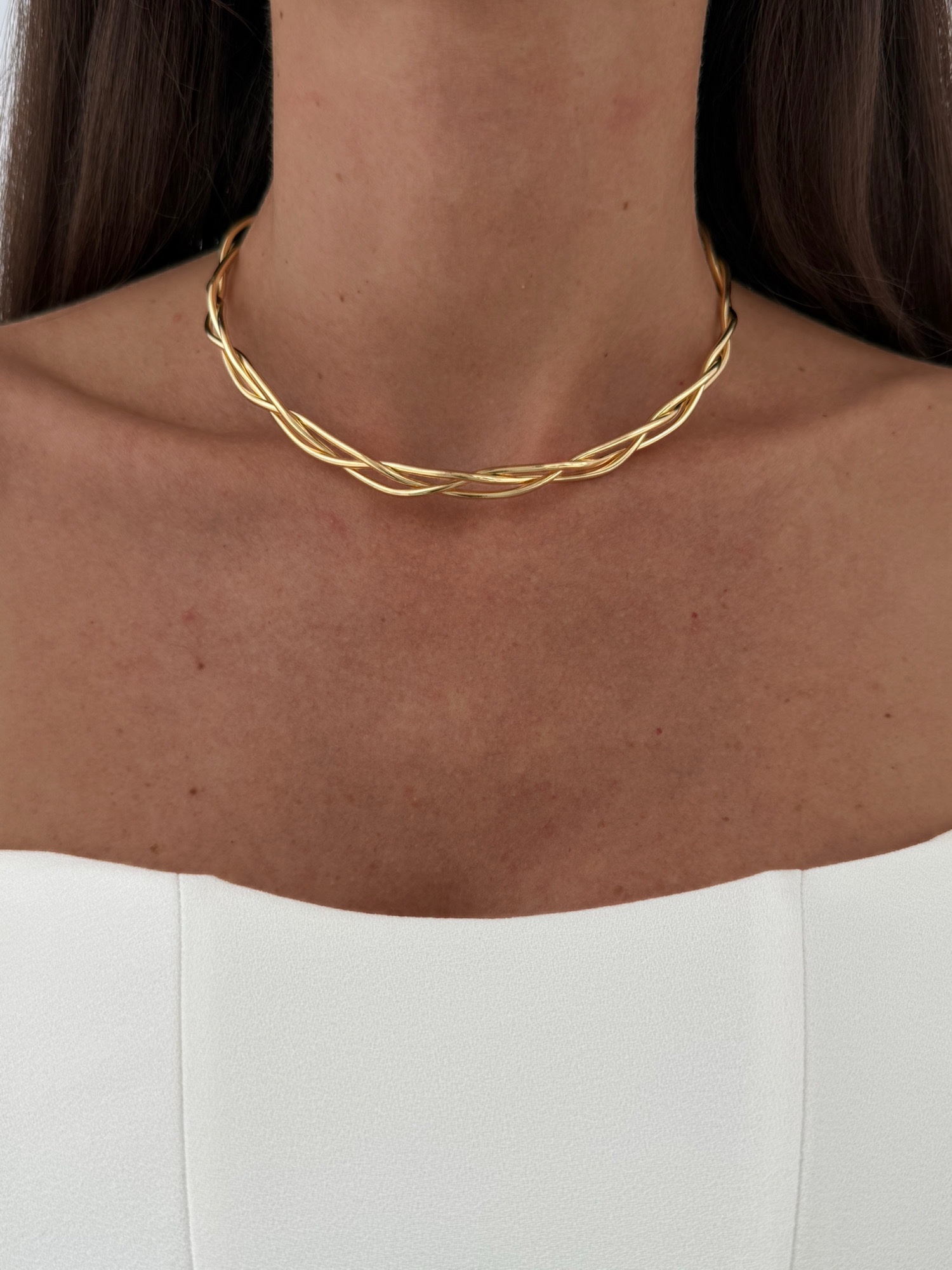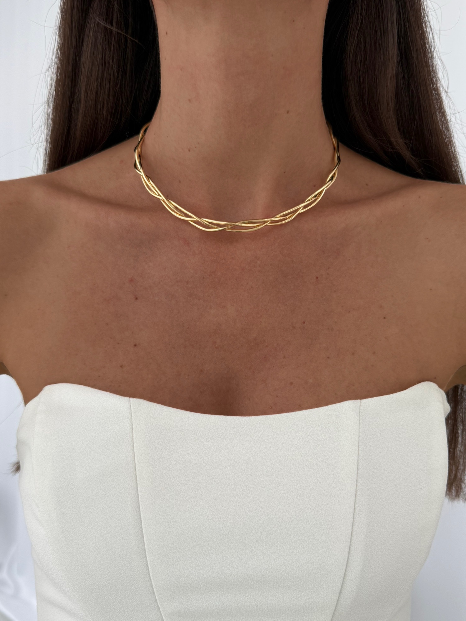 Özel Seri Örgü Tasarım Gold Choker Kolye
