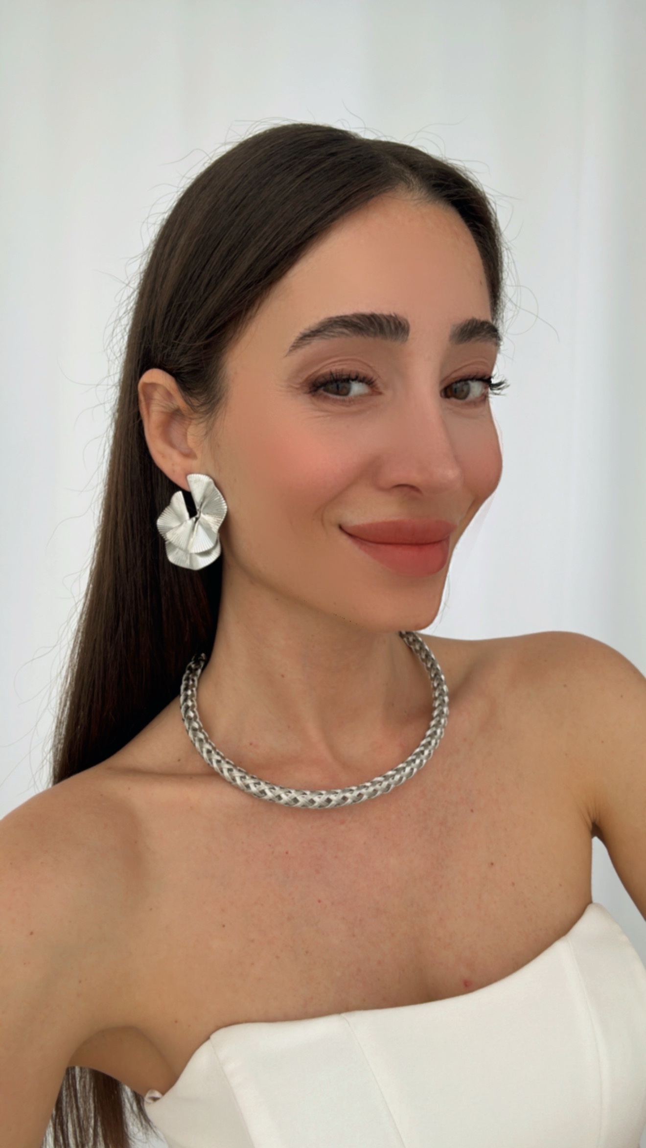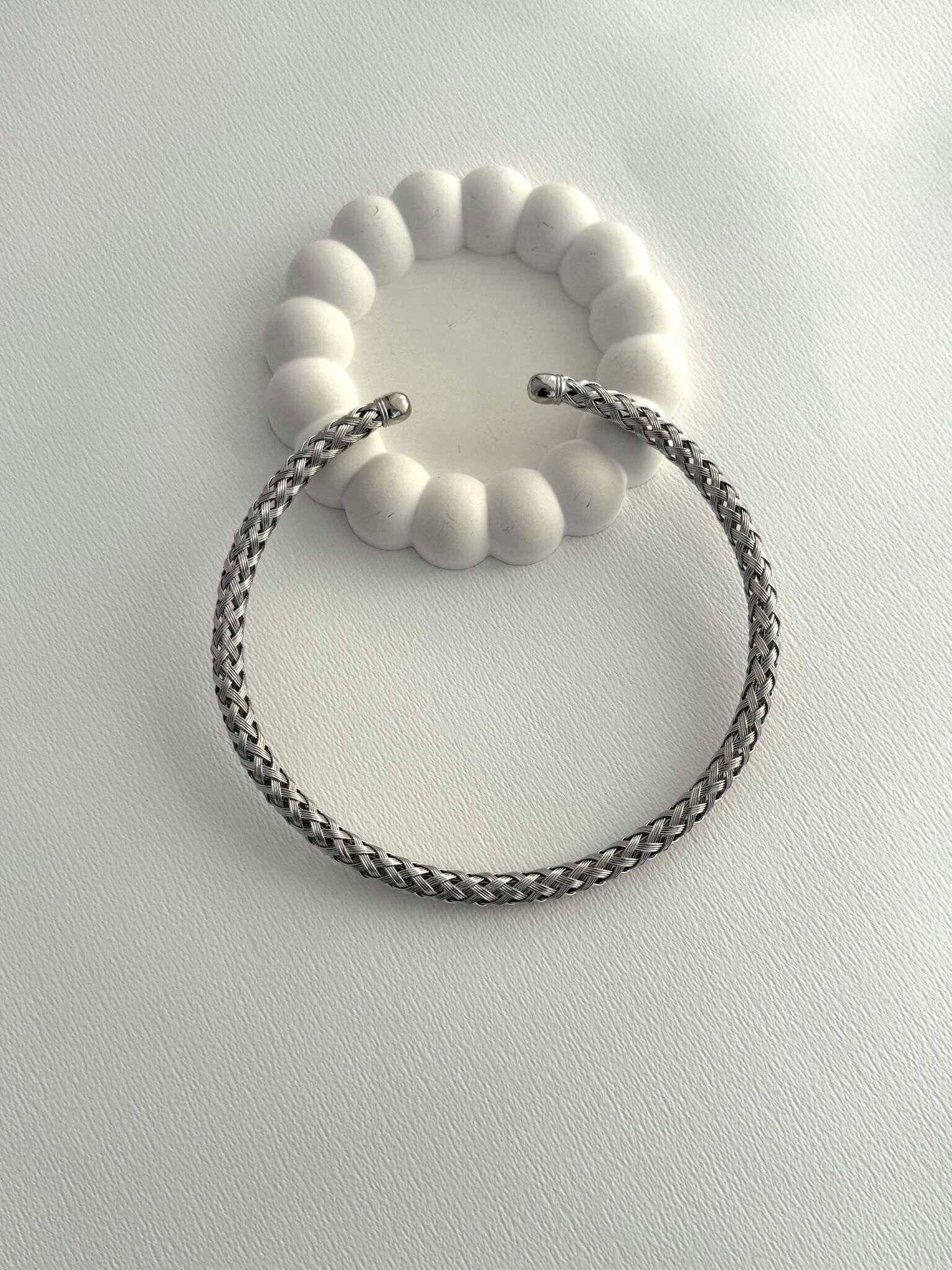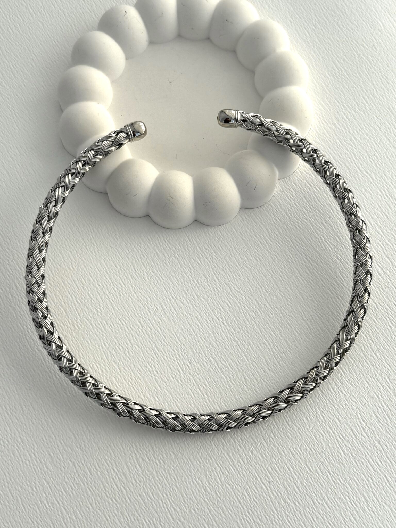 Özel Seri Örgü Tasarım Gümüş Choker Kolye