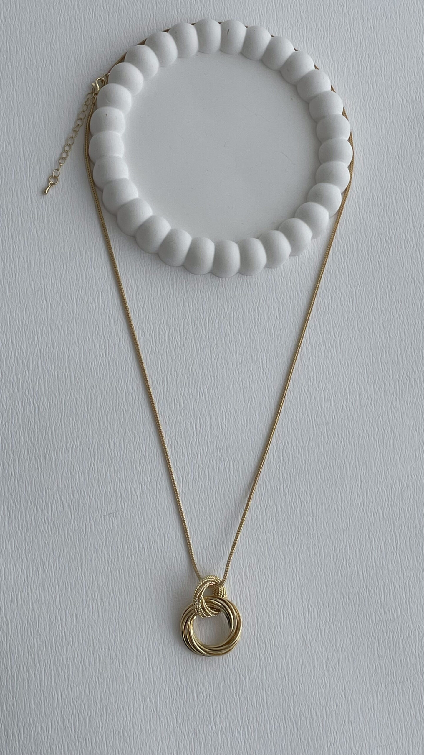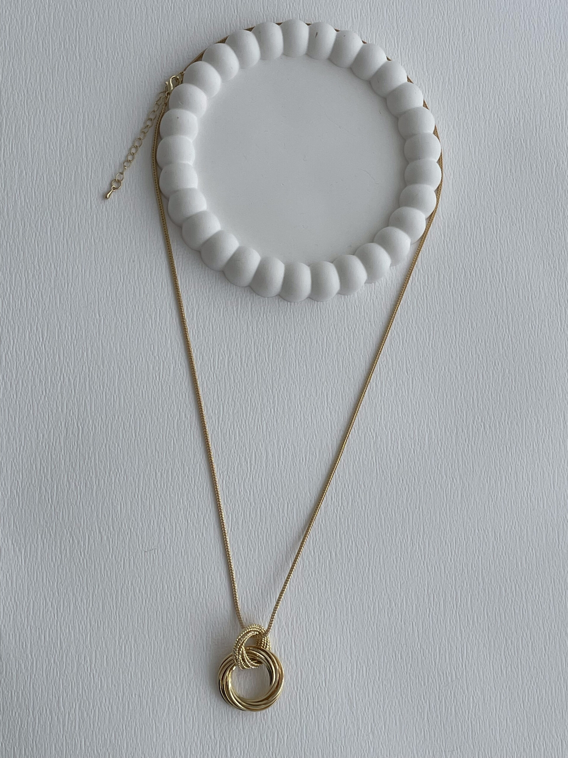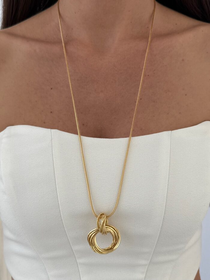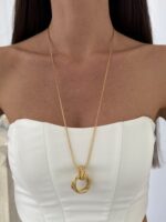 Özel Seri Örgü Zincir Tasarım Halka Uç Detay Gold Kolye
