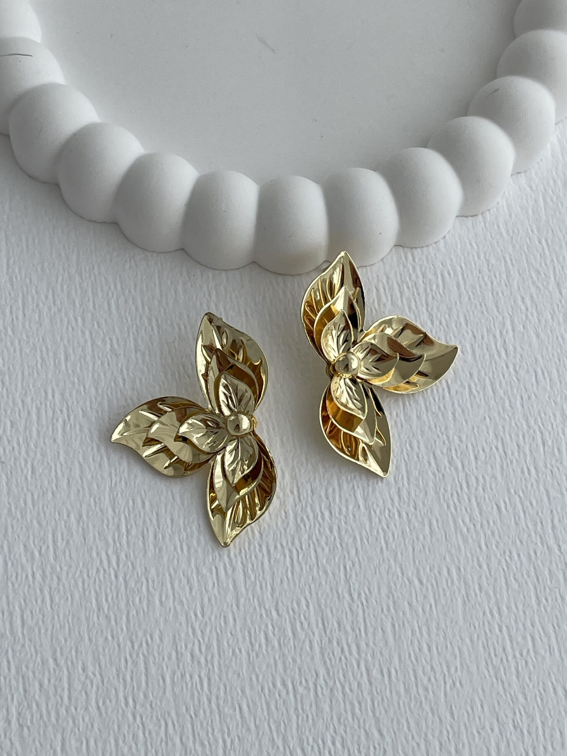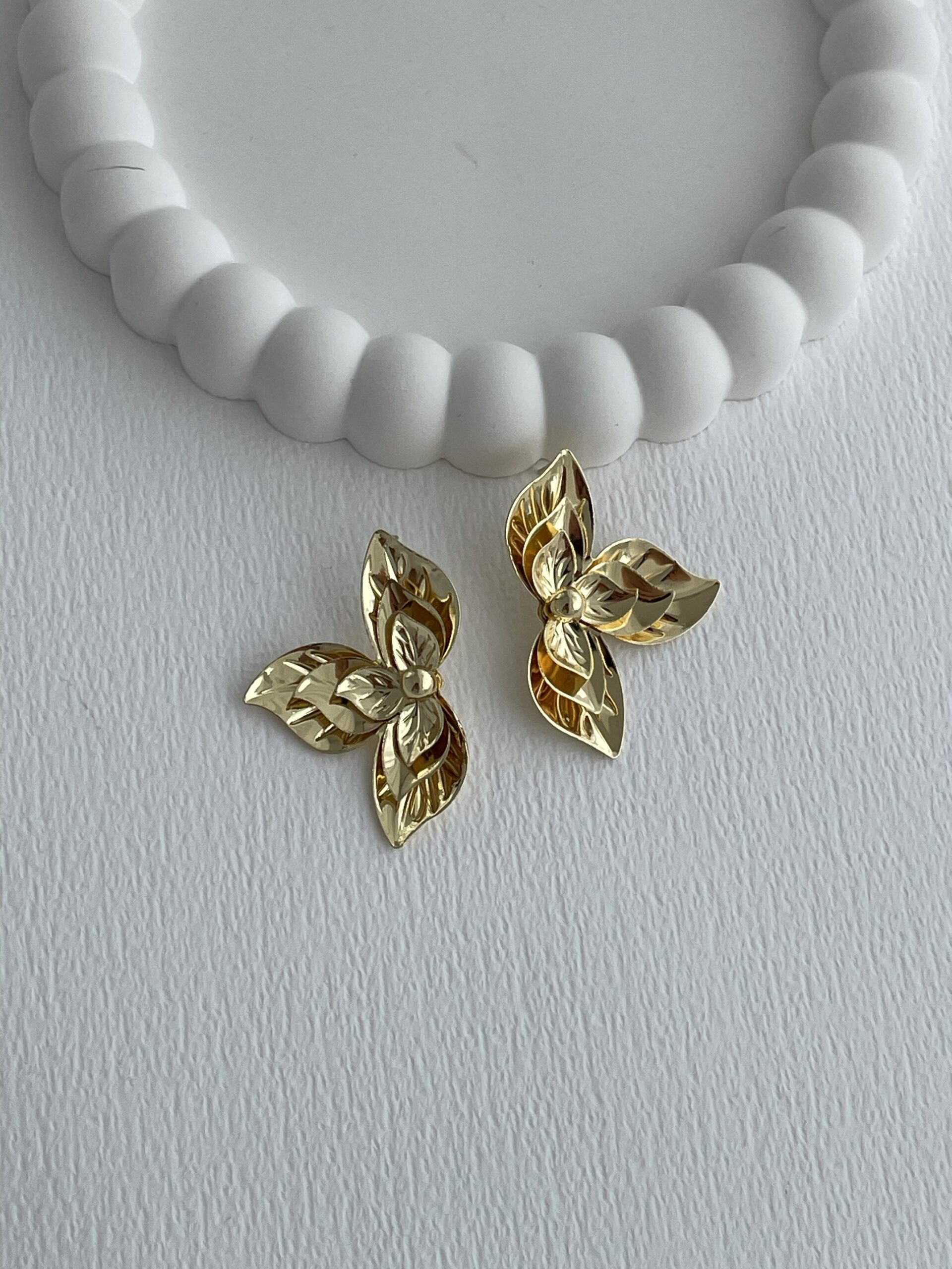 Özel Seri Orta Boy İç içe Yaprak Tasarım Gold Küpe