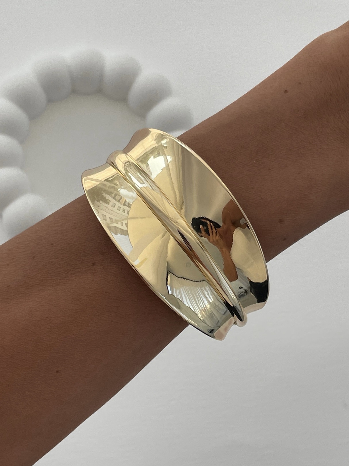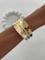 Özel Seri Ortası Çizgi Detay Gold Kalın Kelepçe Bileklik