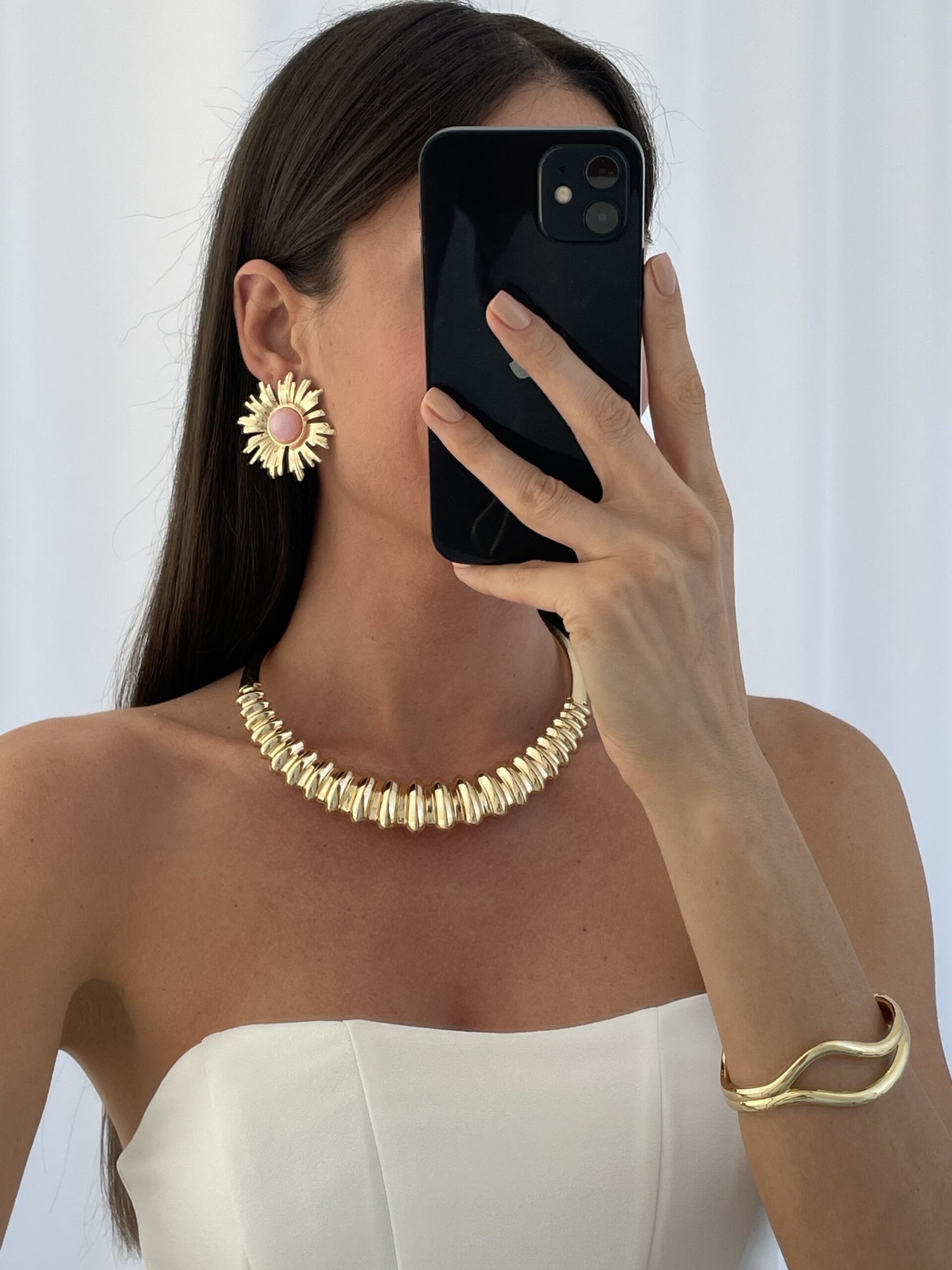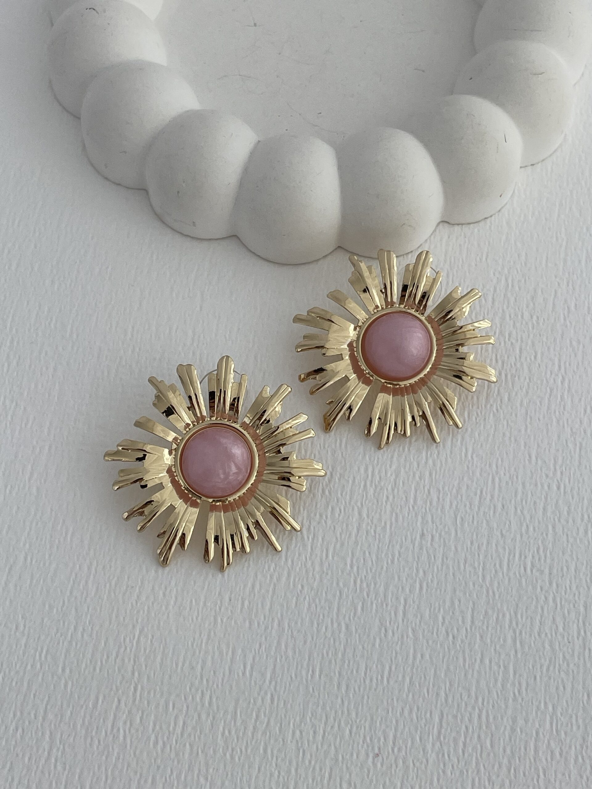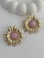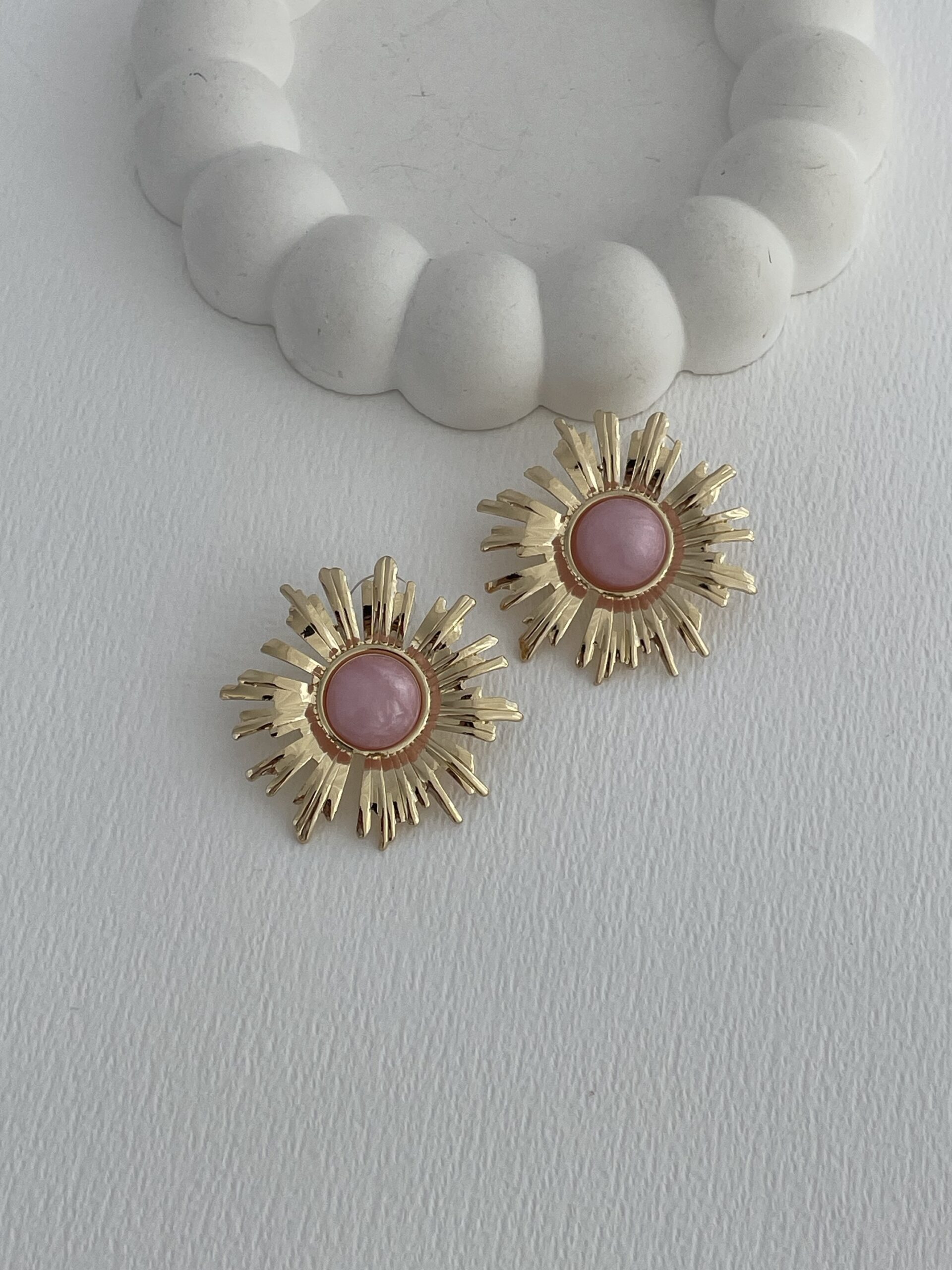 Özel Seri Ortası Pembe Gold Papatya Tasarım Küpe