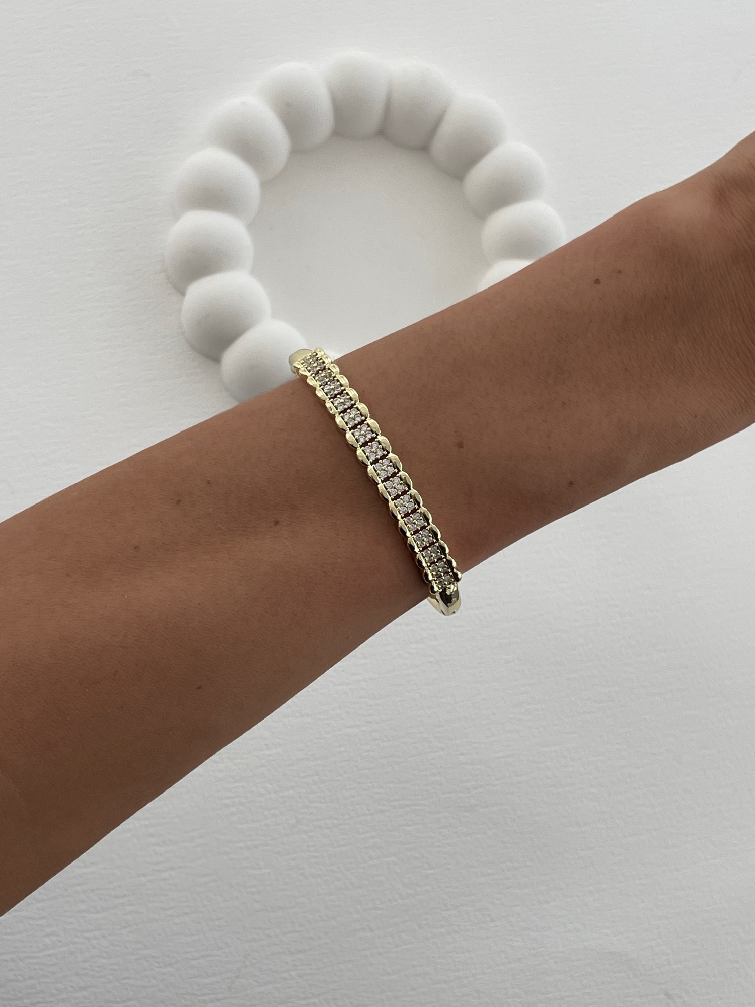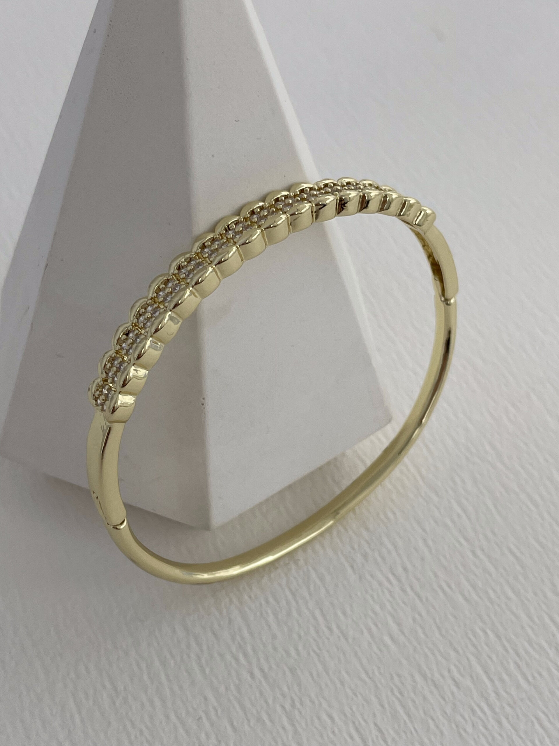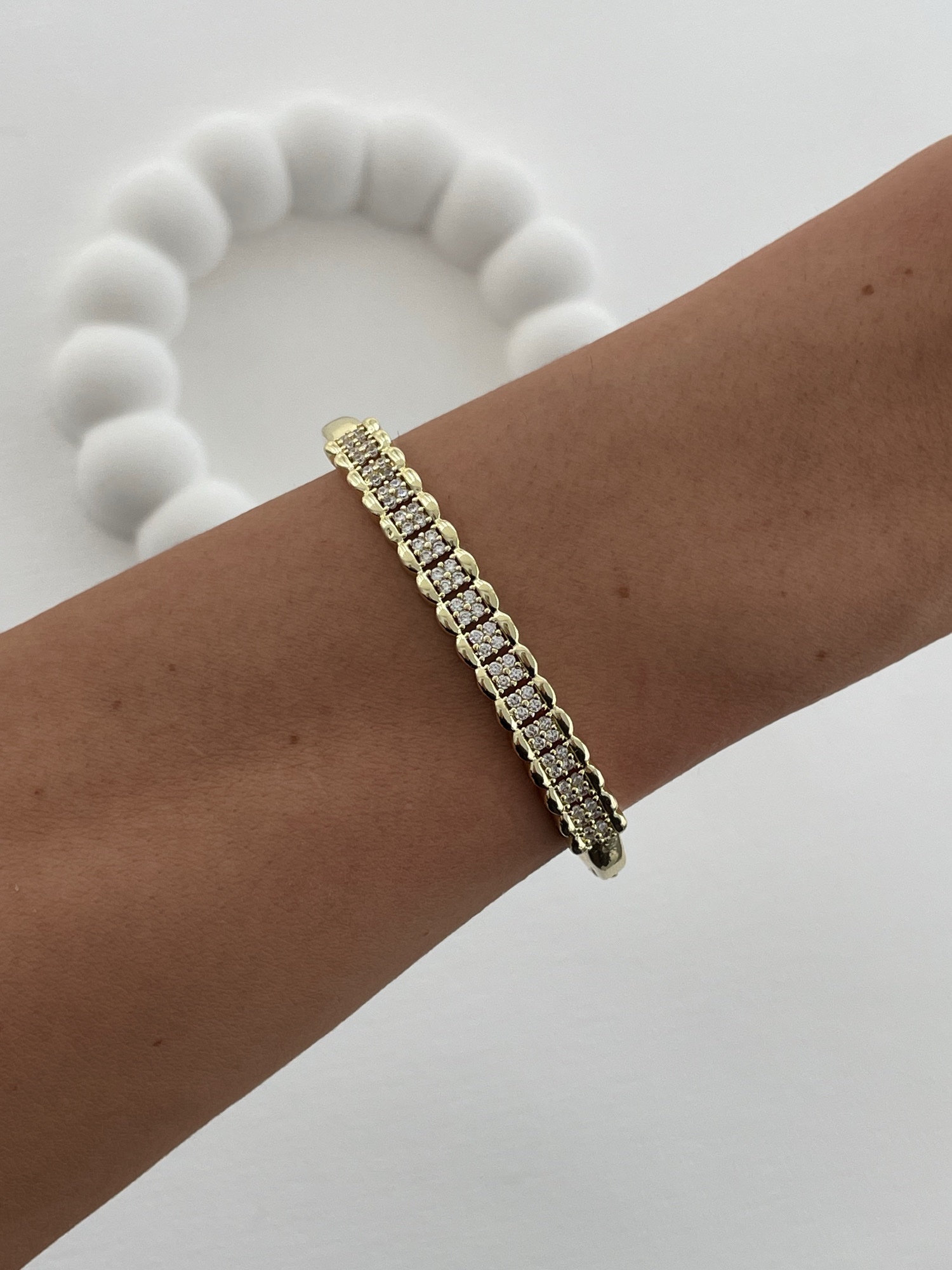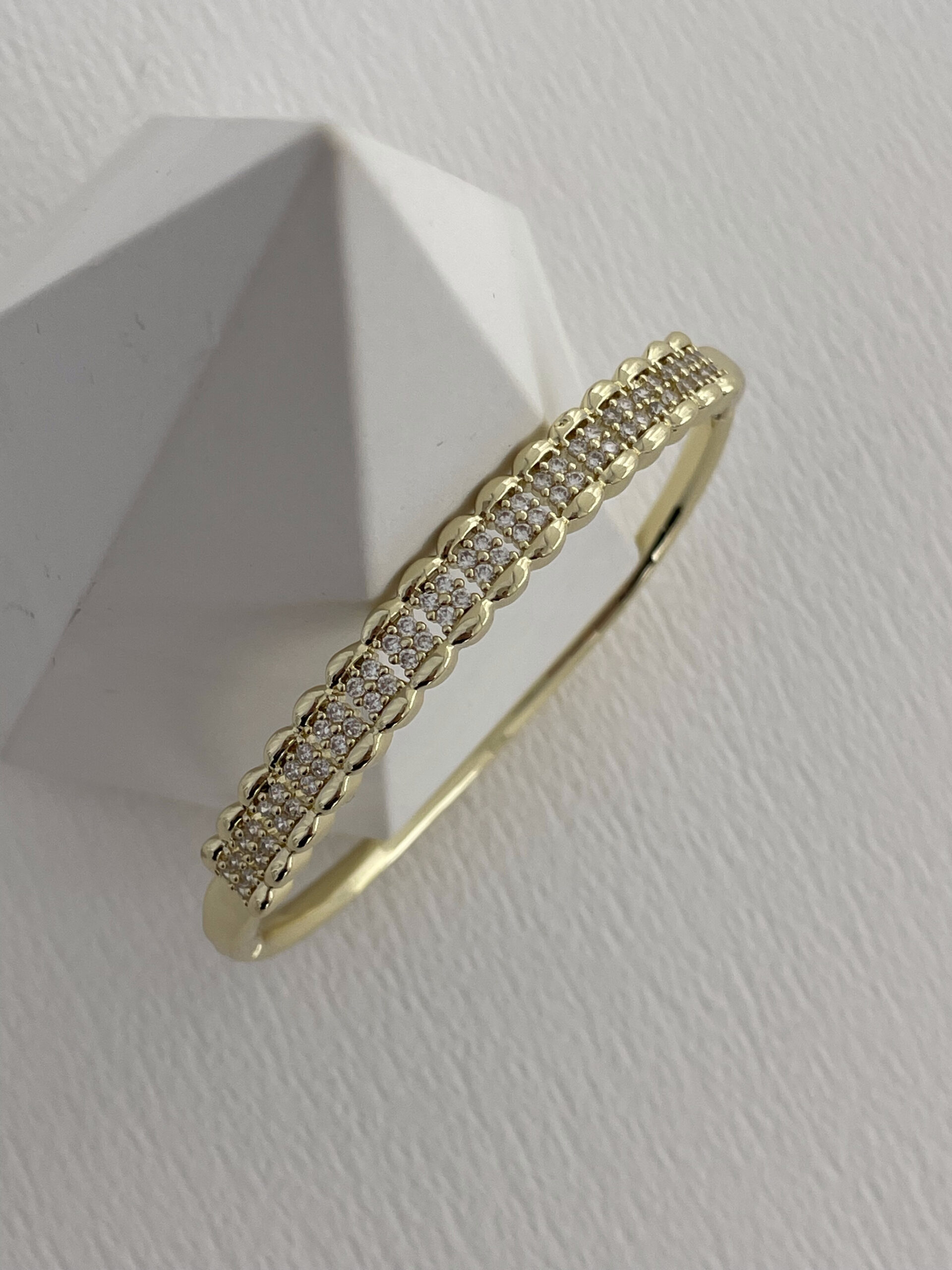 Özel Seri Ortası Sıra Zirkon Taş Detay Gold Kelepçe Bileklik
