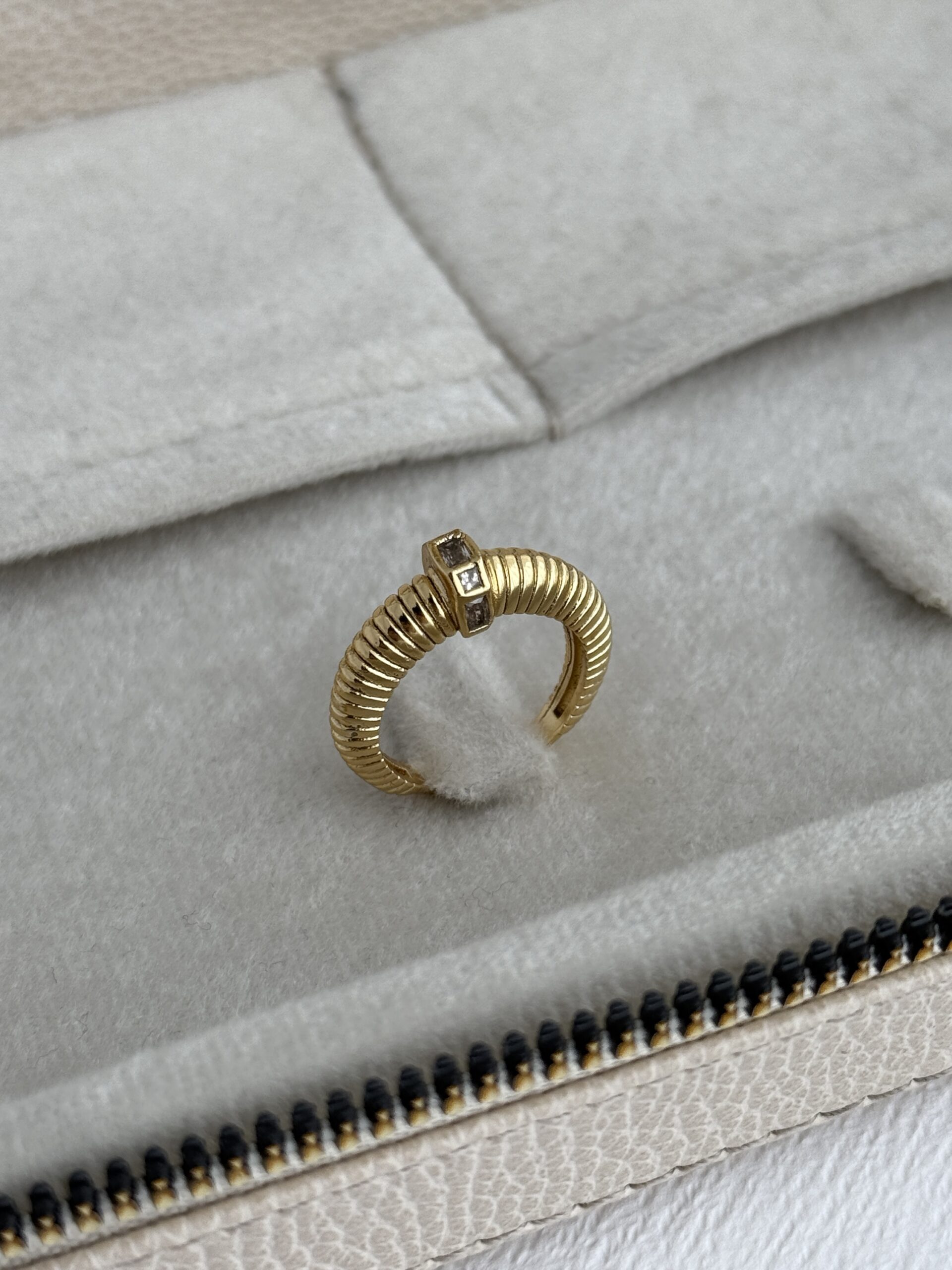 Özel Seri Baget Taşlı Tırtık Model Ayarlanabilir Gold Yüzük