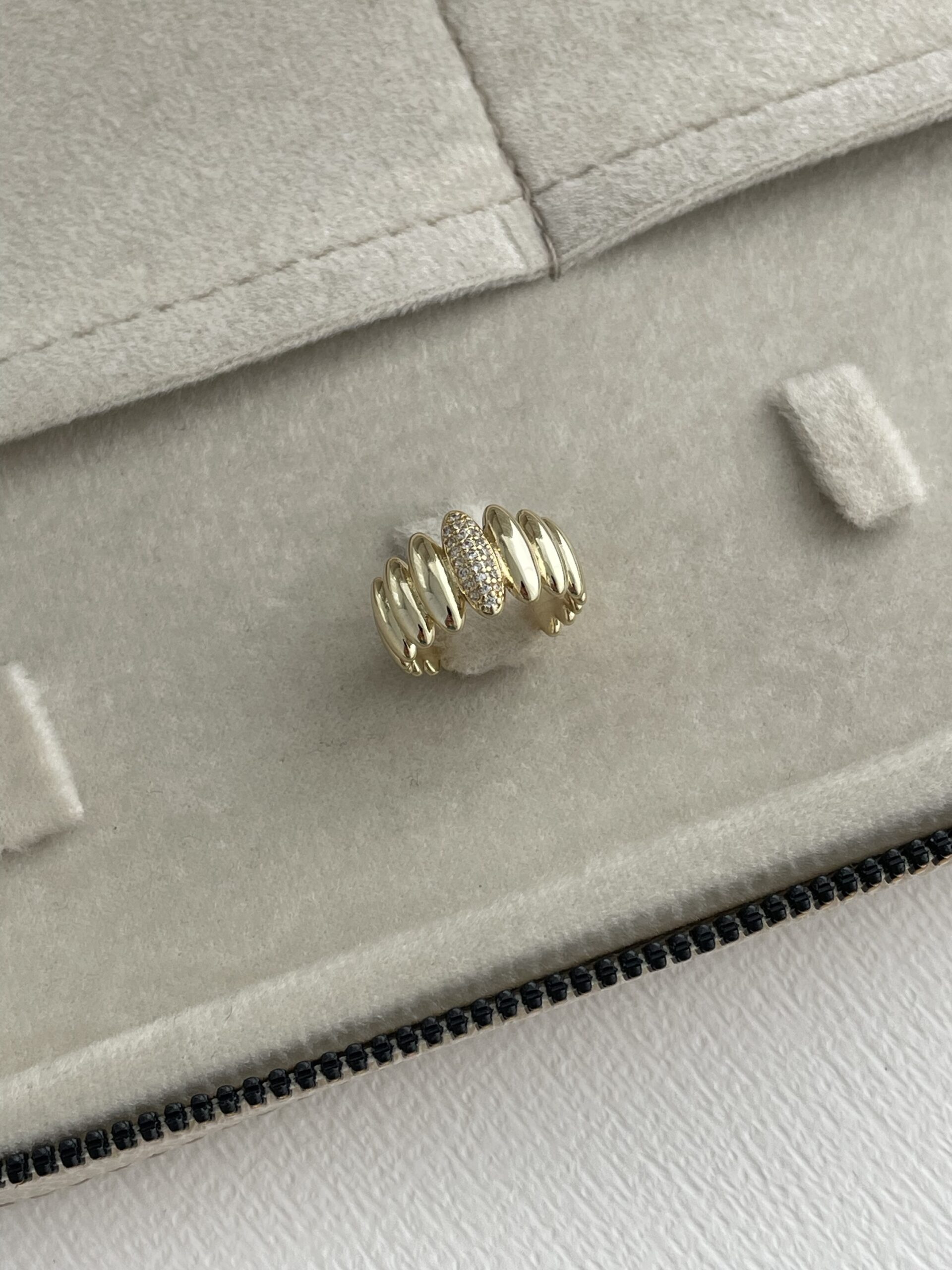 Özel Seri Ortası Zirkon Taş Zikzak Ayarlanabilir Gold Yüzük