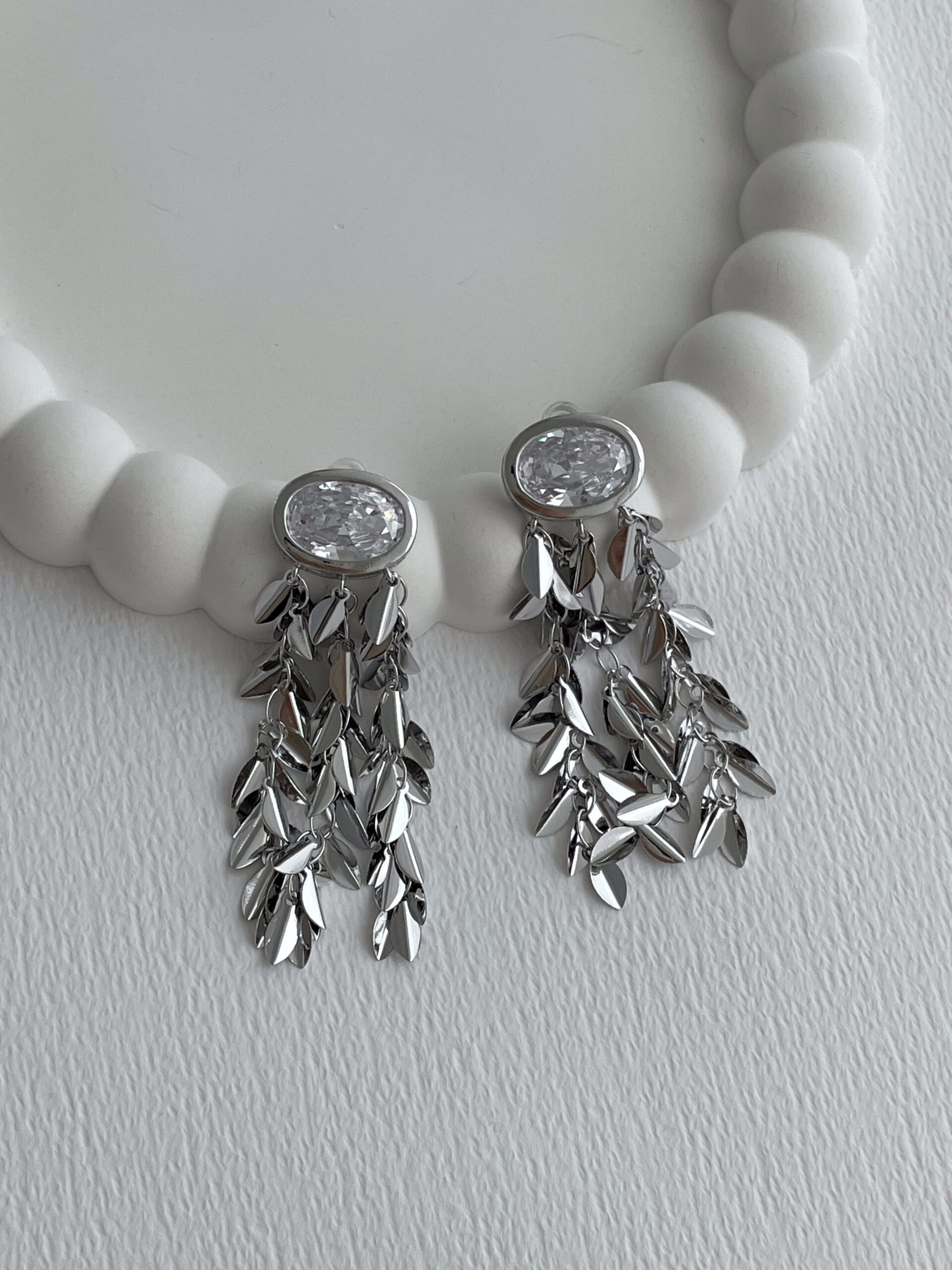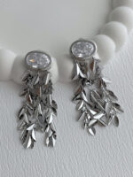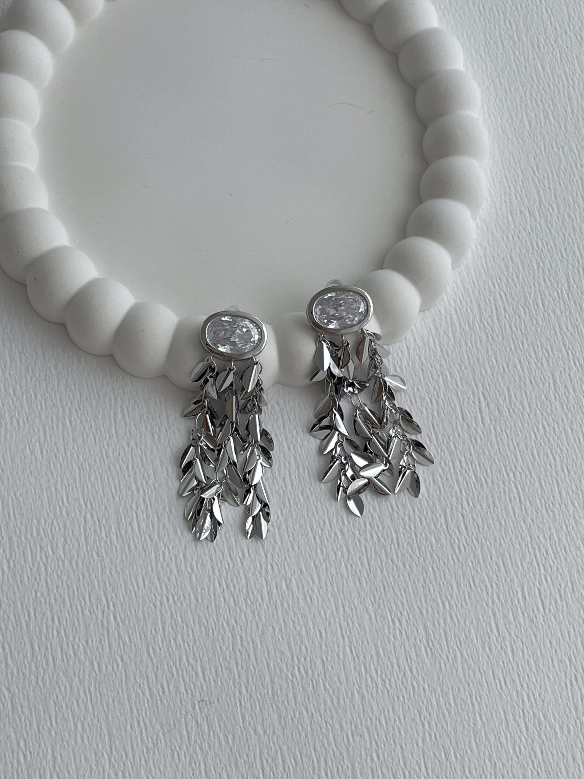 Özel Seri Oval Baget Taşlı Saçak Tasarım Gümüş Küpe