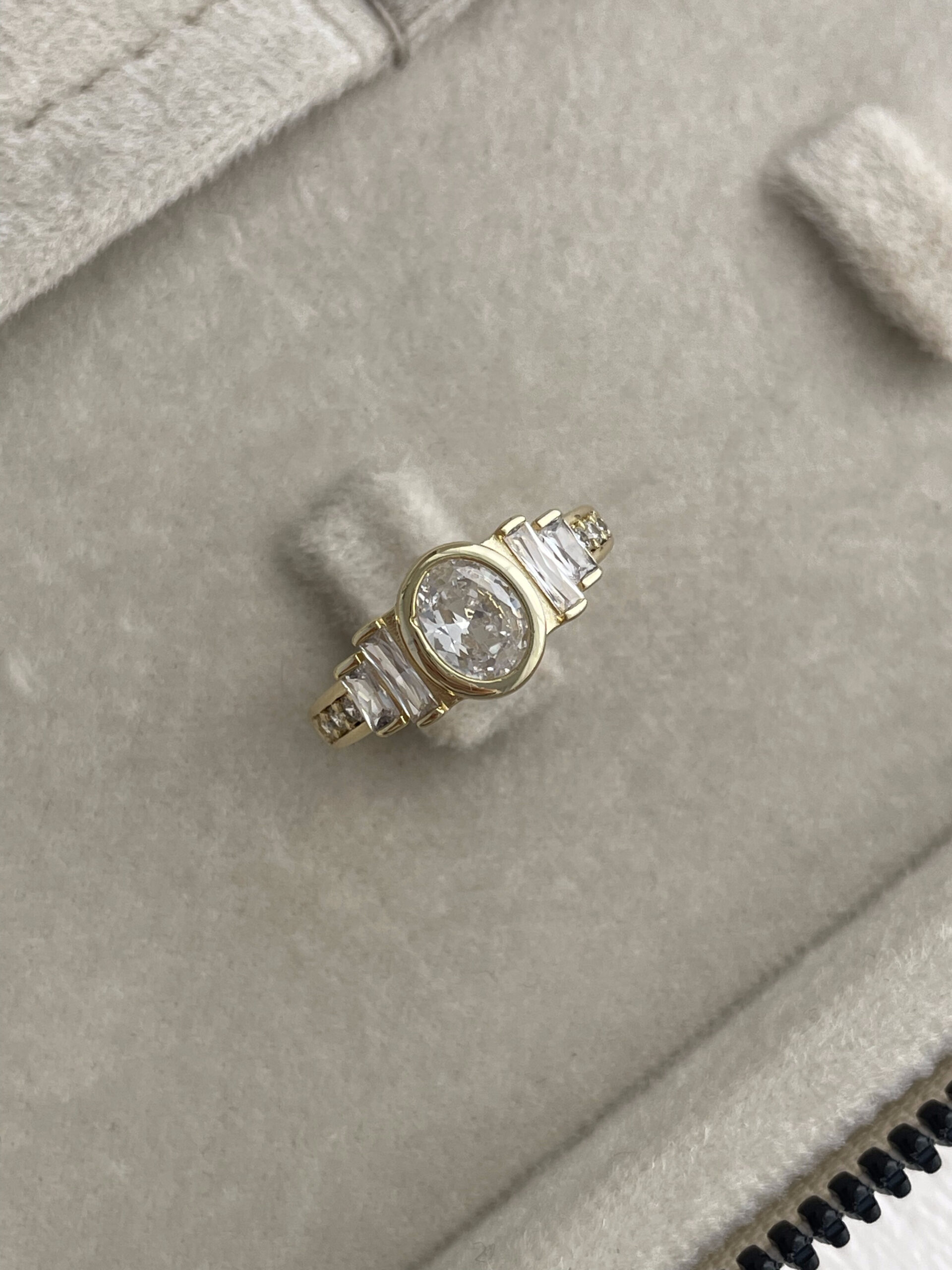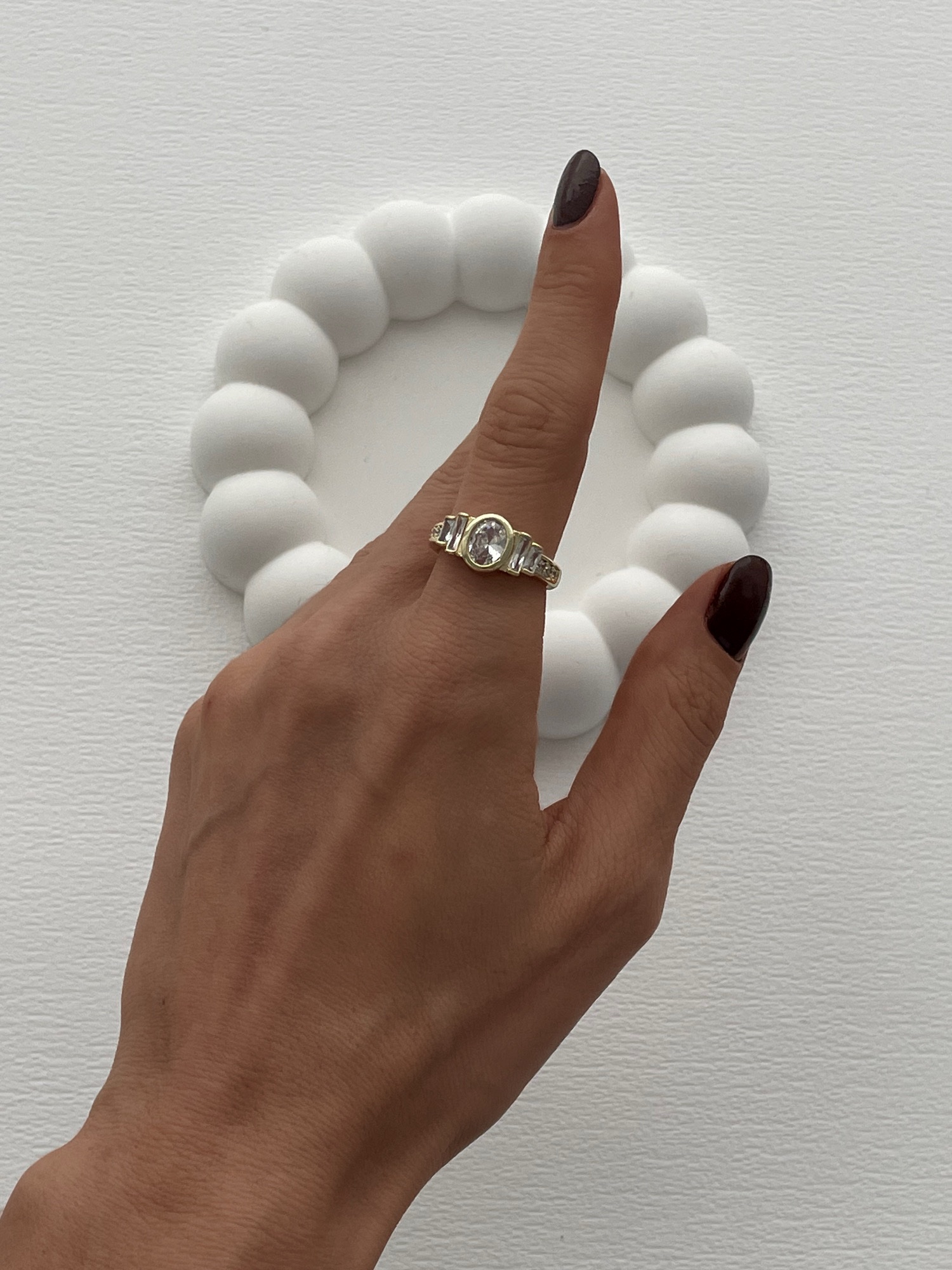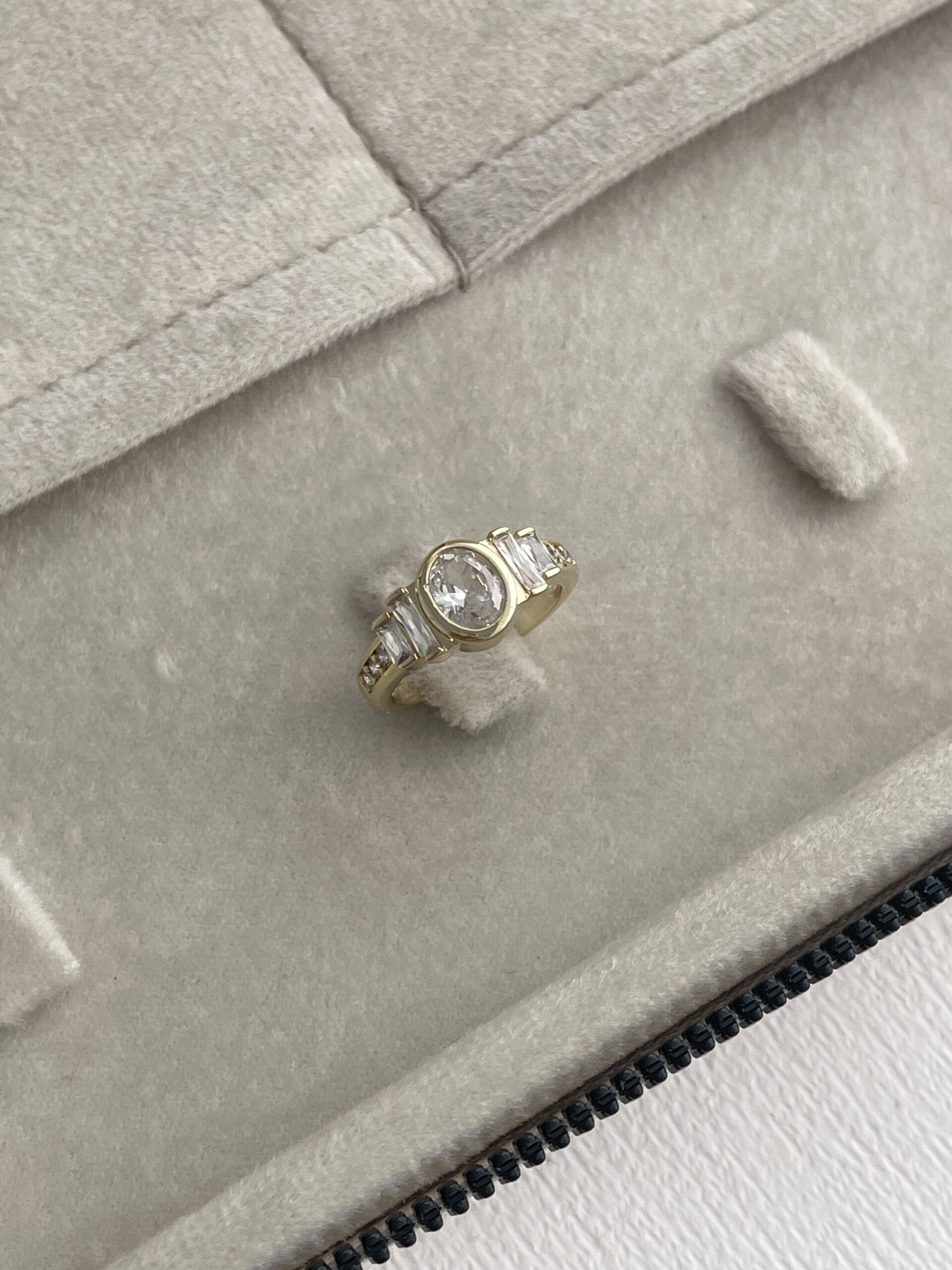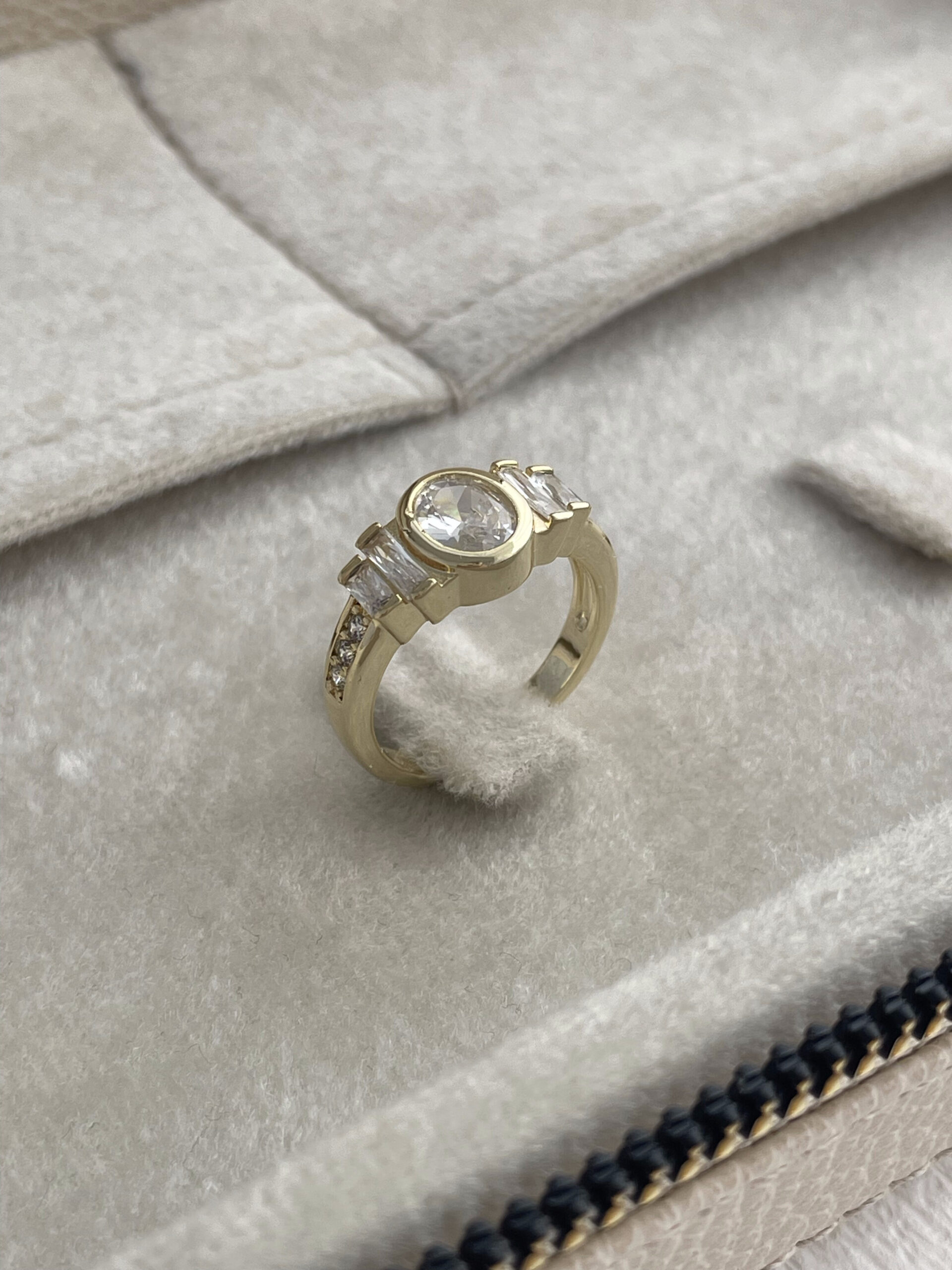 Özel Seri Oval Tasarım Baget Taşlı Ayarlanabilir Gold Yüzük