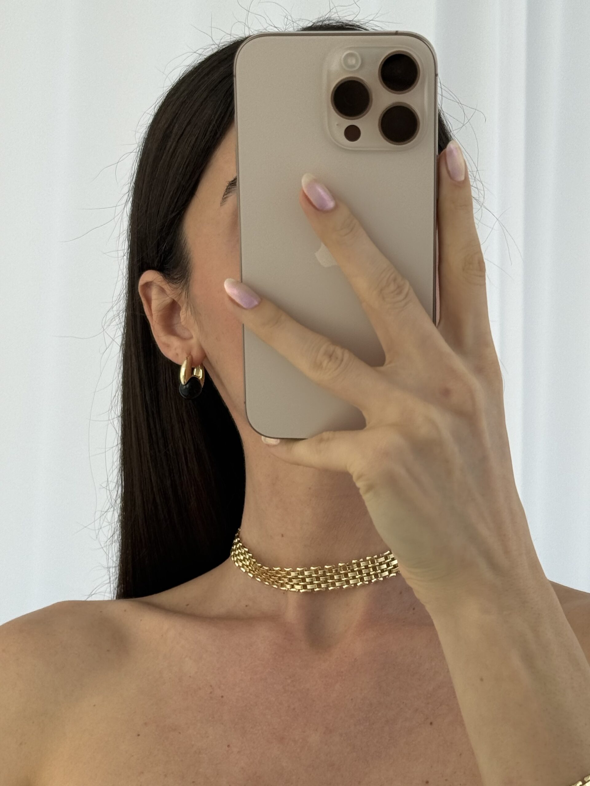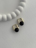 Özel Seri Oval Tasarım Gold Detay Siyah Top Küpe