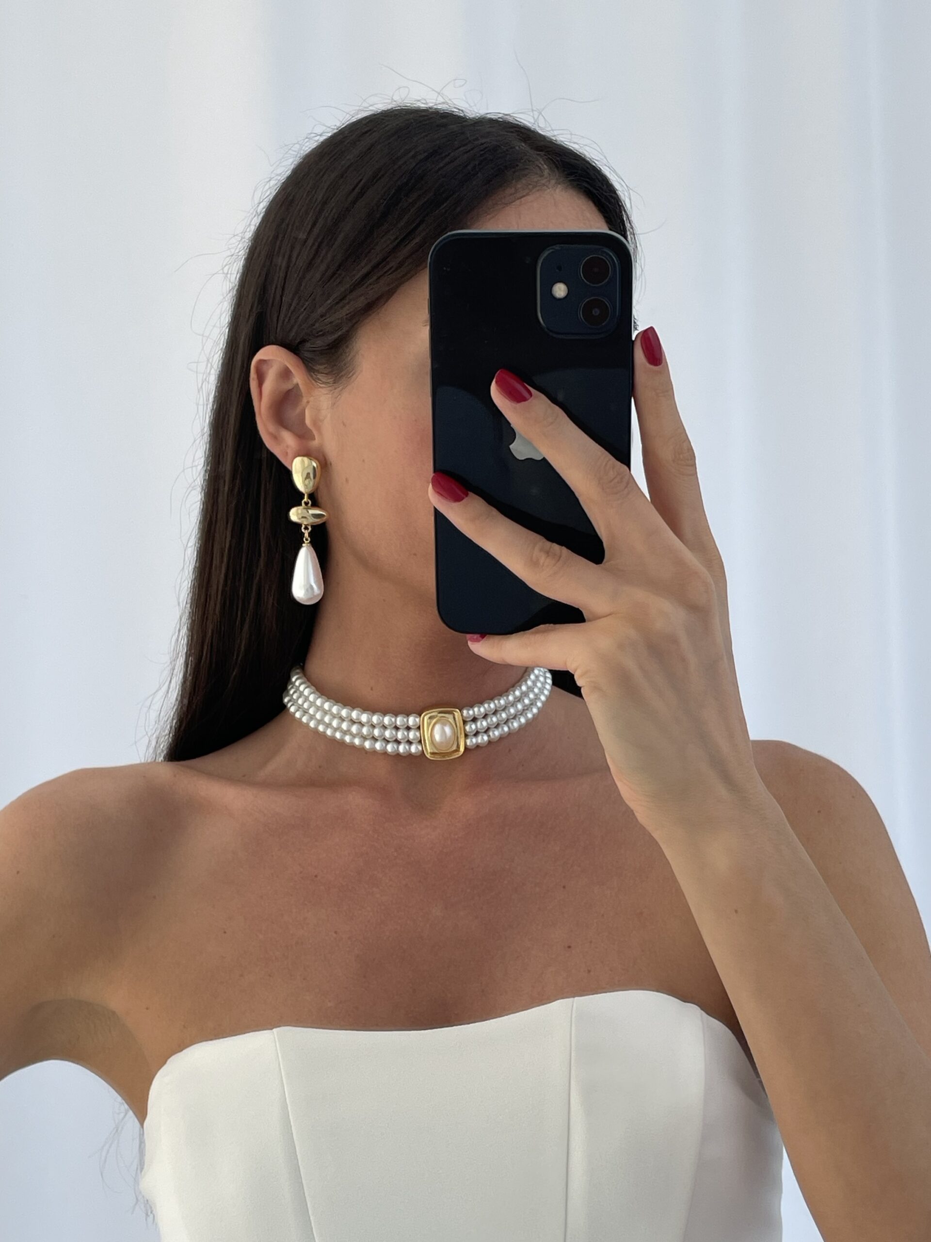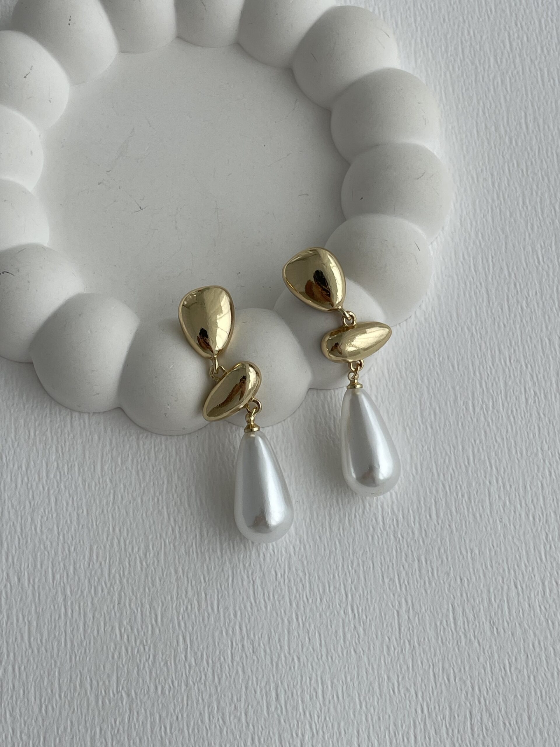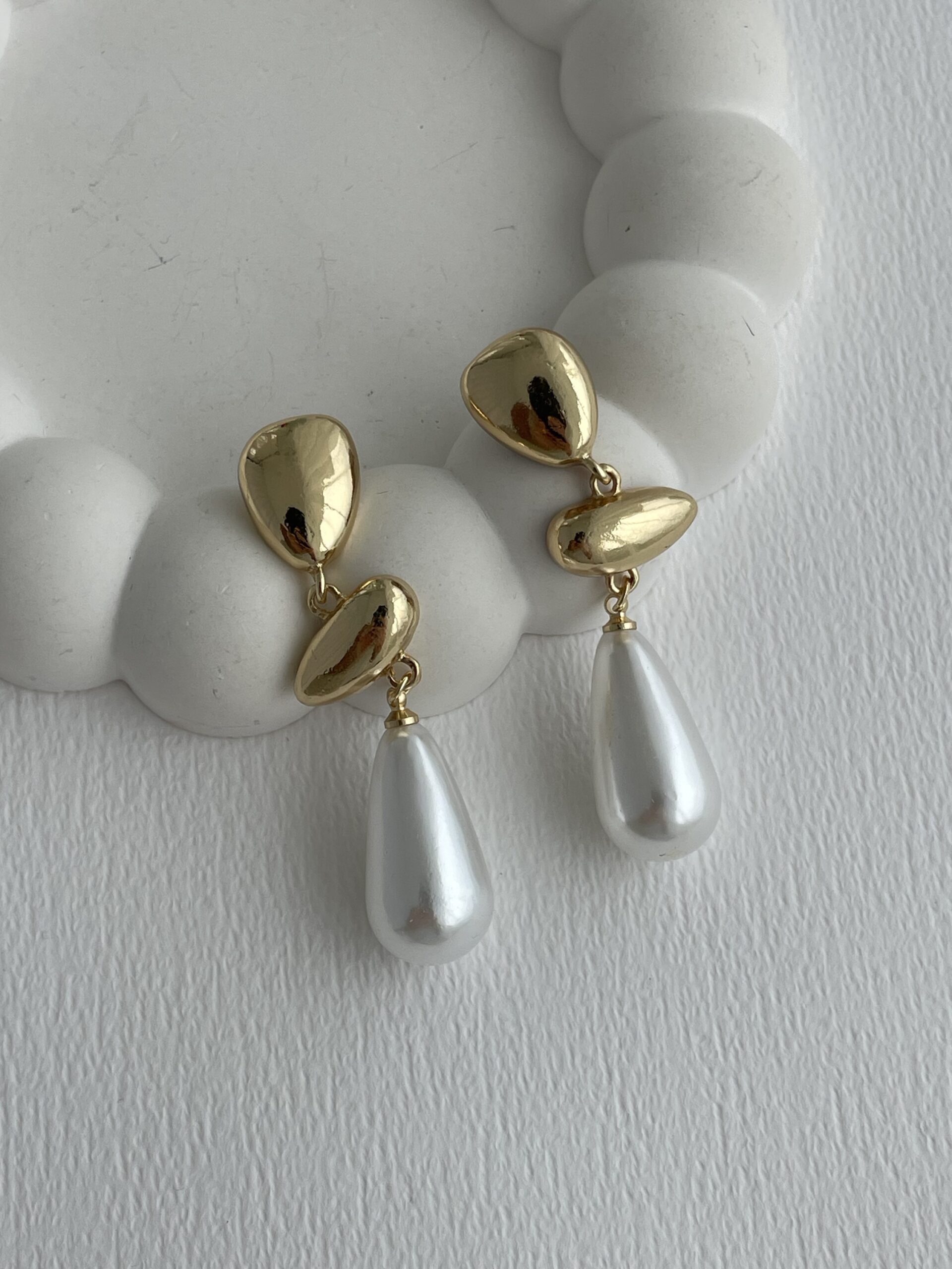 Özel Seri Oval Tasarım İnci Gold Küpe