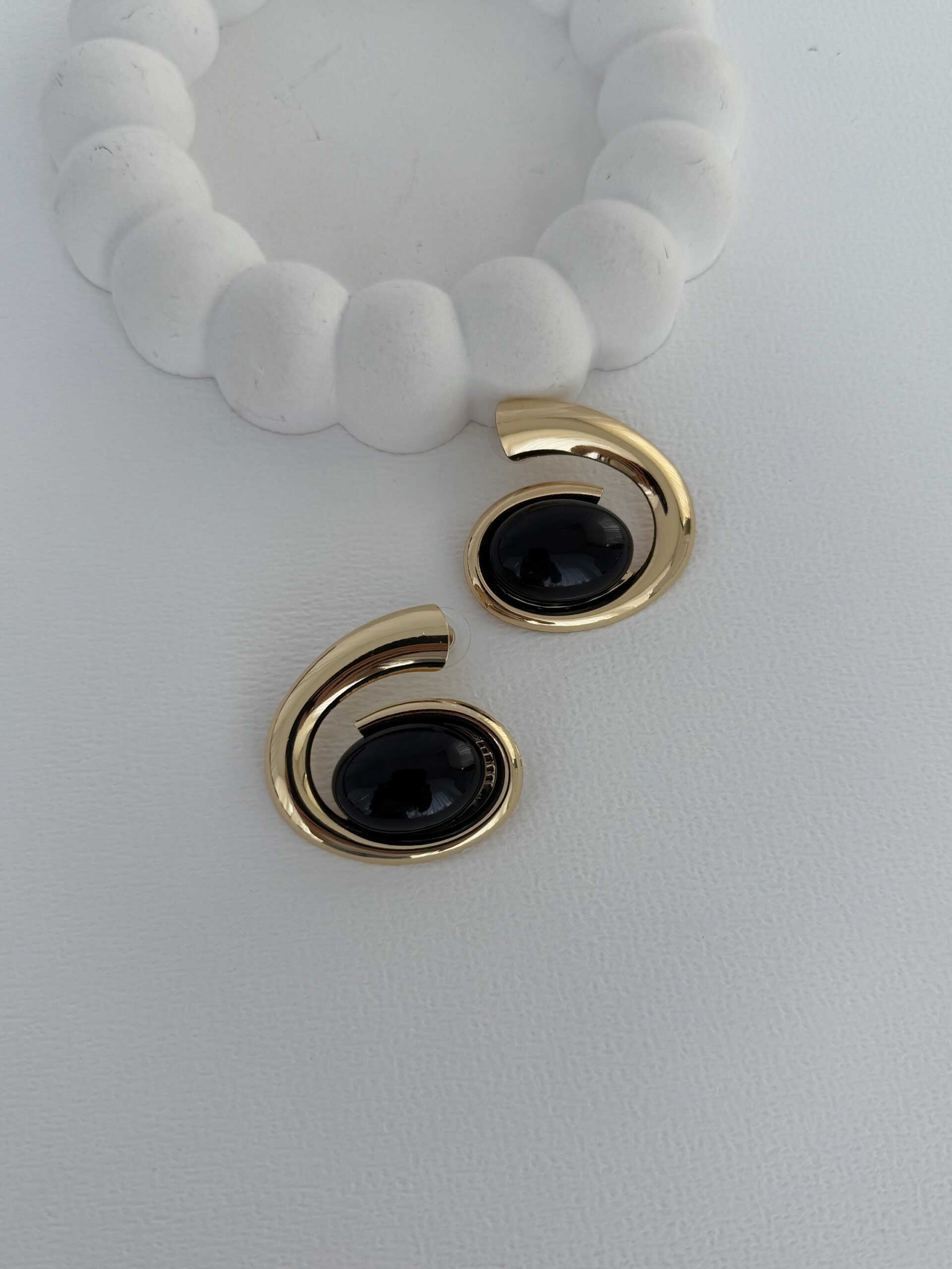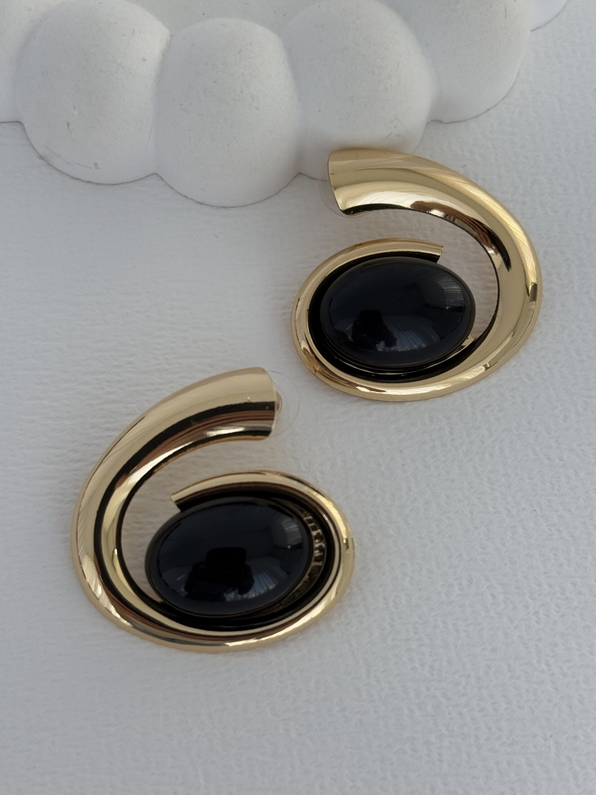 Özel Seri Oval Tasarım Siyah Gold Küpe