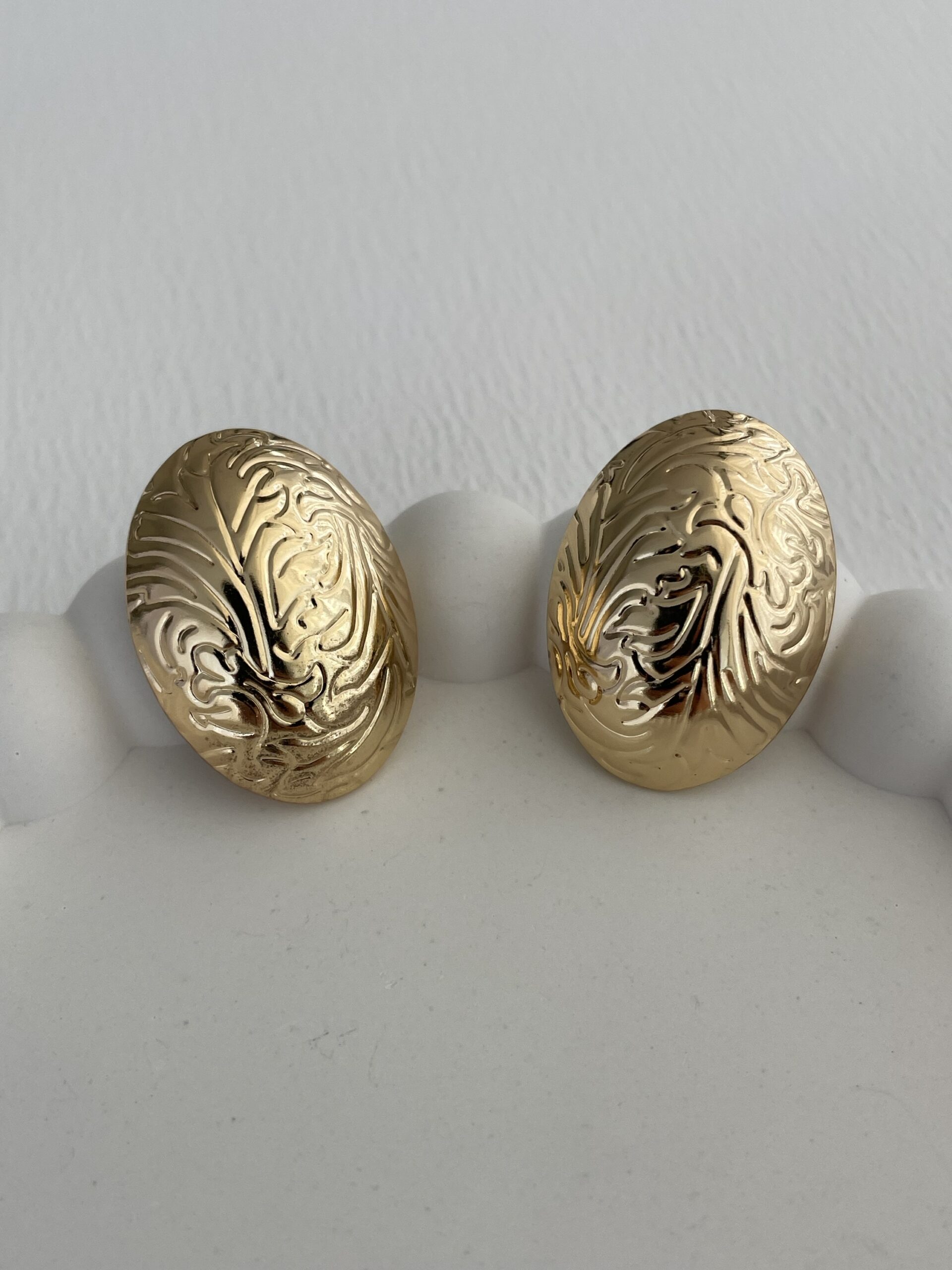 Özel Seri Oval Tasarım Vintage Gold Küpe
