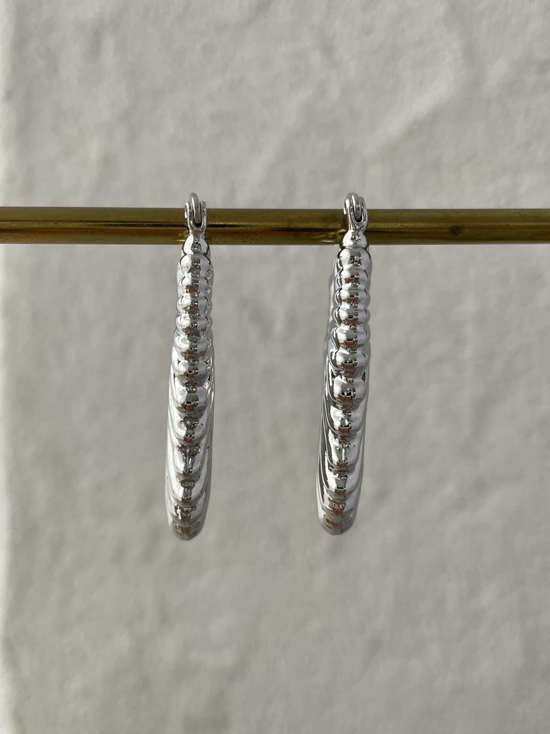 Özel Seri Oval Tırtık Desen Gümüş Küpe