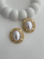 Özel Seri Oval Vintage Tasarım Gold İnci Küpe