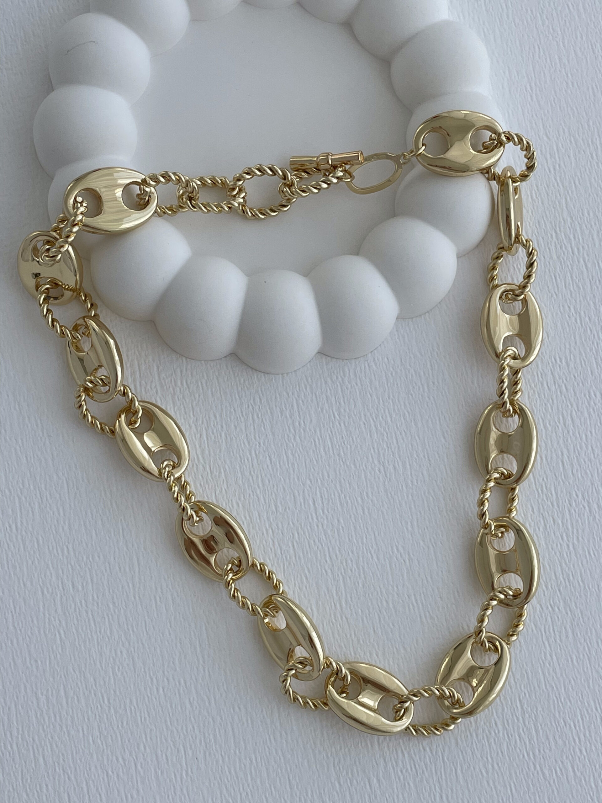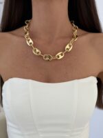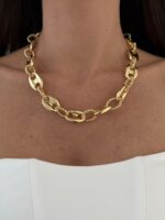 Özel Seri Büyük Düğme Tasarım Oval Zincir Tasarım Gold Kolye
