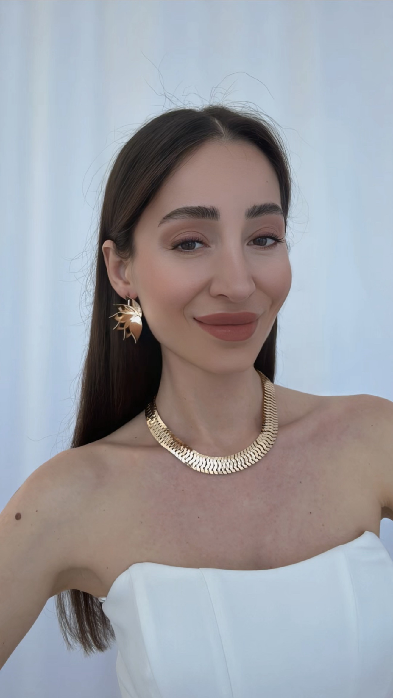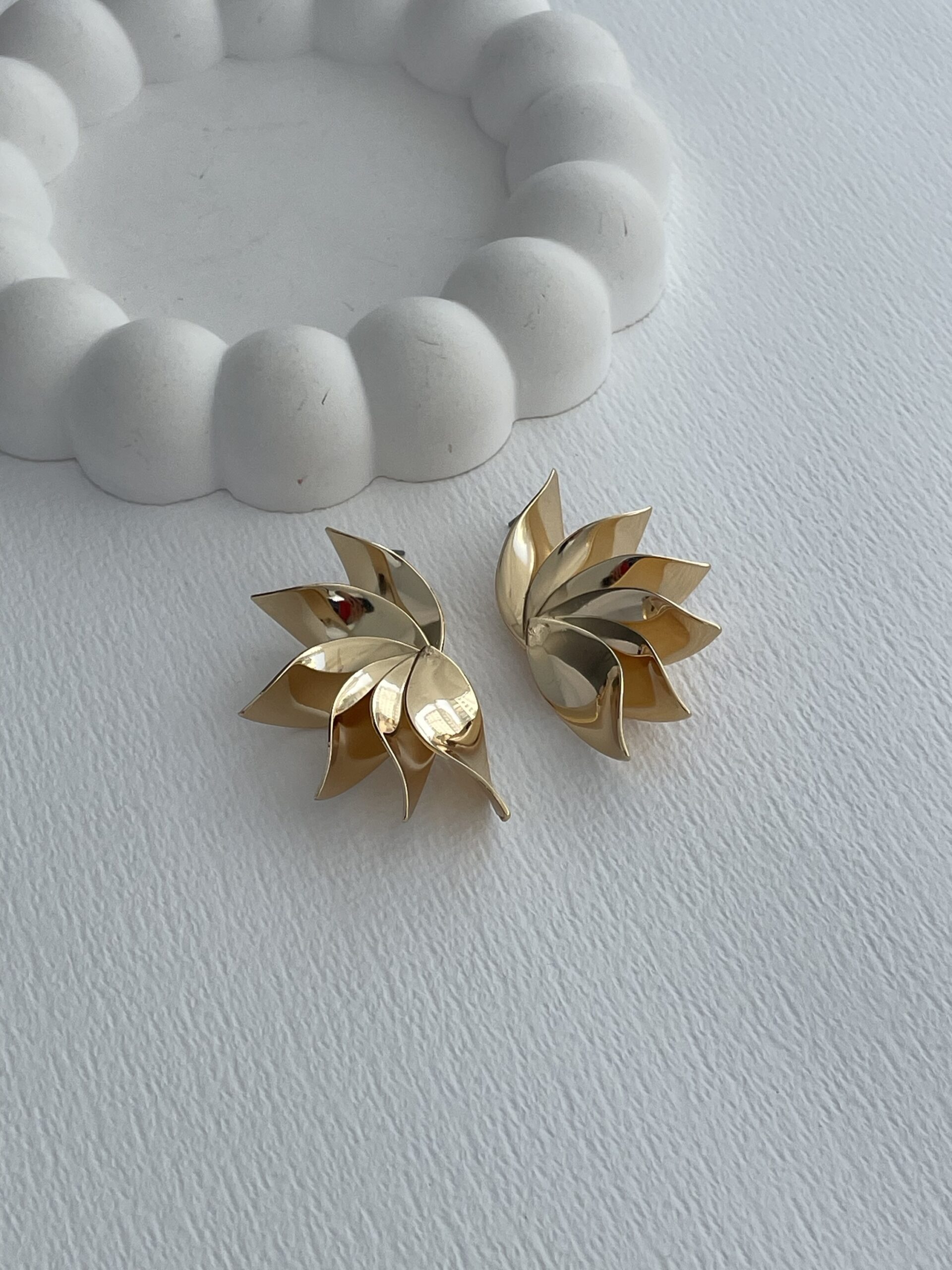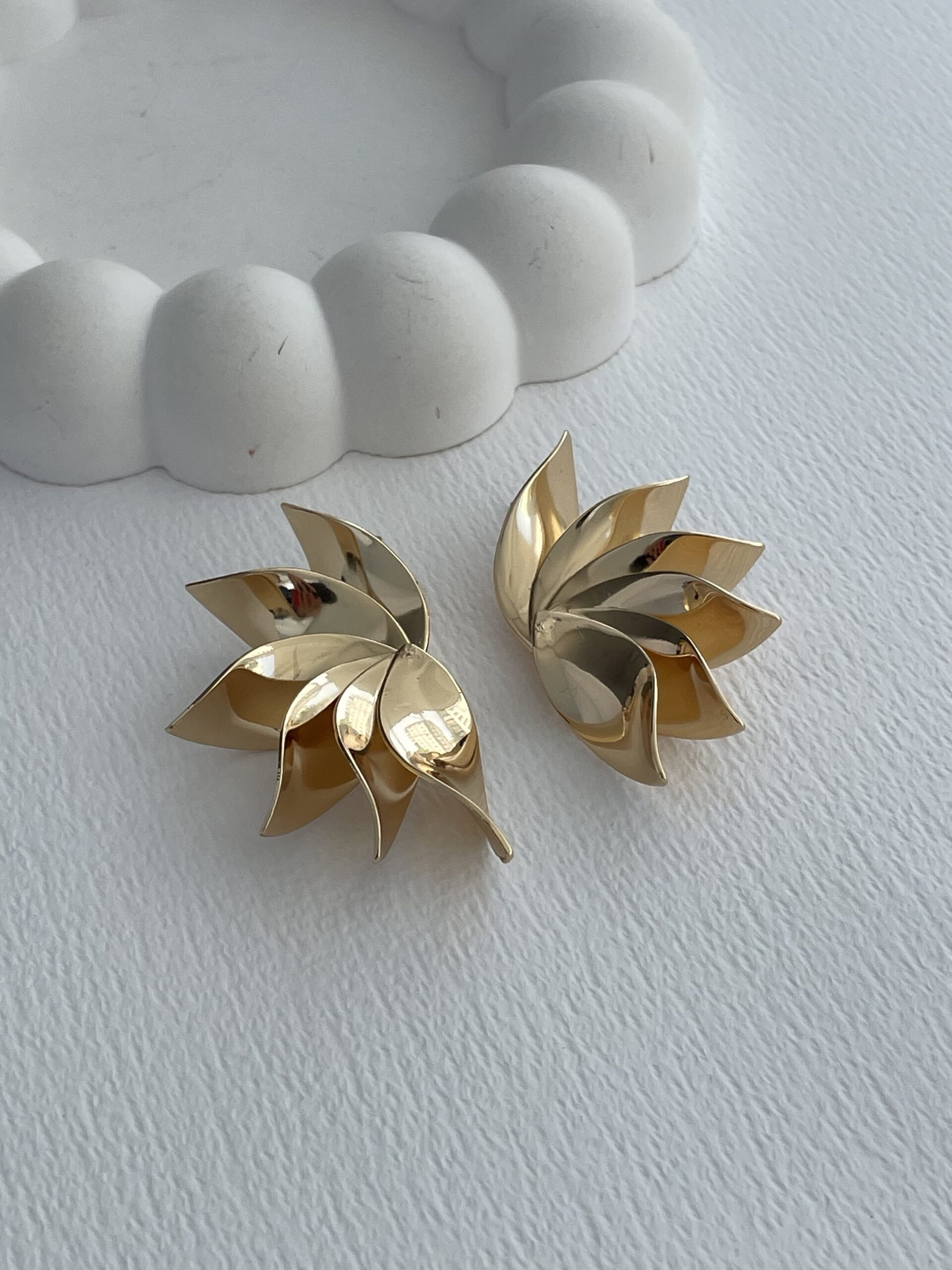 Özel Seri Parlak Katmanlı Yaprak Tasarım Gold Küpe