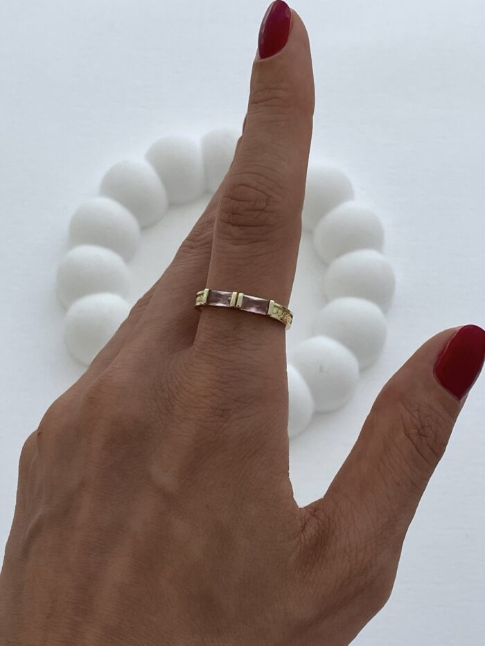 Özel Seri Pembe İkili Baget Taş Gold Ayarlanabilir Yüzük