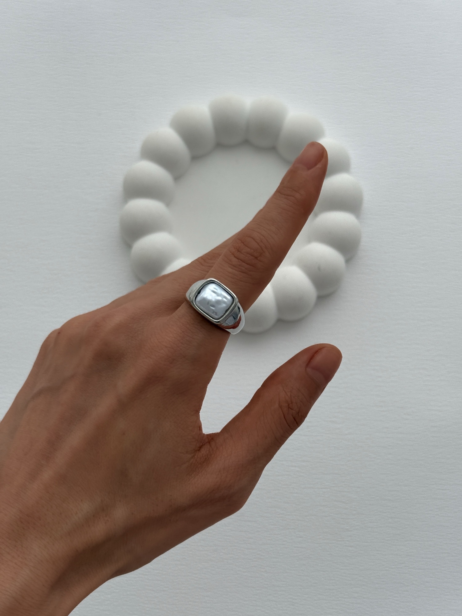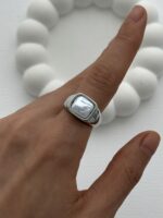 Özel Seri Pinterest İnci Detay Gümüş Şövalye Yüzük