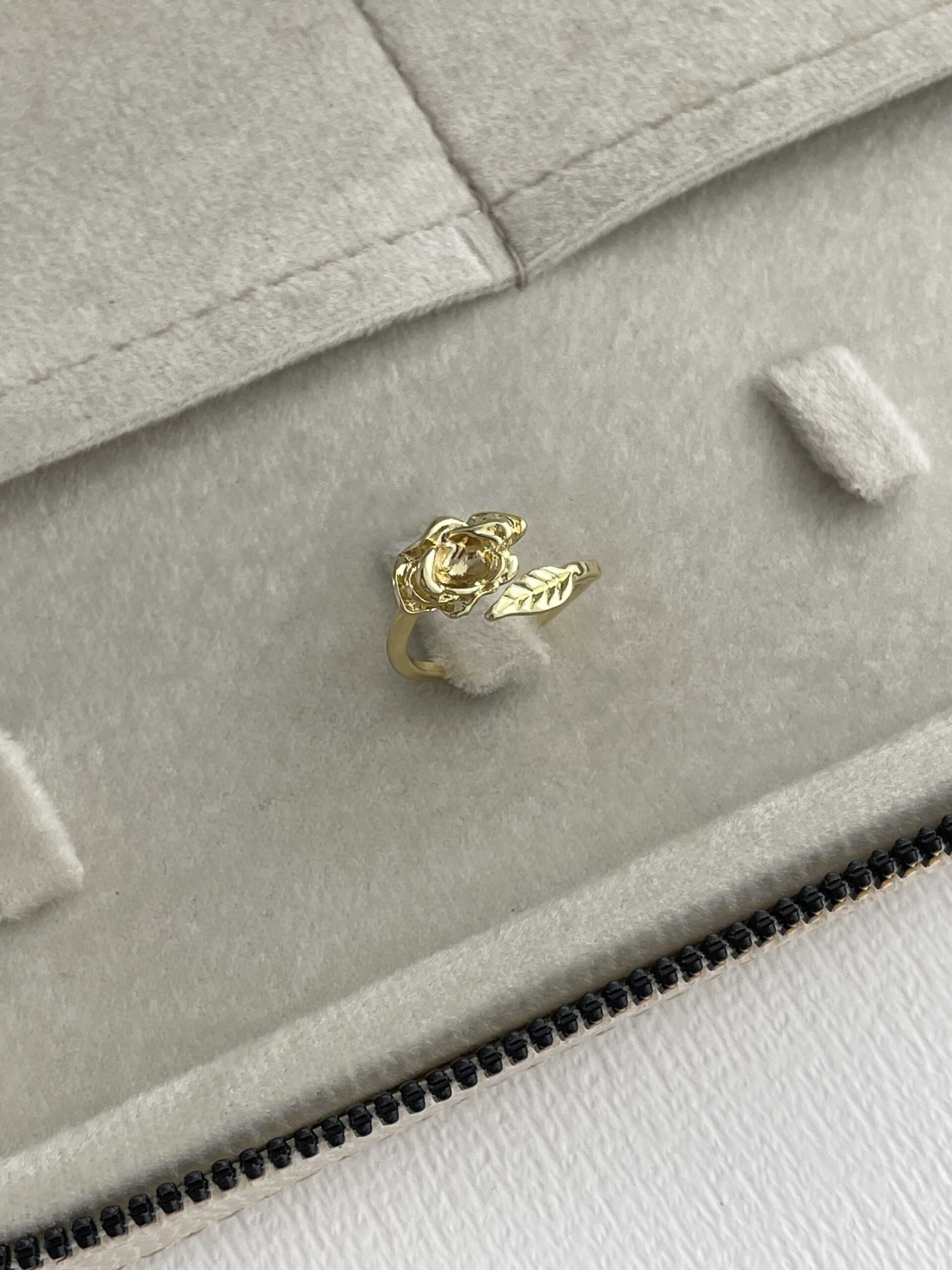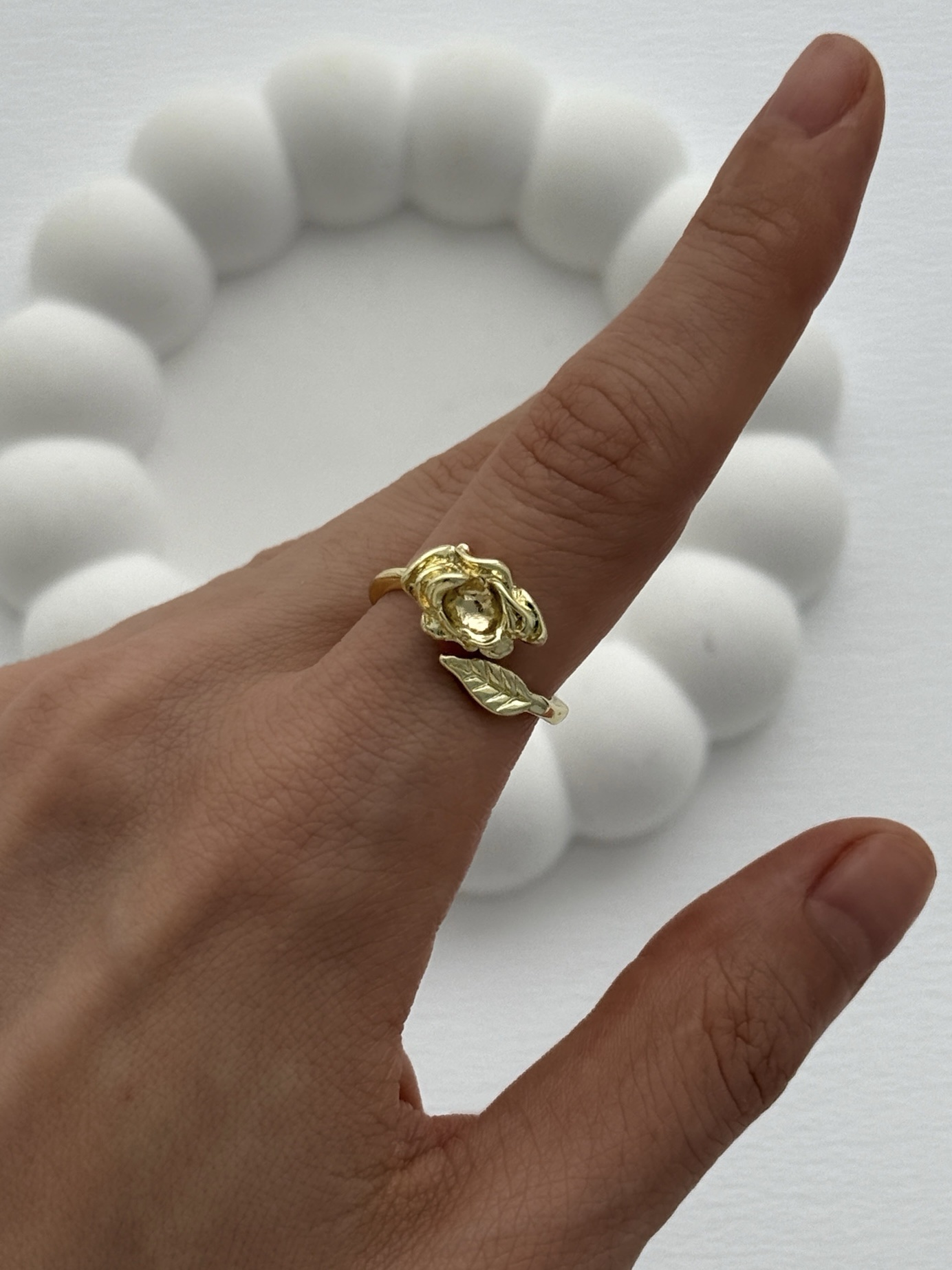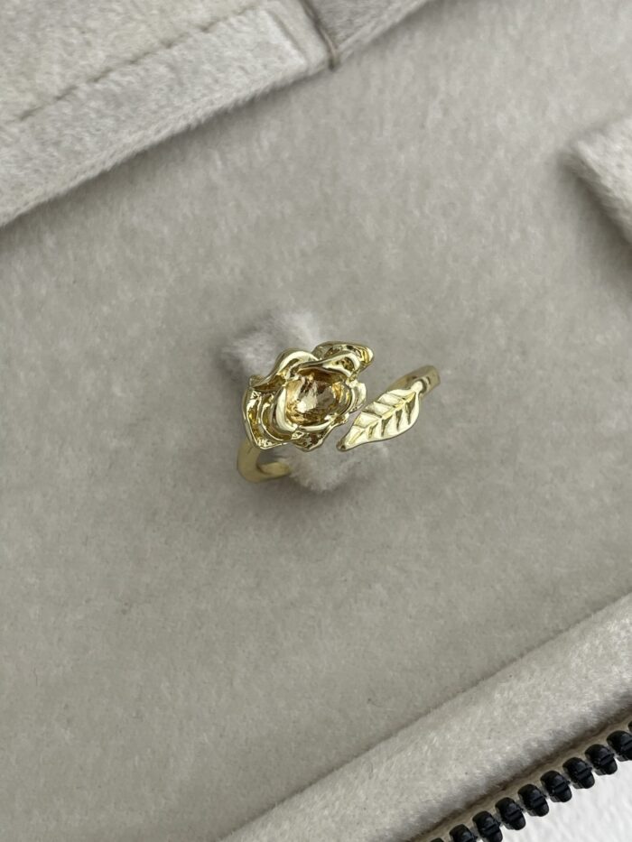 Özel Seri Pinterest Yapraklı Gül Tasarım Ayarlanabilir Gold Yüzük