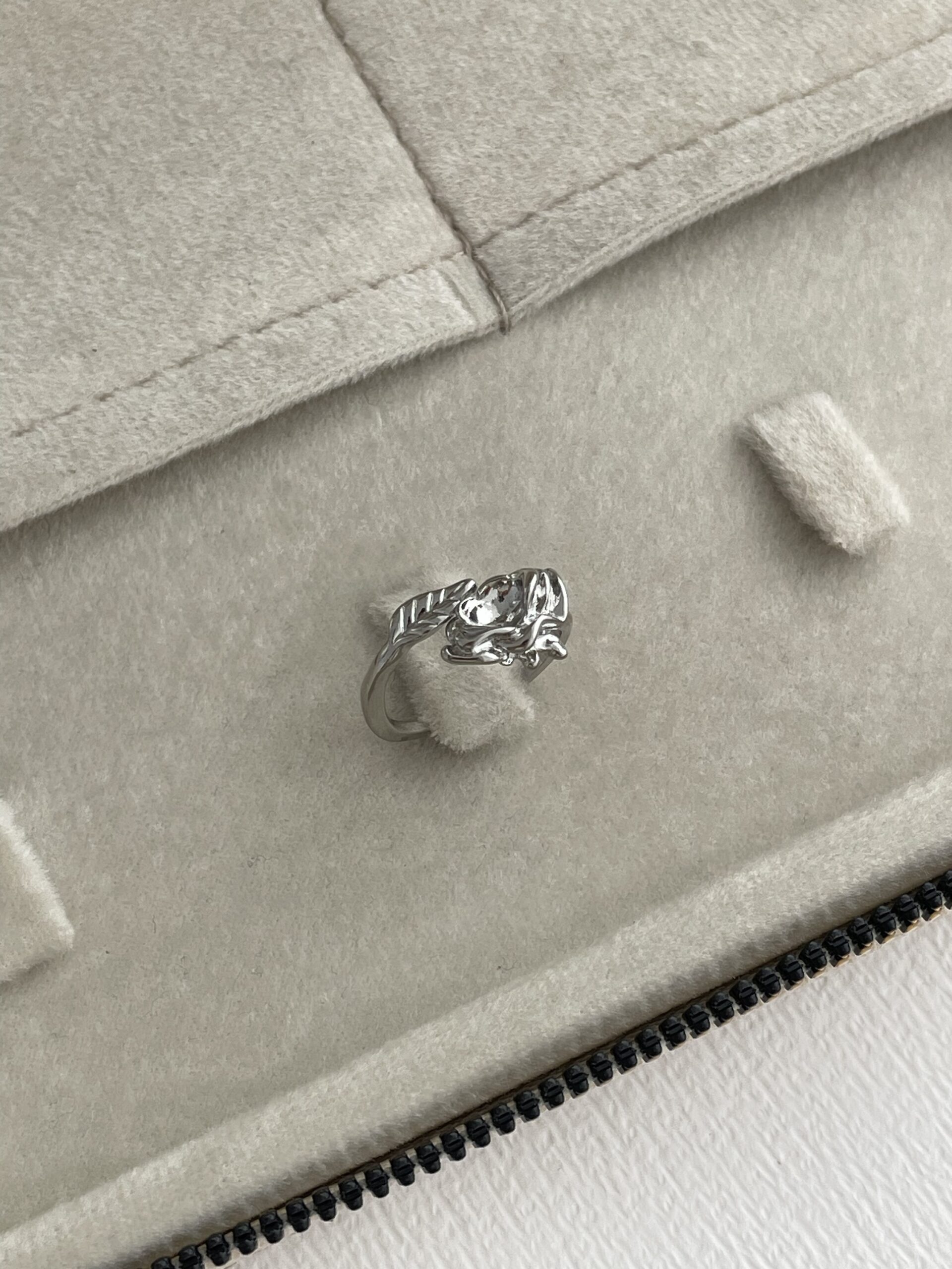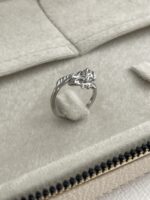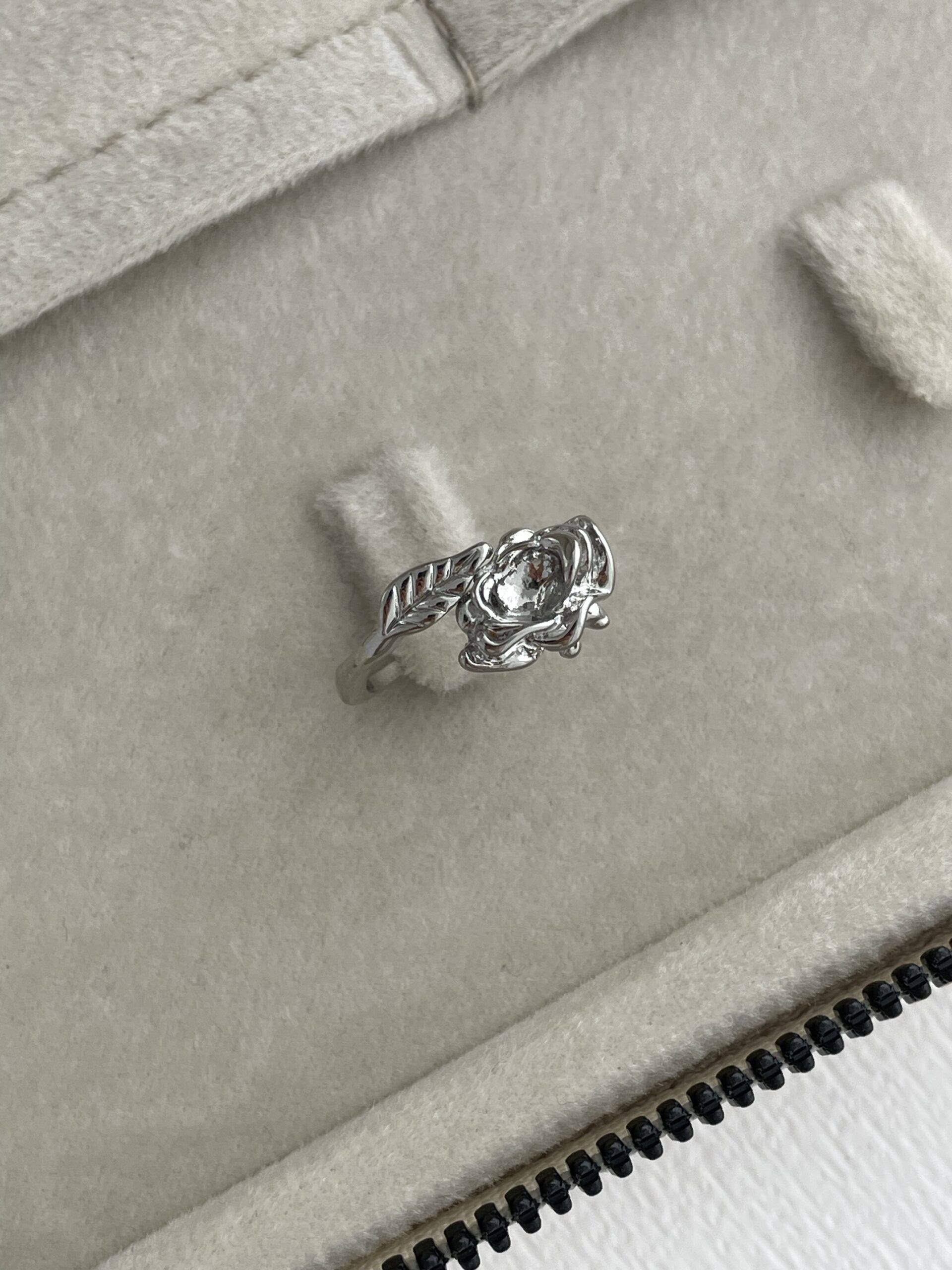 Özel Seri Pinterest Yapraklı Gül Tasarım Ayarlanabilir Gümüş Yüzük