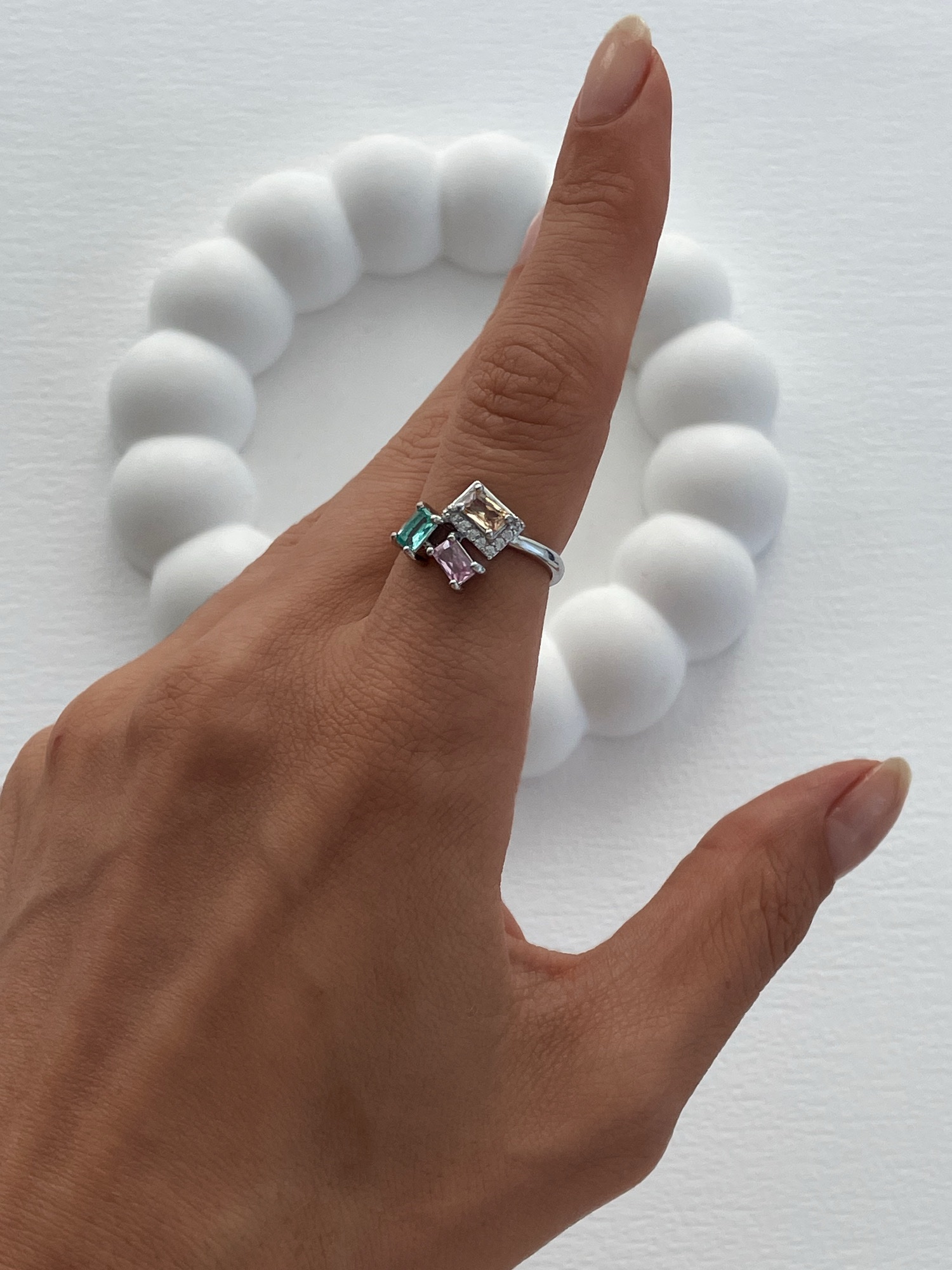 Özel Seri Renkli Baget Taş Ayarlanabilir Gümüş Yüzük