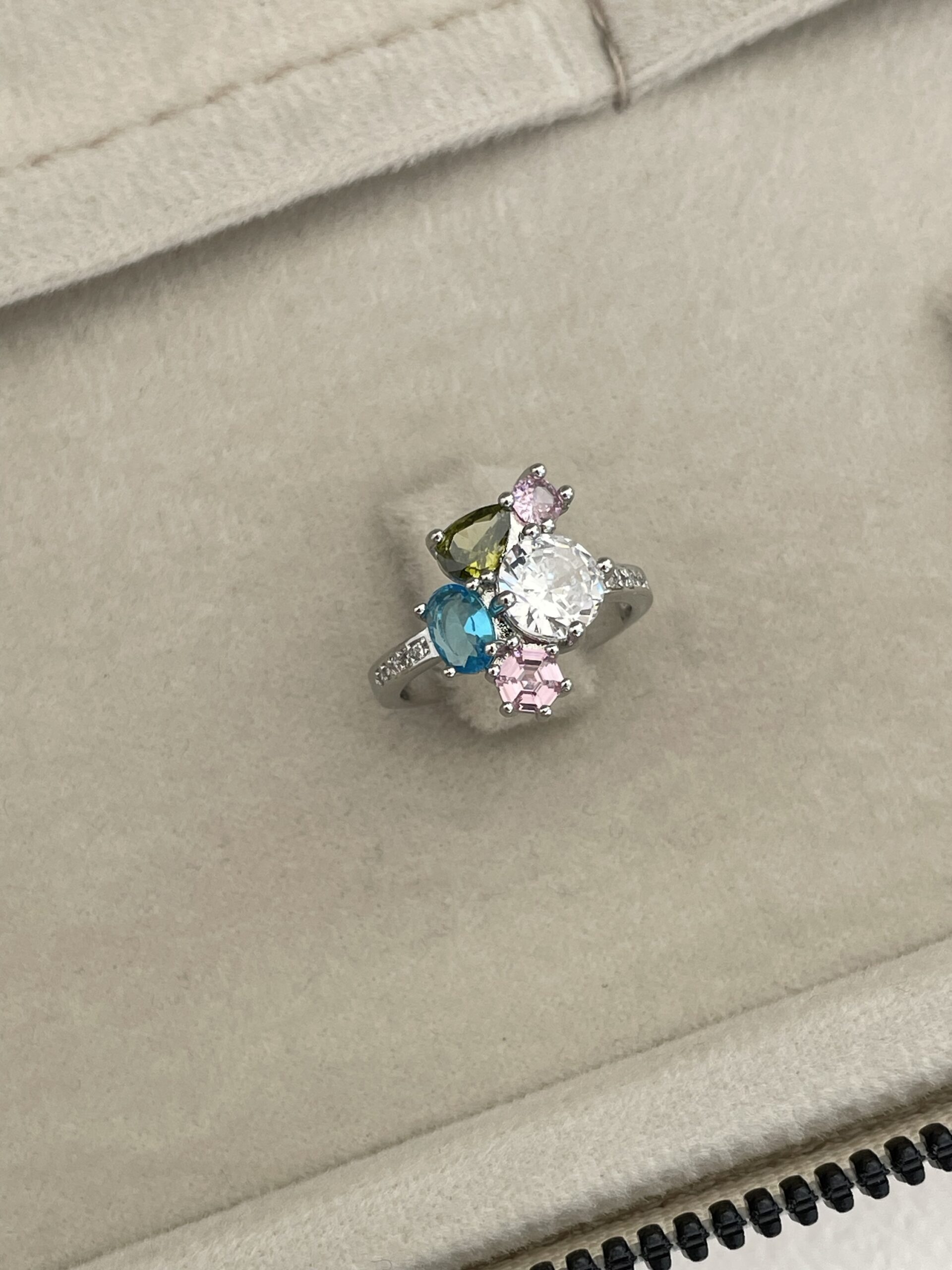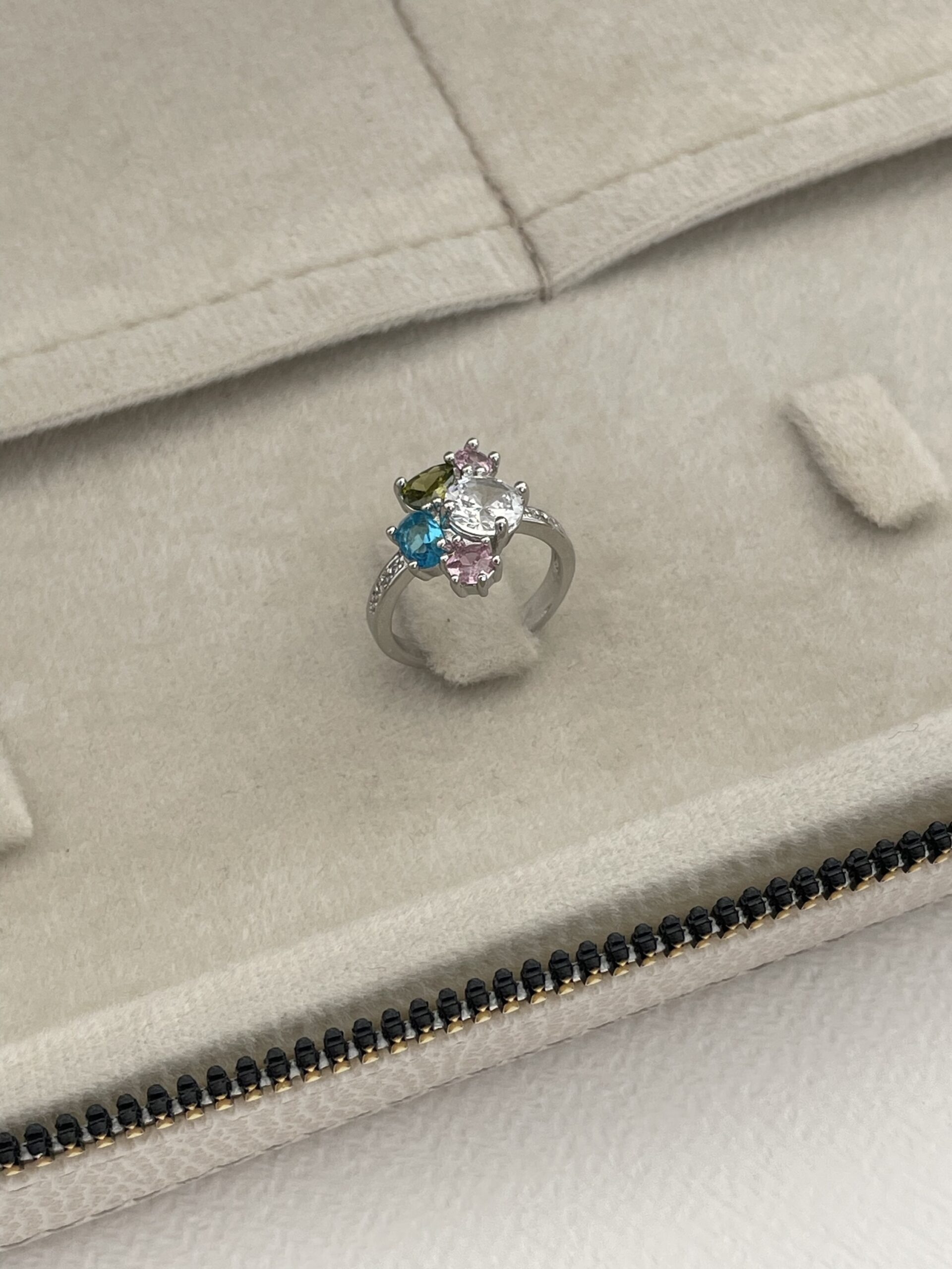 Özel Seri Renkli Baget Taş Ayarlanabilir Gümüş Yüzük