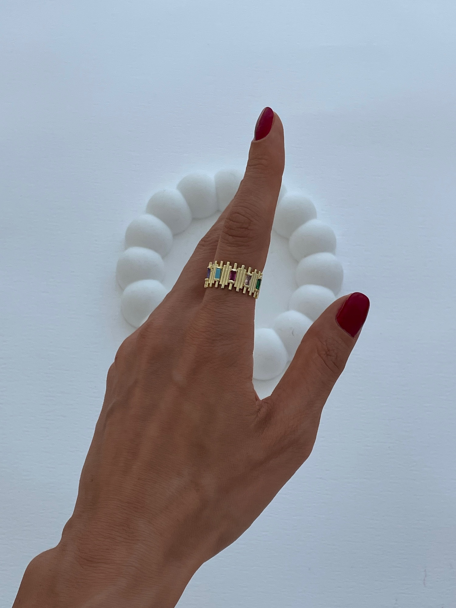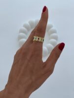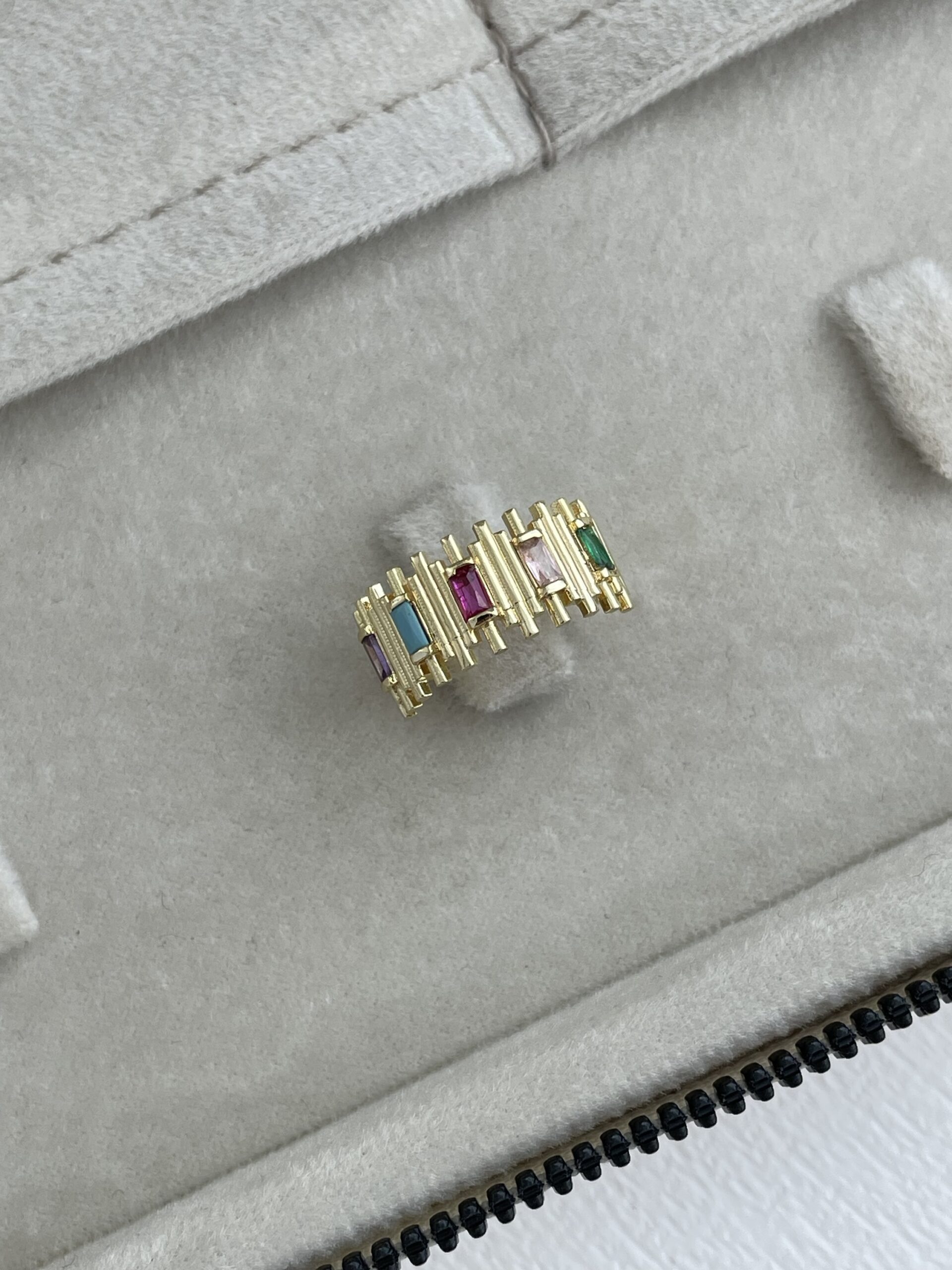 Özel Seri Renkli Baget Taş Geometrik Gold Ayarlanabilir Yüzük