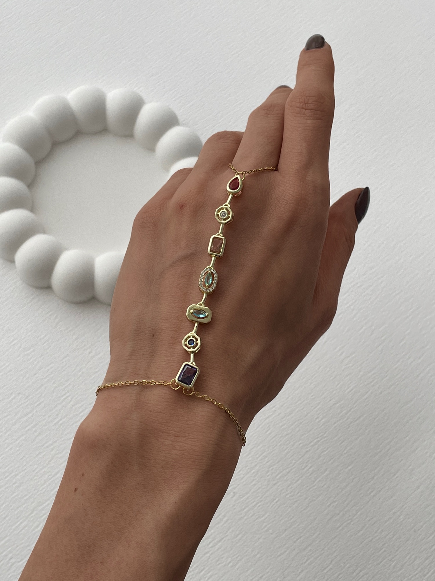 Özel Seri Renkli Baget Taşlı Geometrik Tasarım Gold Marka Şahmeran
