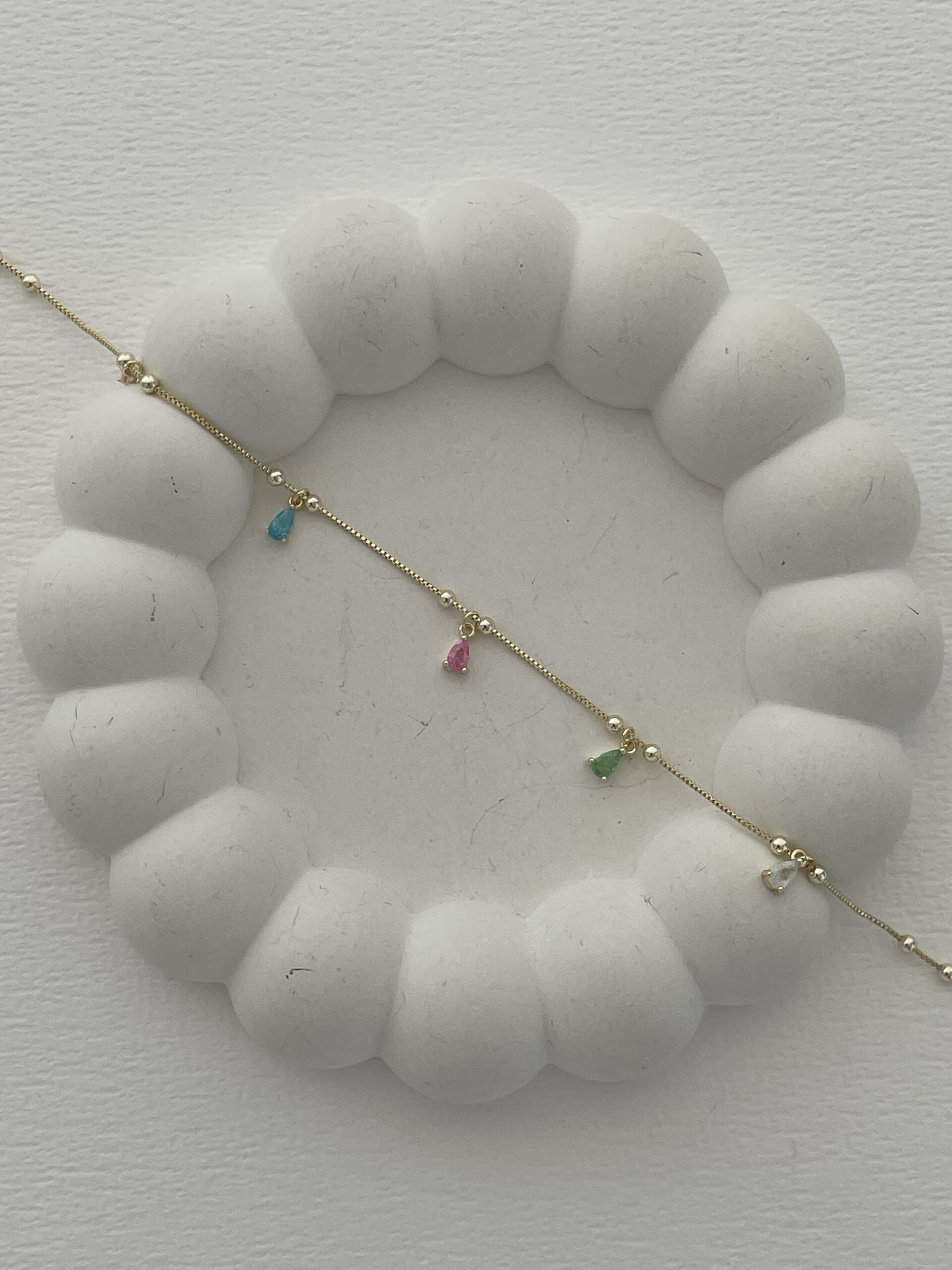 Özel Seri Renkli Damla Taş Tasarım Gold Halhal