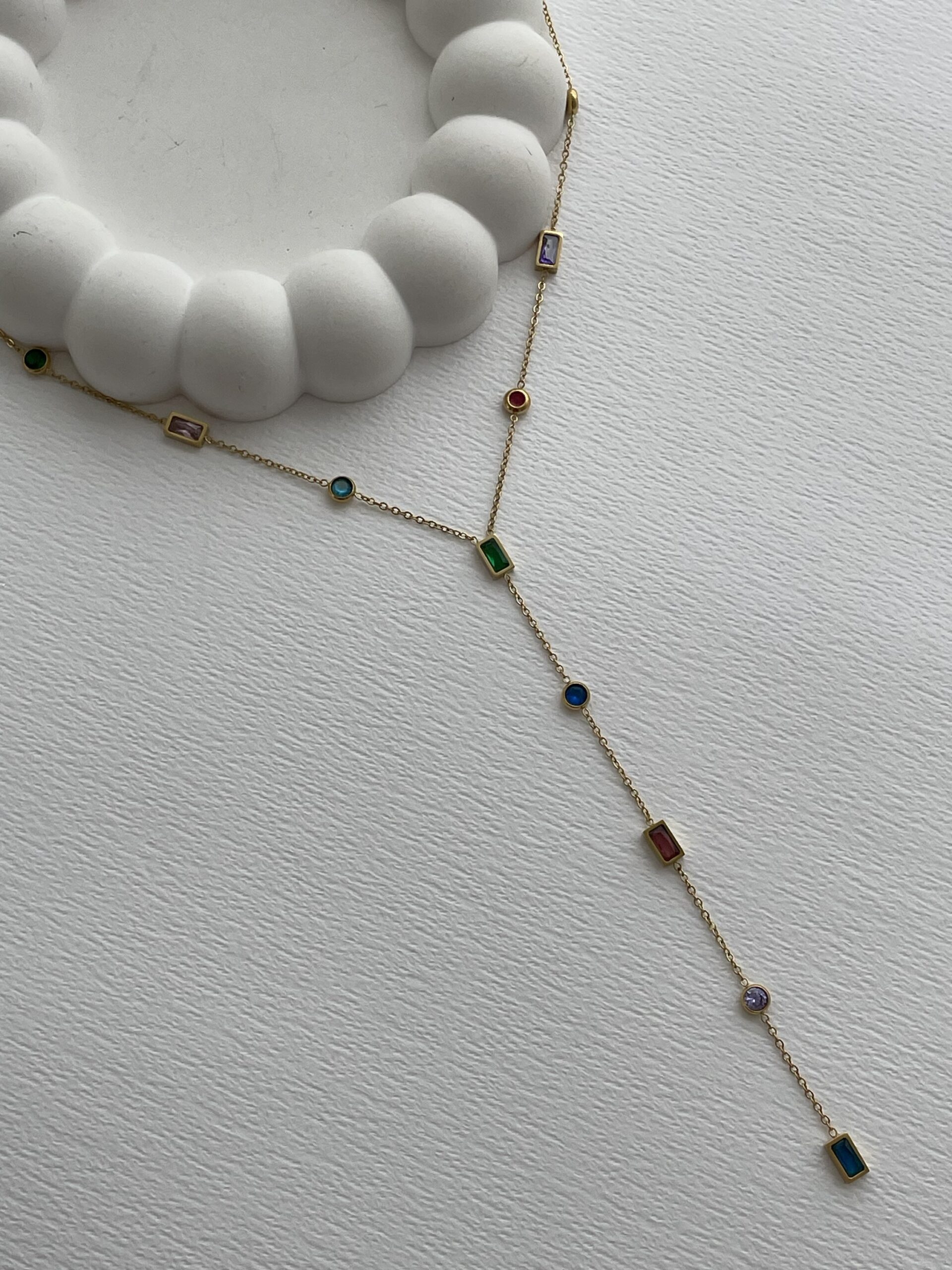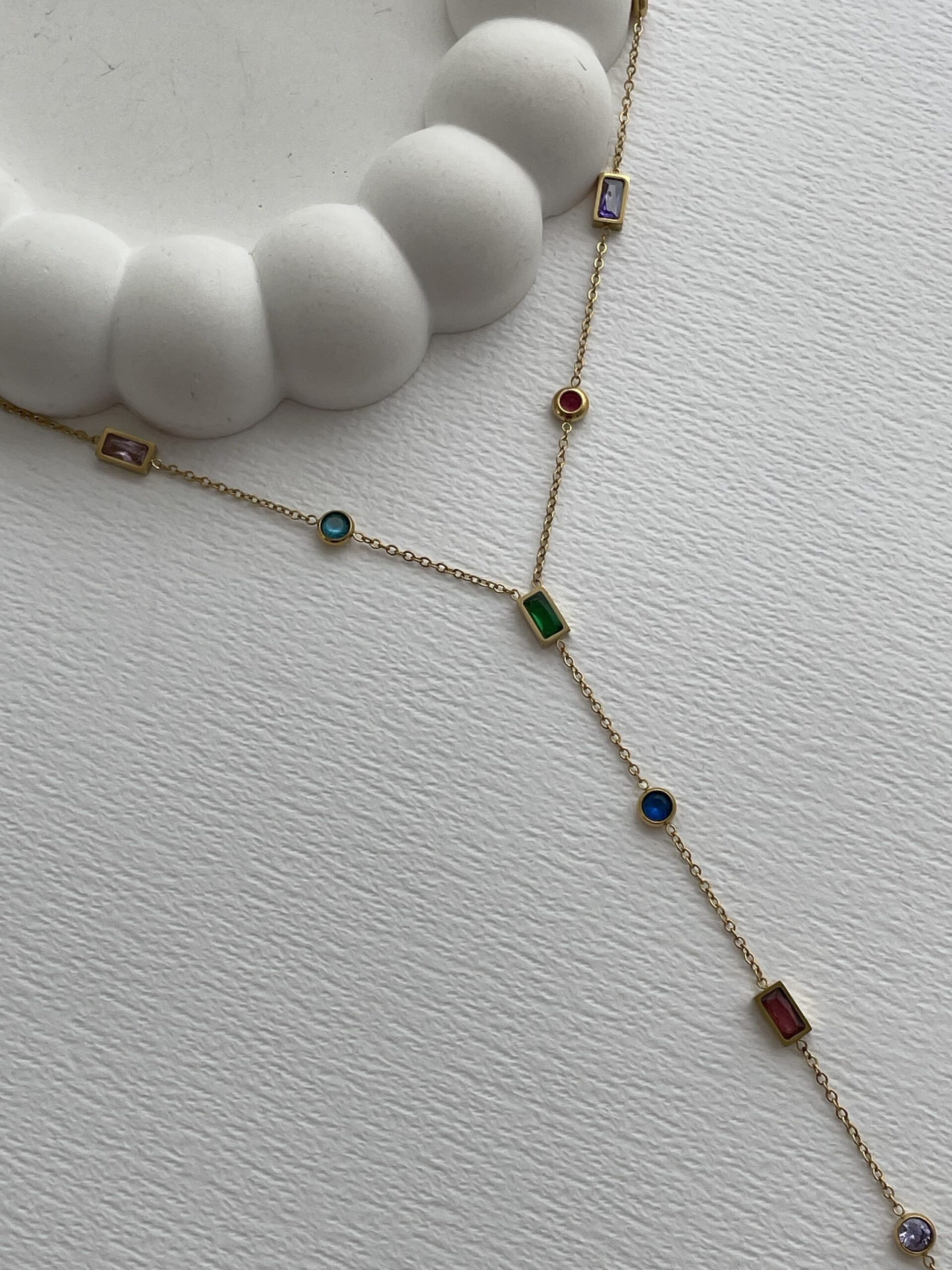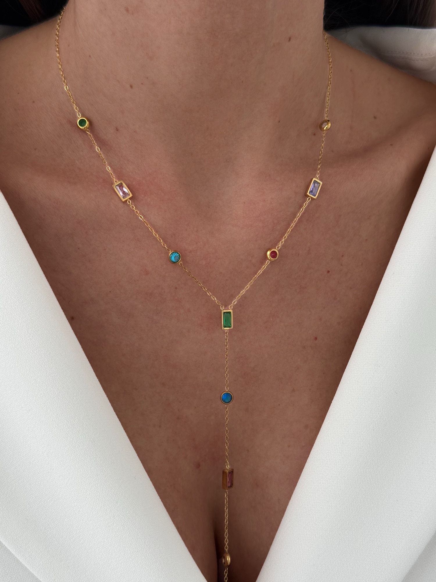 Özel Seri Renkli Taş Geometrik Y Tasarım Gold Kolye