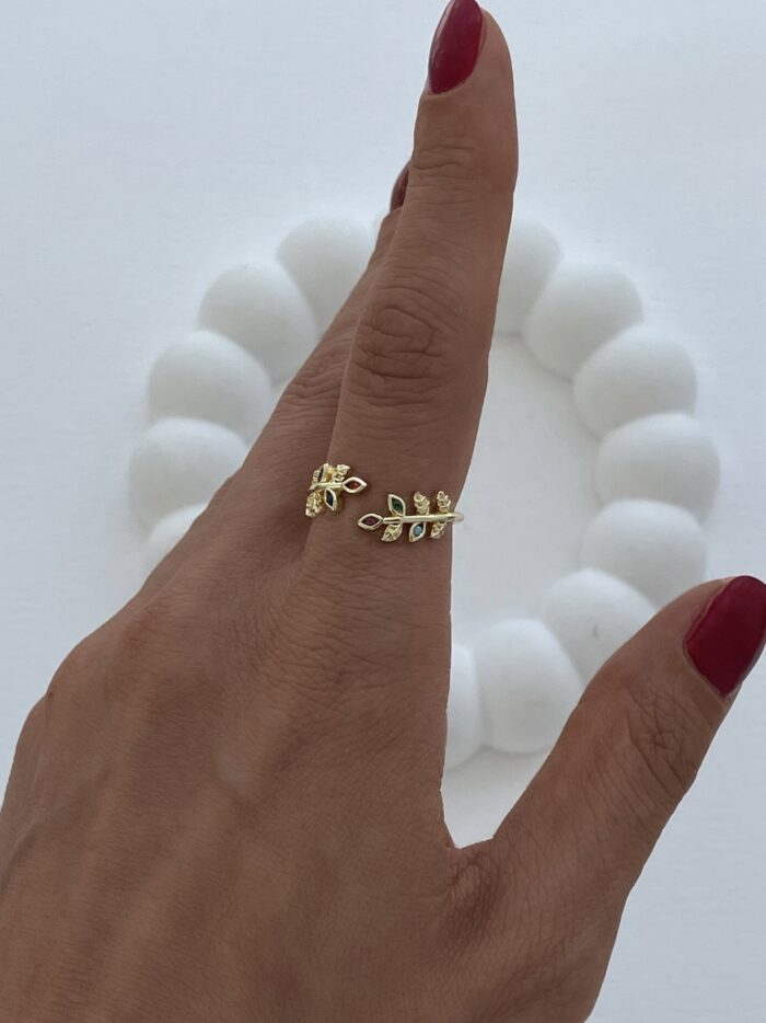 Özel Seri Renkli Zirkon Taş Yaprak Gold Ayarlanabilir Yüzük