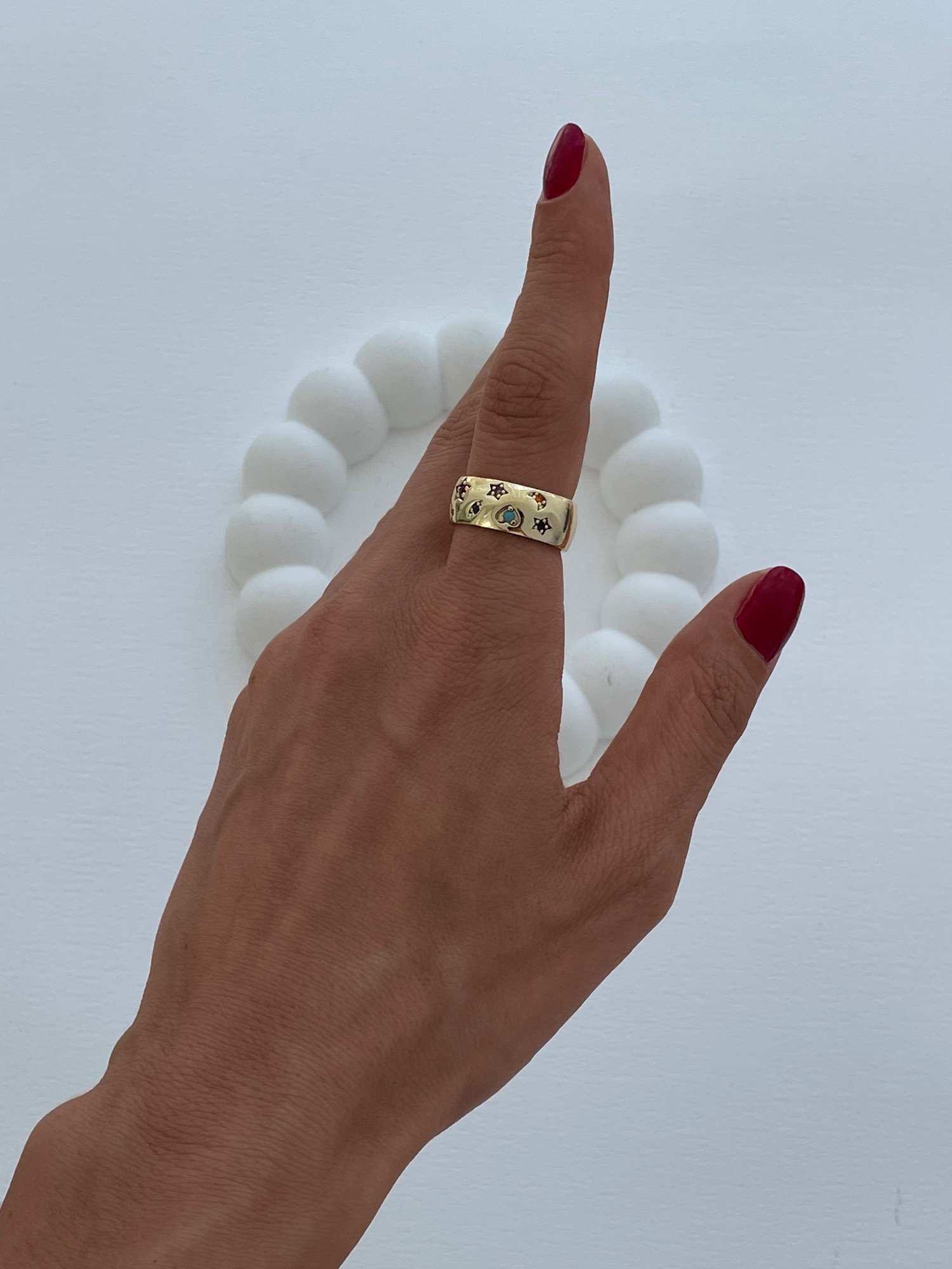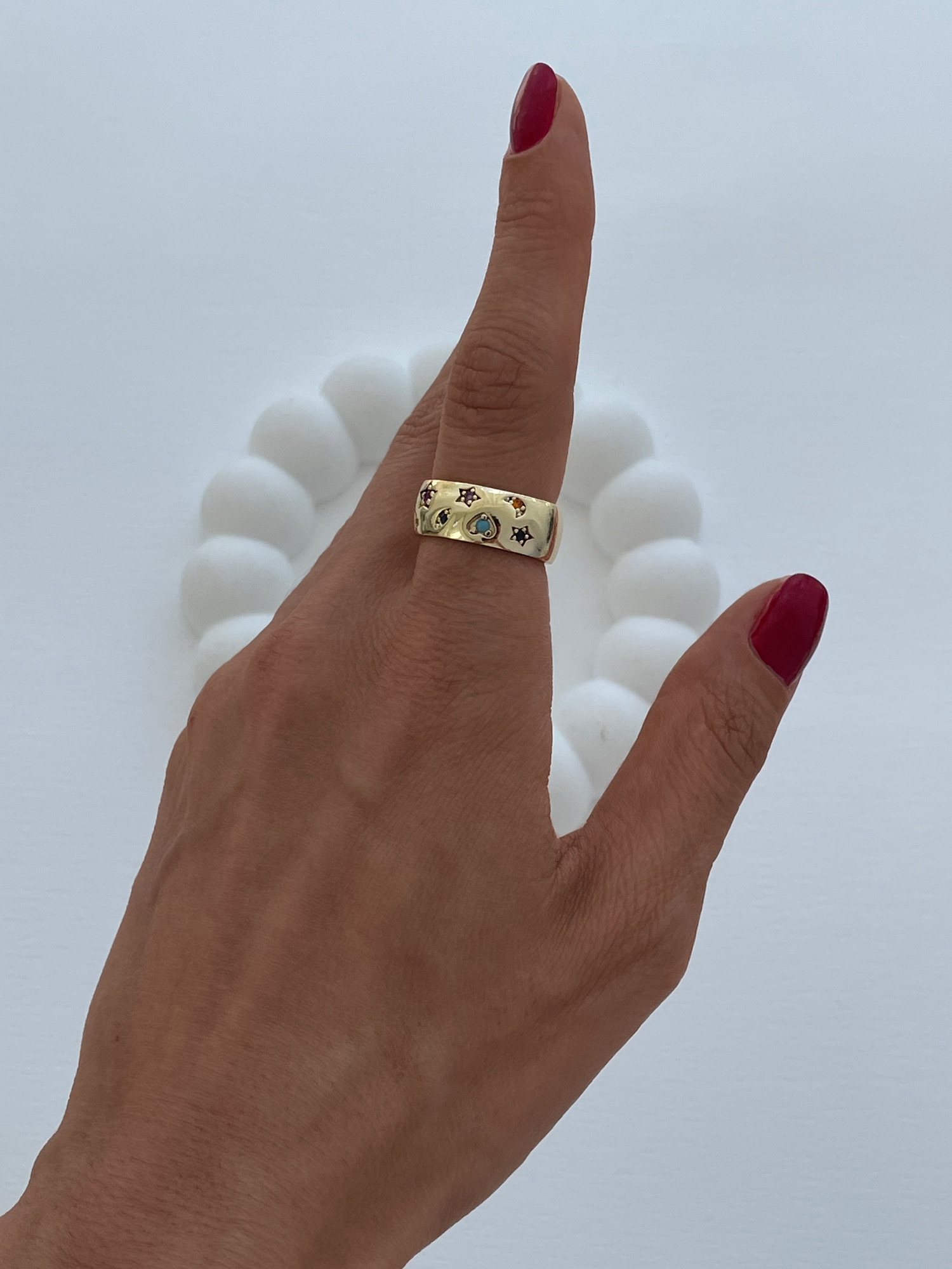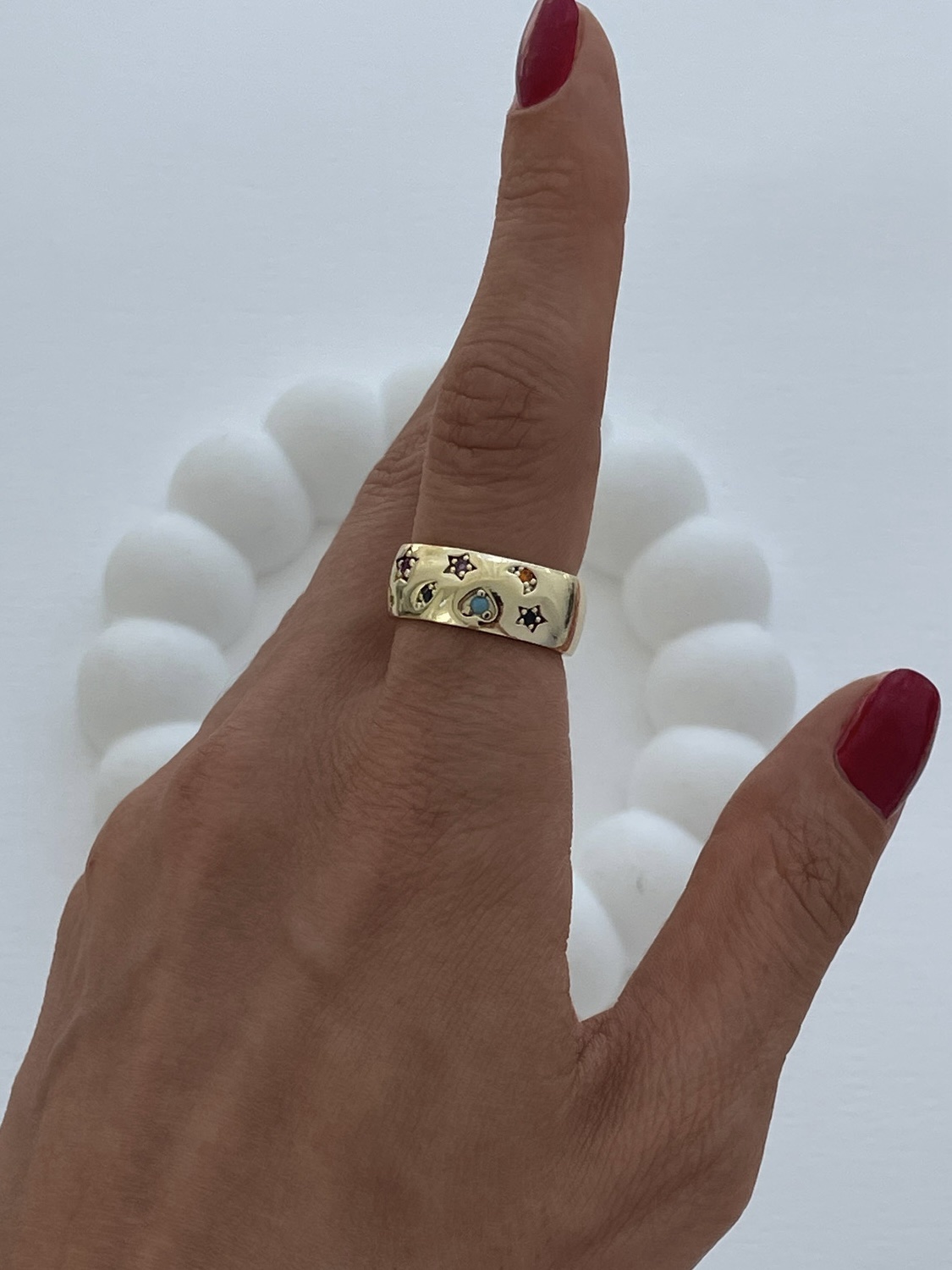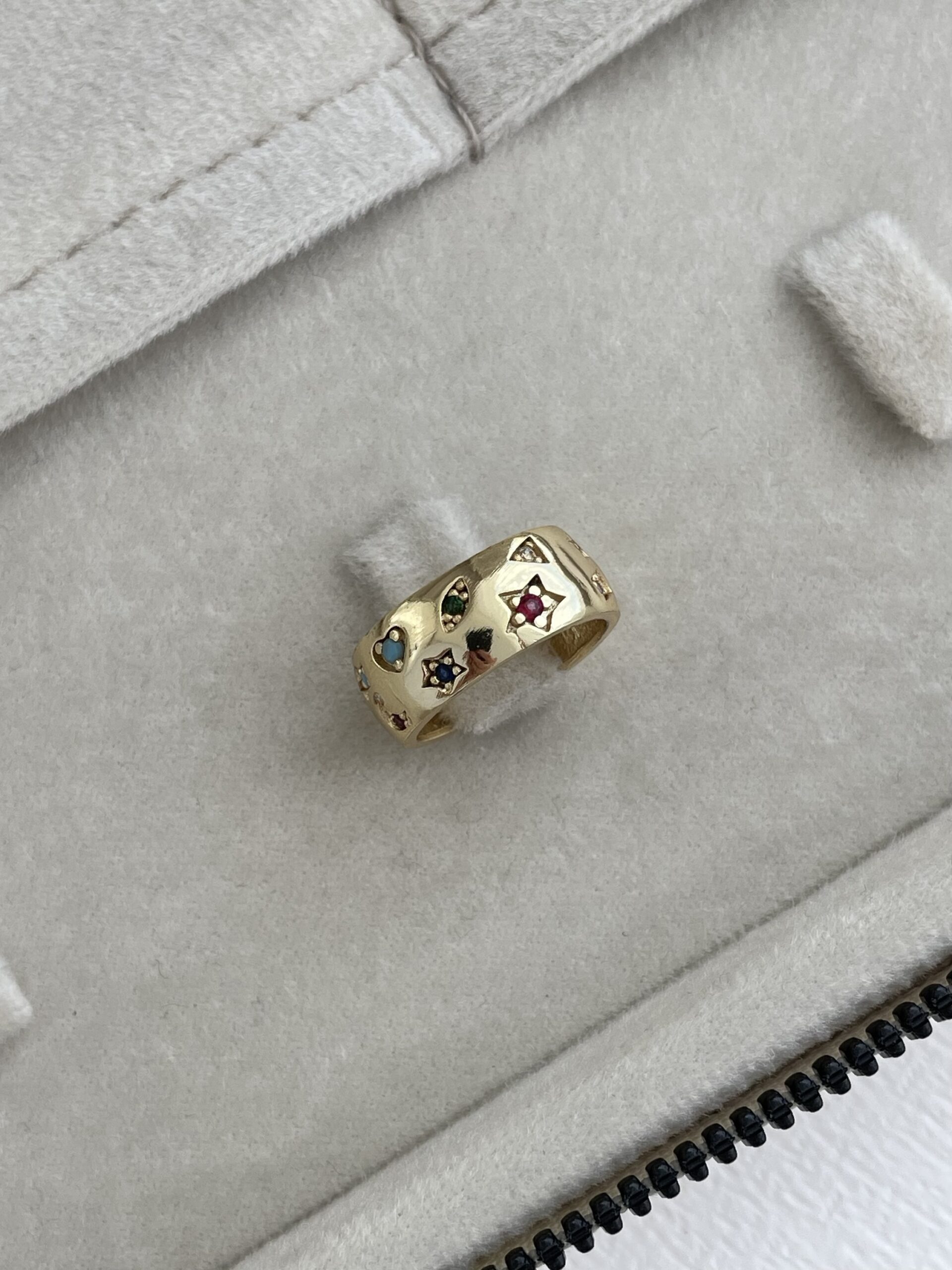 Özel Seri Renkli Zirkon Taş Yıldız Gold Ayarlanabilir Yüzük