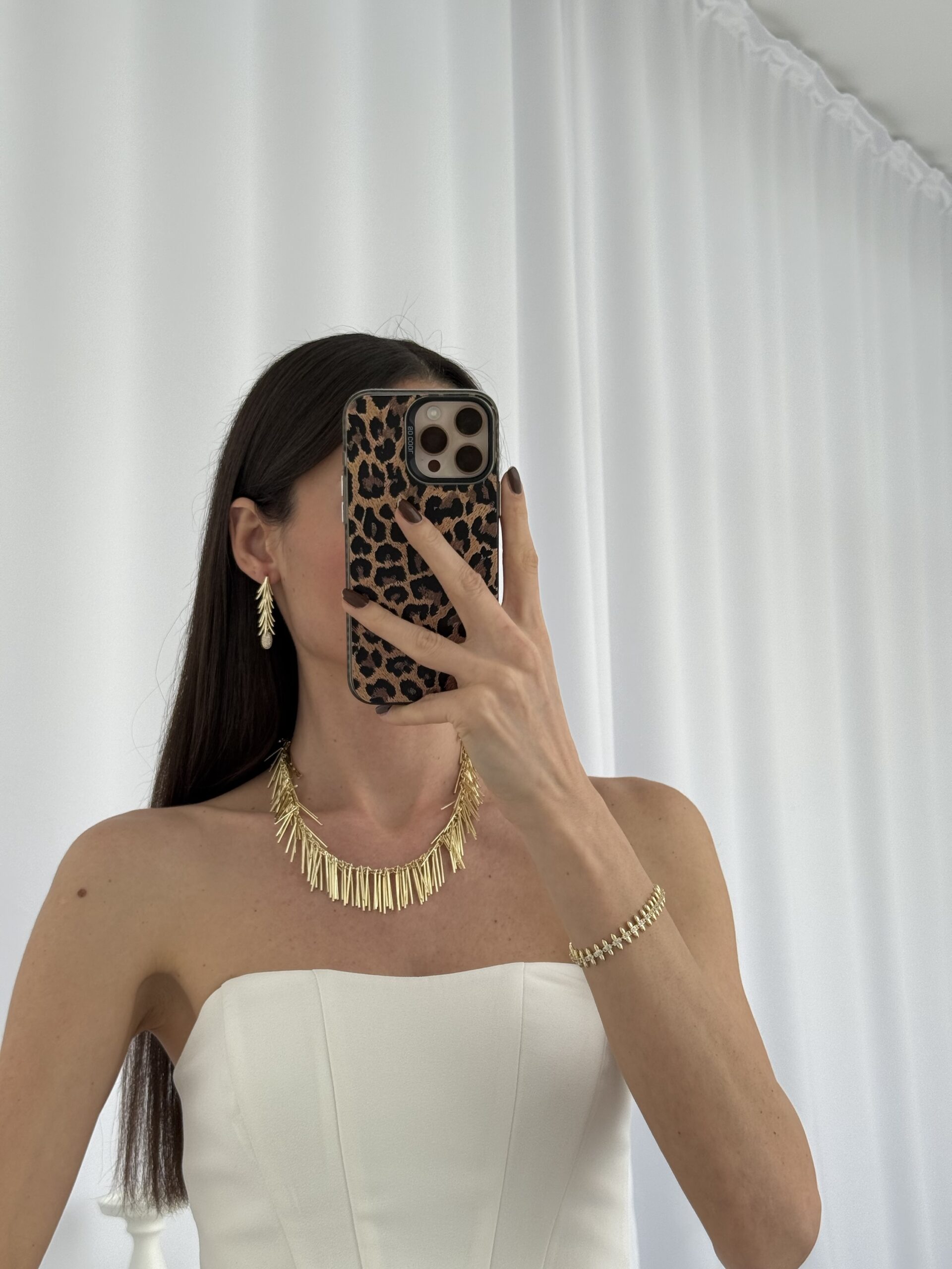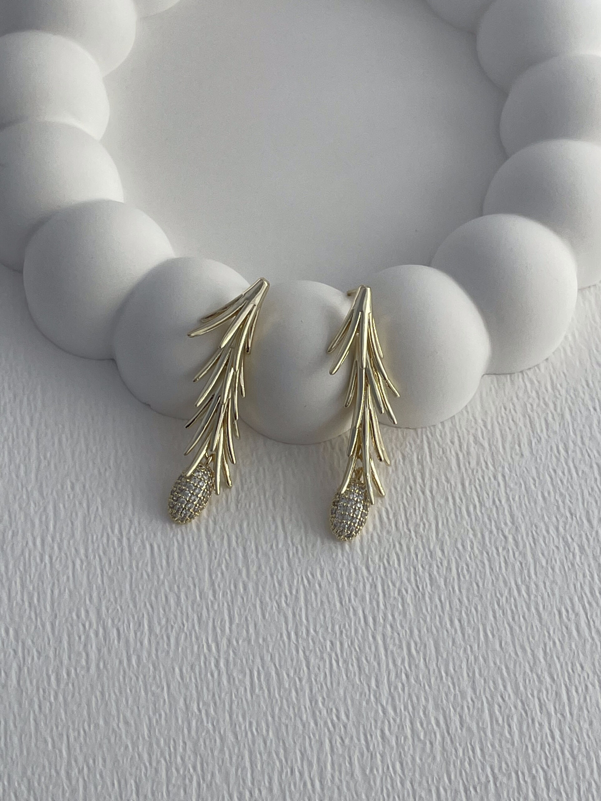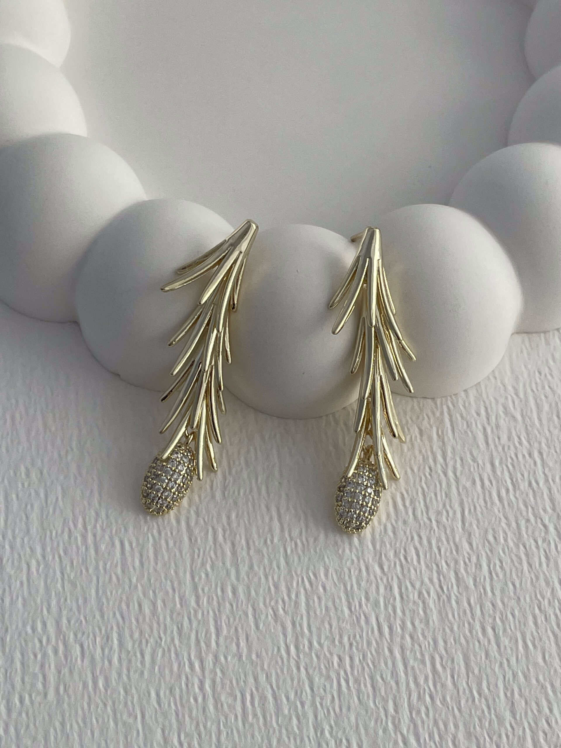 Özel Seri Saçak Tasarım Zirkon Taşlı Gold Küpe