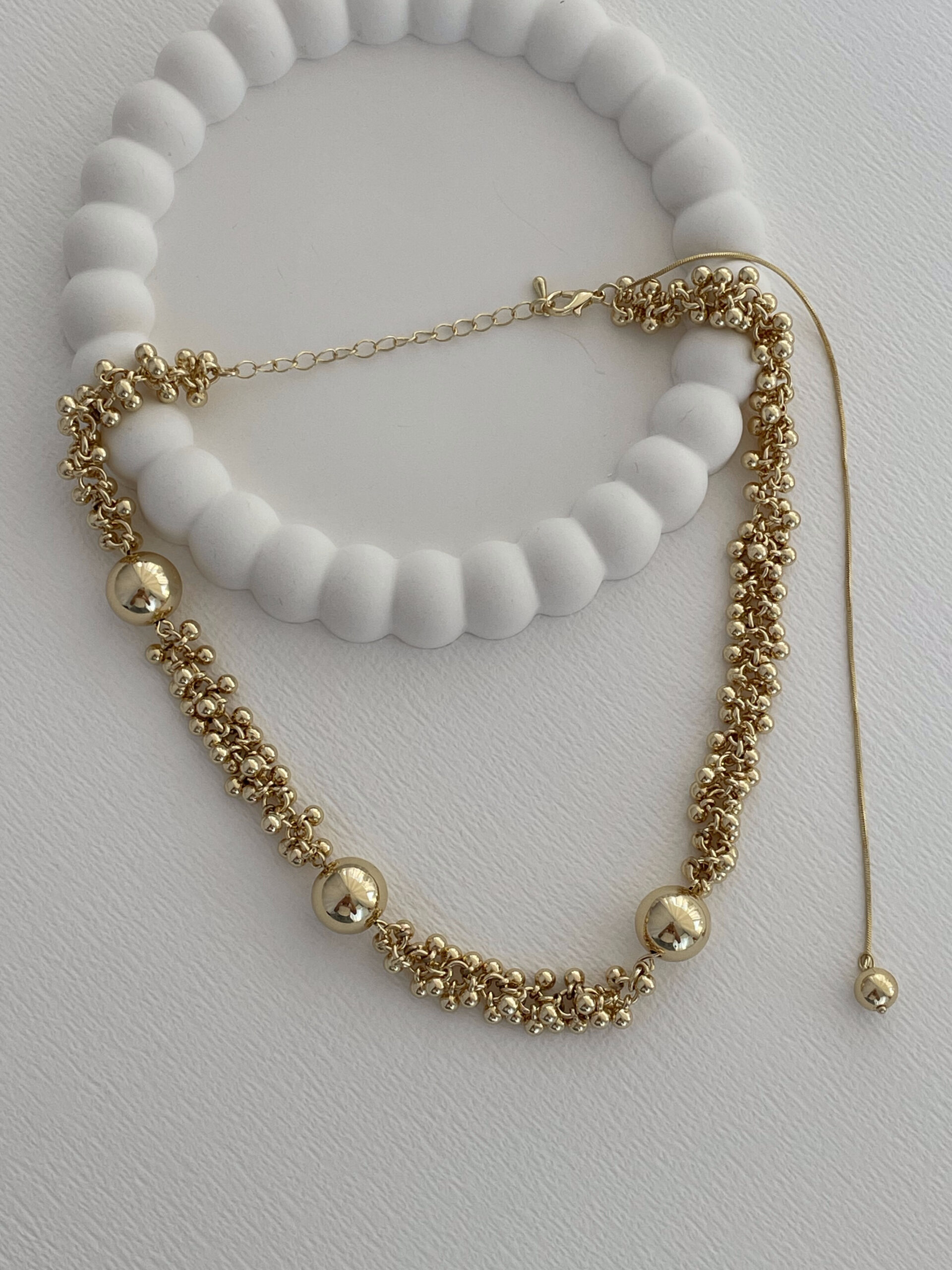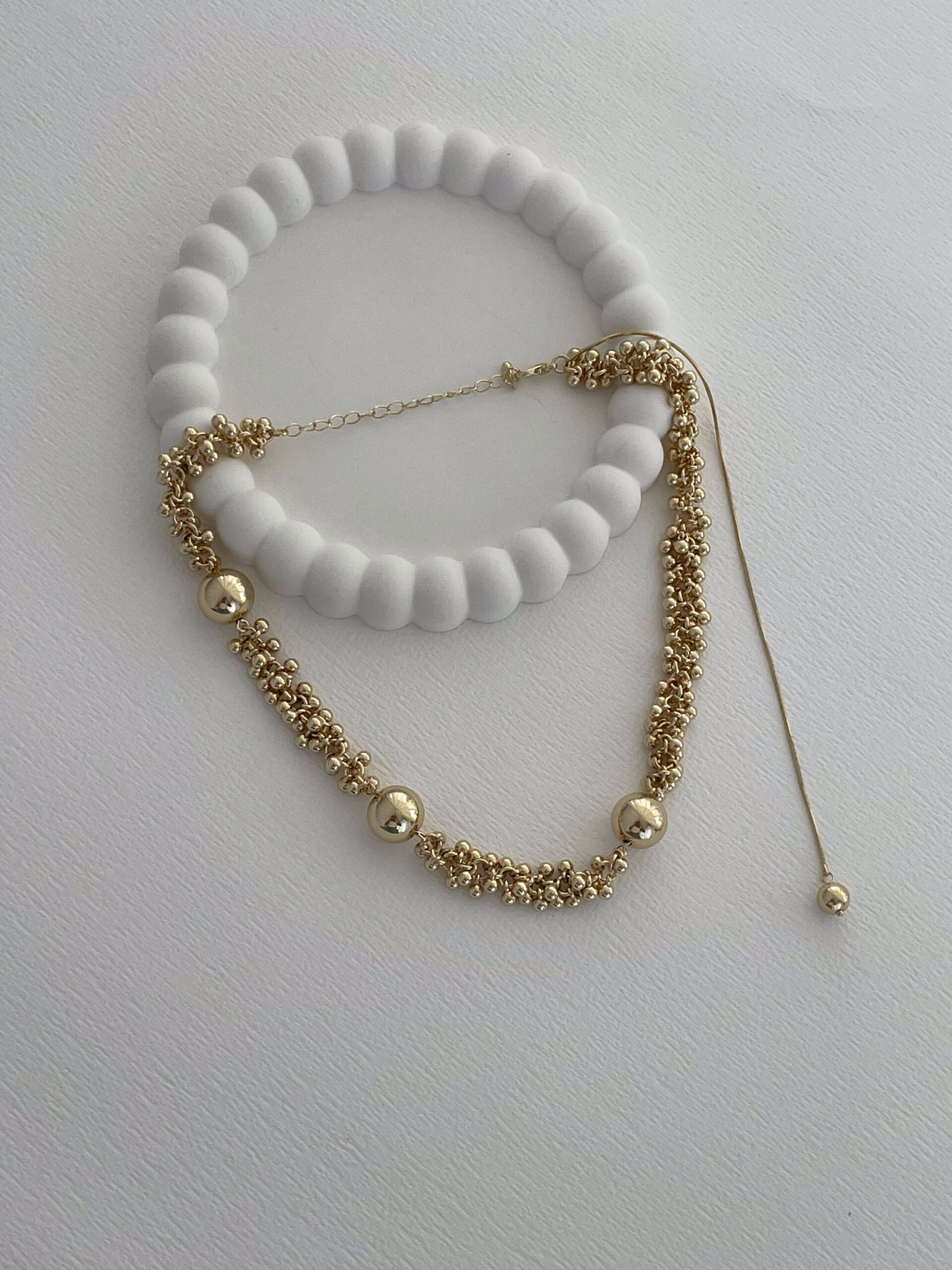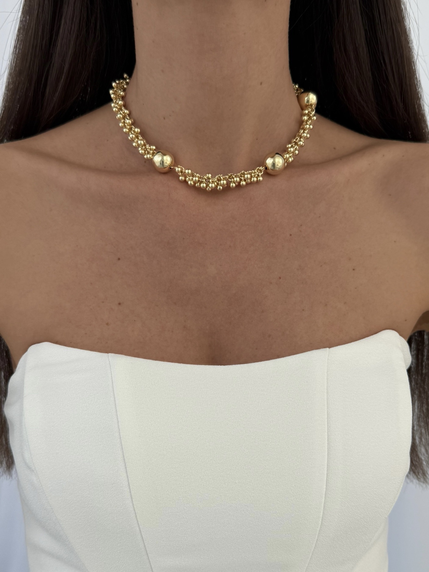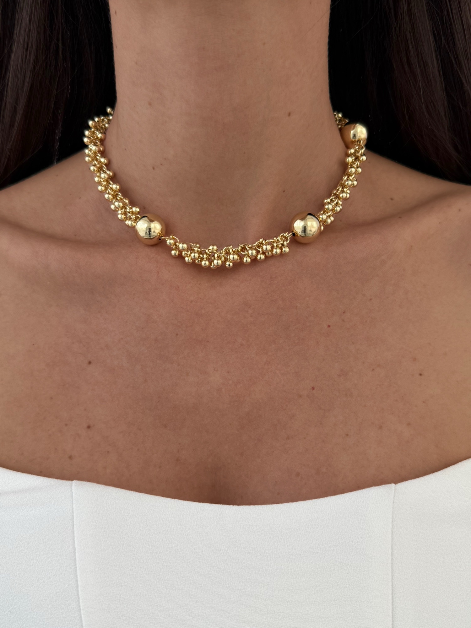 Özel Seri Saçak Top Tasarım Sırt Dekolte Detay Gold Kolye