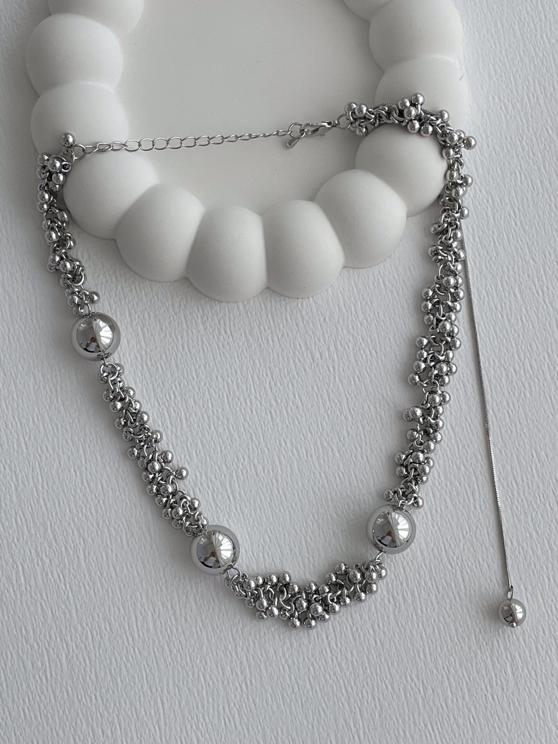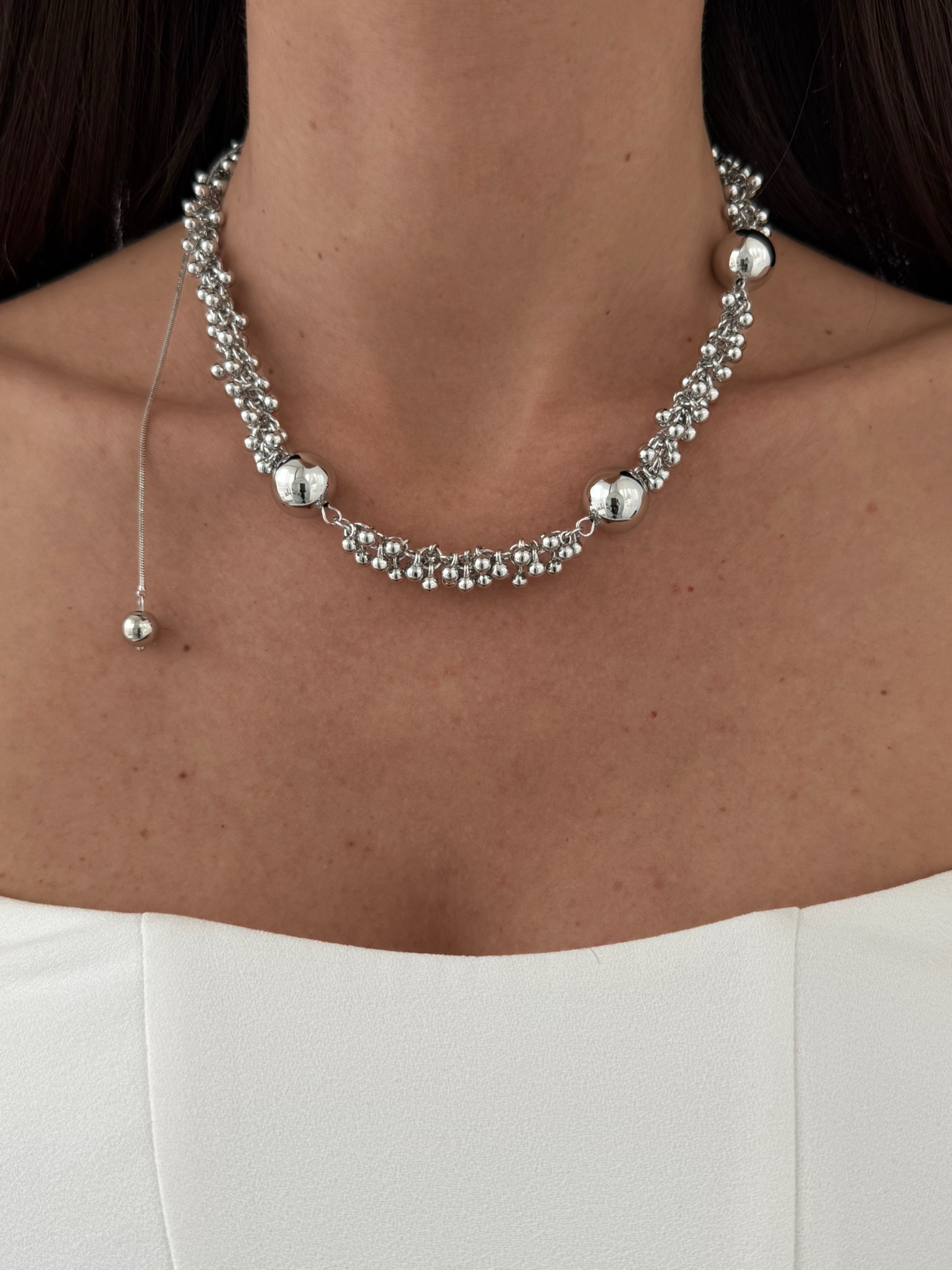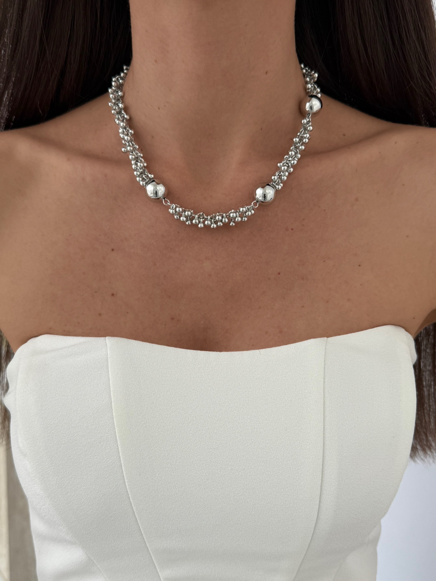 Özel Seri Saçak Top Tasarım Sırt Dekolte Detay Gümüş Kolye