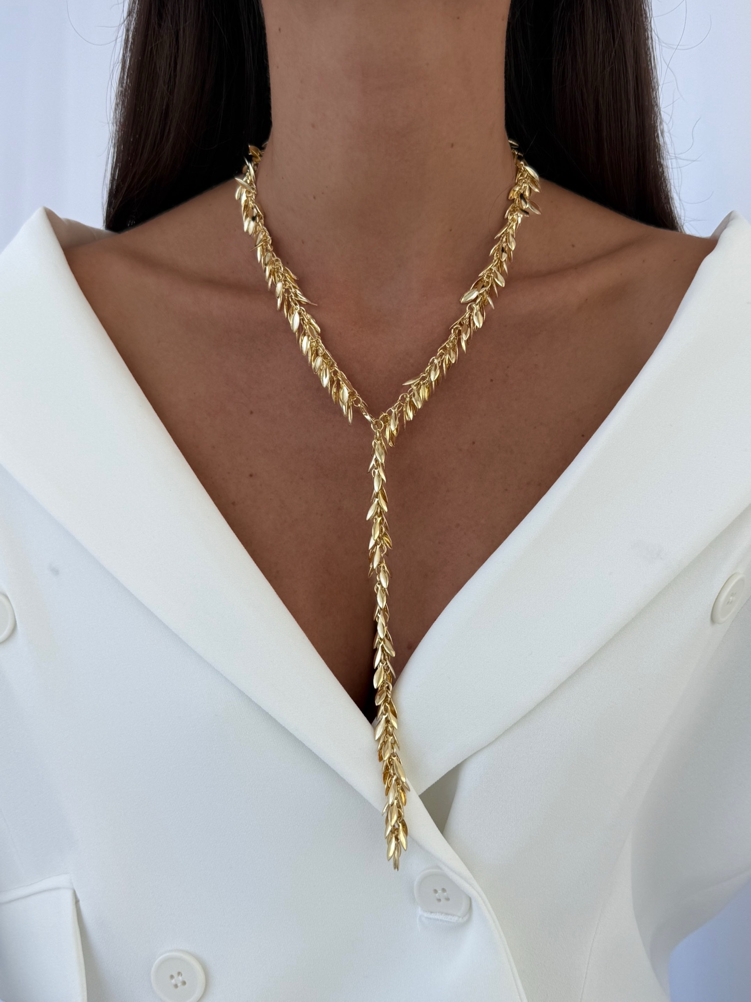 Özel Seri Saçak Yaprak Tasarım Gold Y Kolye