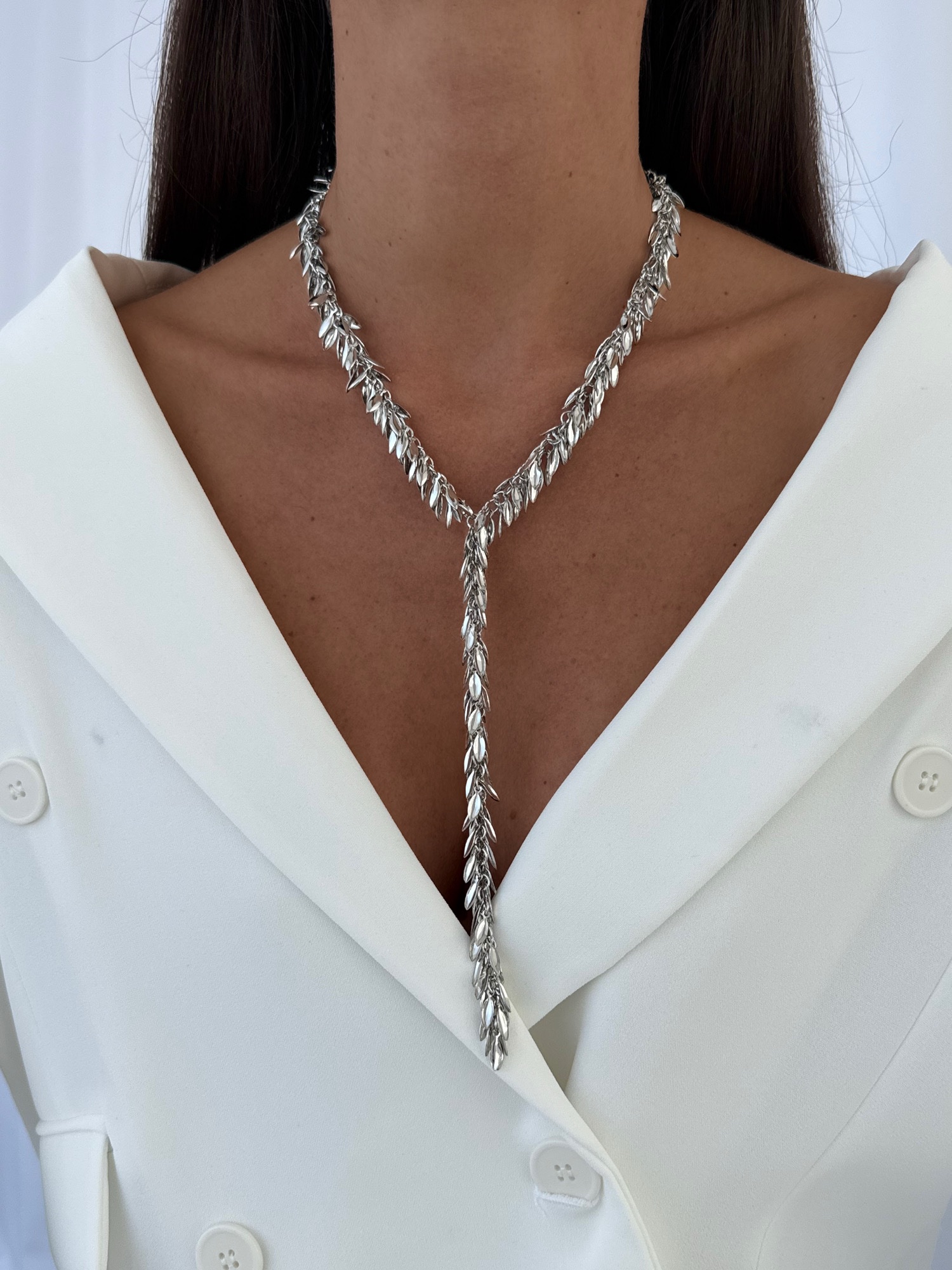 Özel Seri Saçak Yaprak Tasarım Gümüş Y Kolye