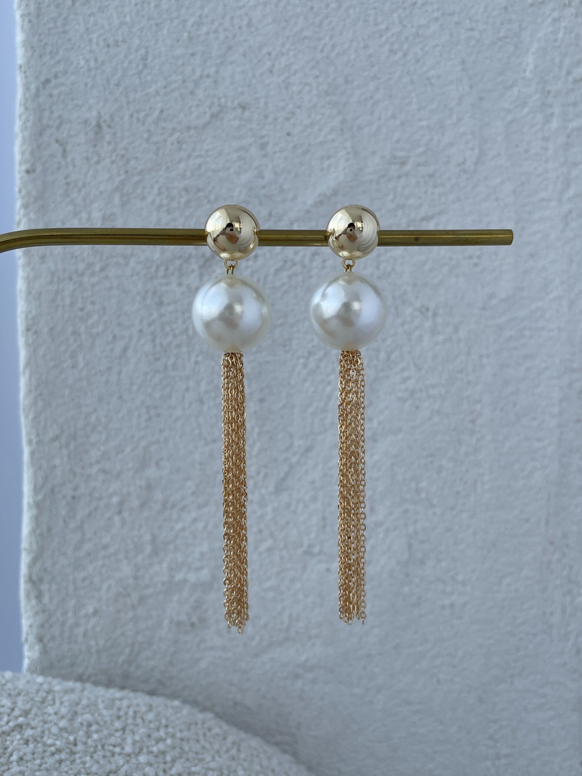 Özel Seri Sallantılı Zincir İnci Gold Küpe