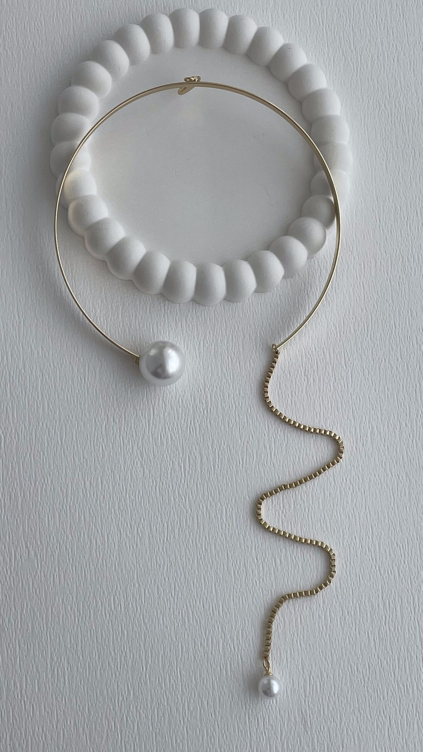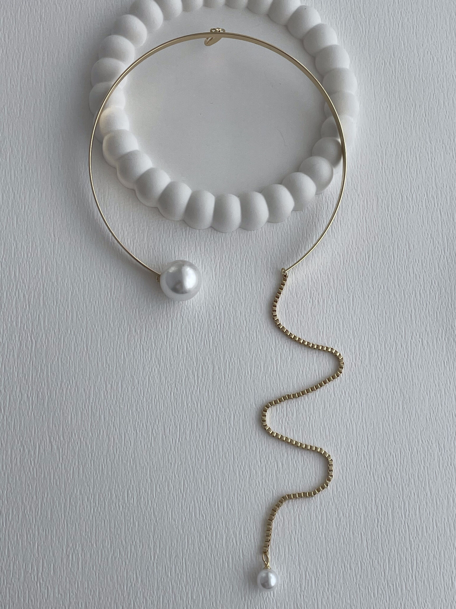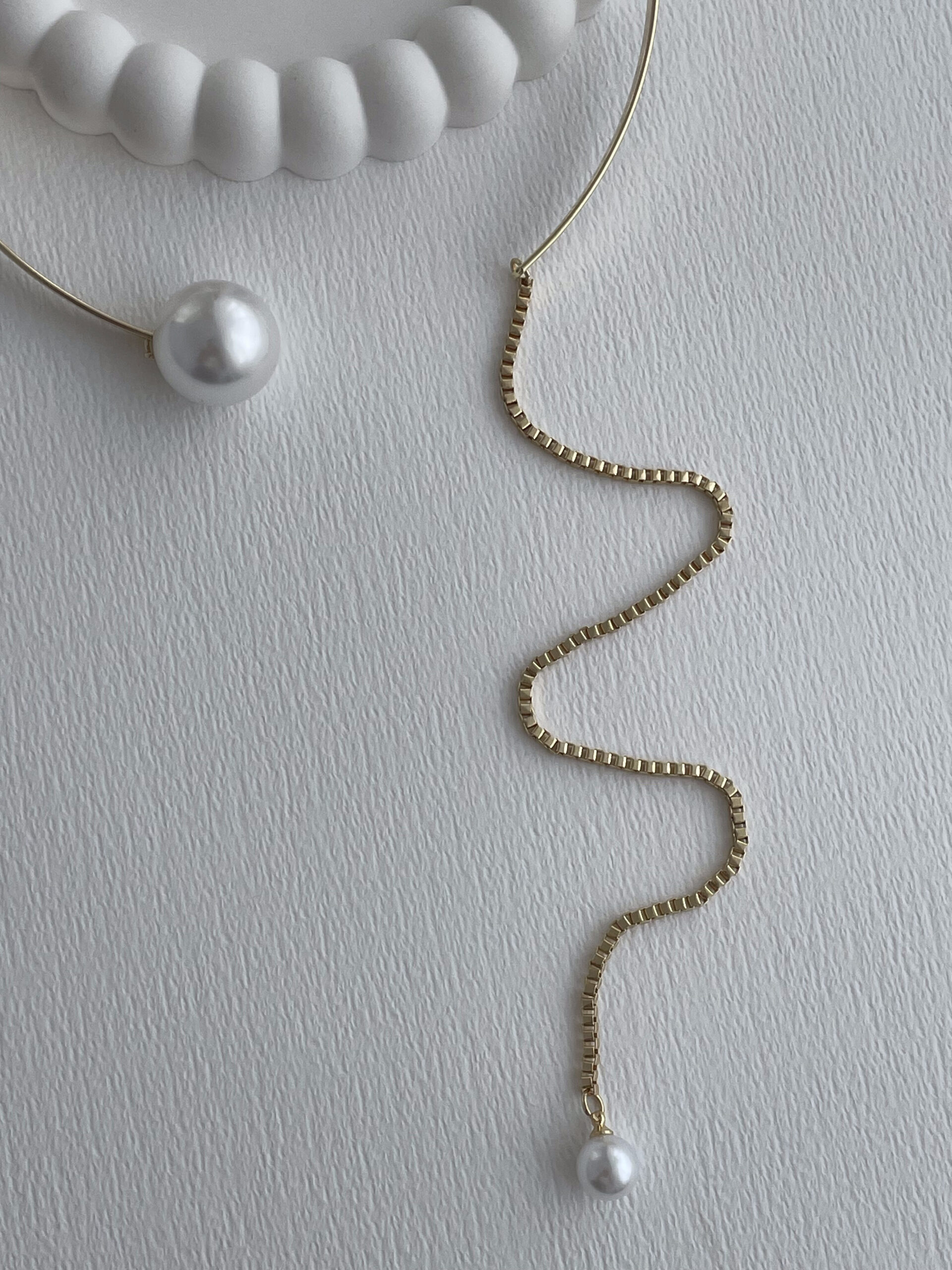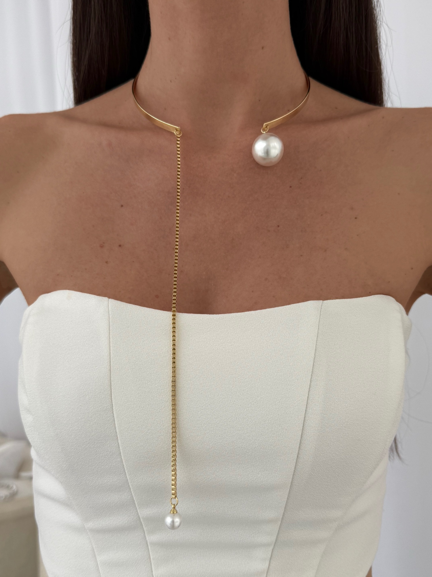 Özel Seri Sallantılı İnci Uç Detay Gold Choker Kolye