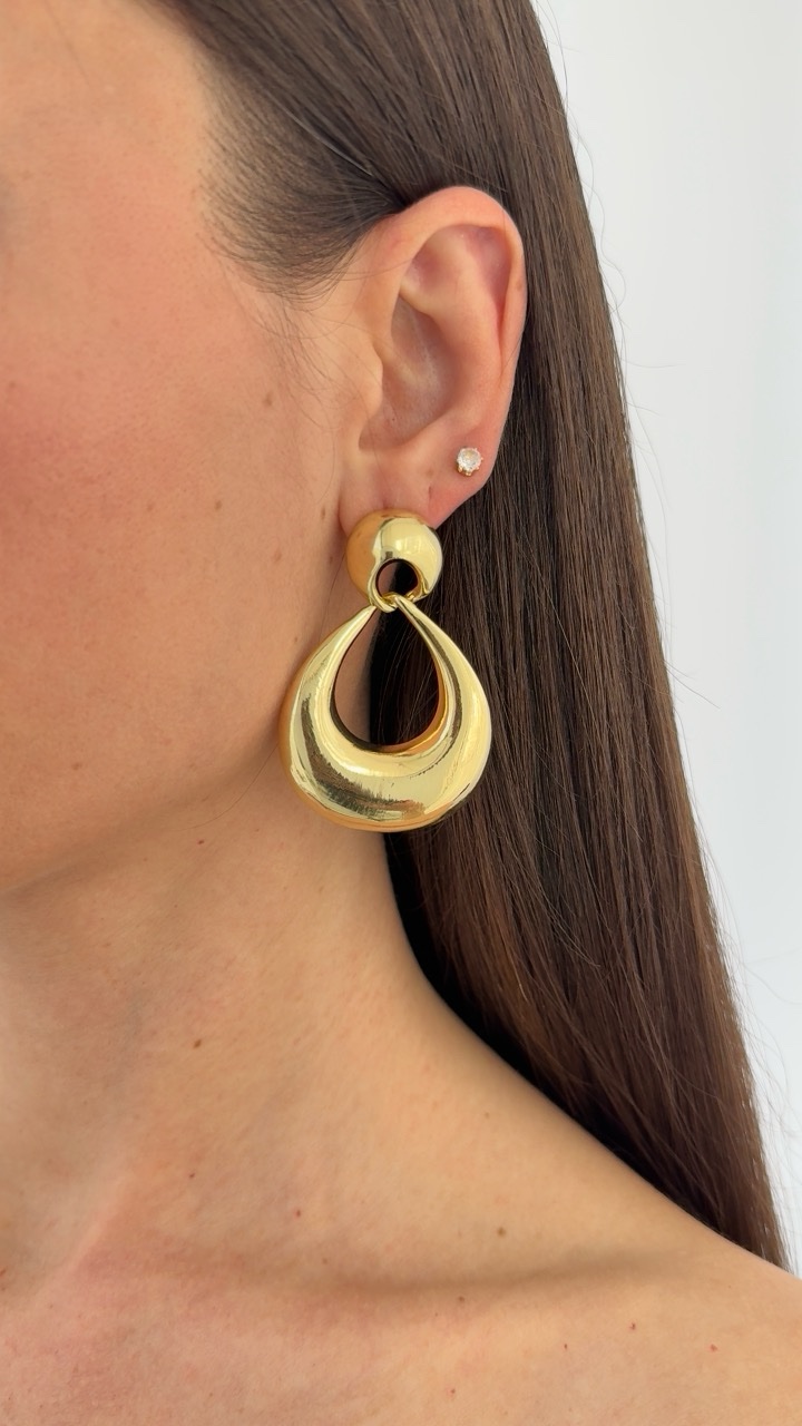 Özel Seri Sallantılı Oval Tasarım Gold Küpe