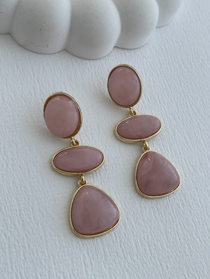 Özel Seri Sallantılı Oval Tasarım Pembe Hawai Küpe
