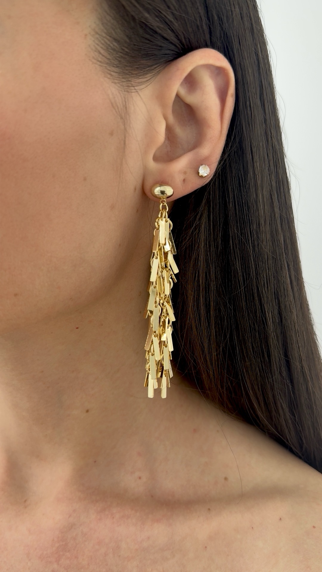 Özel Seri Sallantılı Saçak Tasarım Gold Küpe