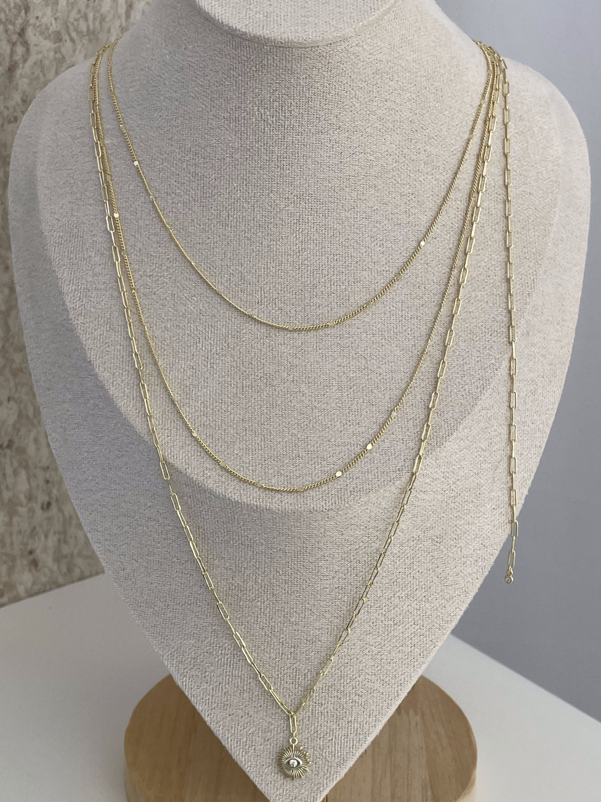 Özel Seri Sallantılı Zirkon Taş Detay Göz Tasarım İnce Üçlü Gold Kolye