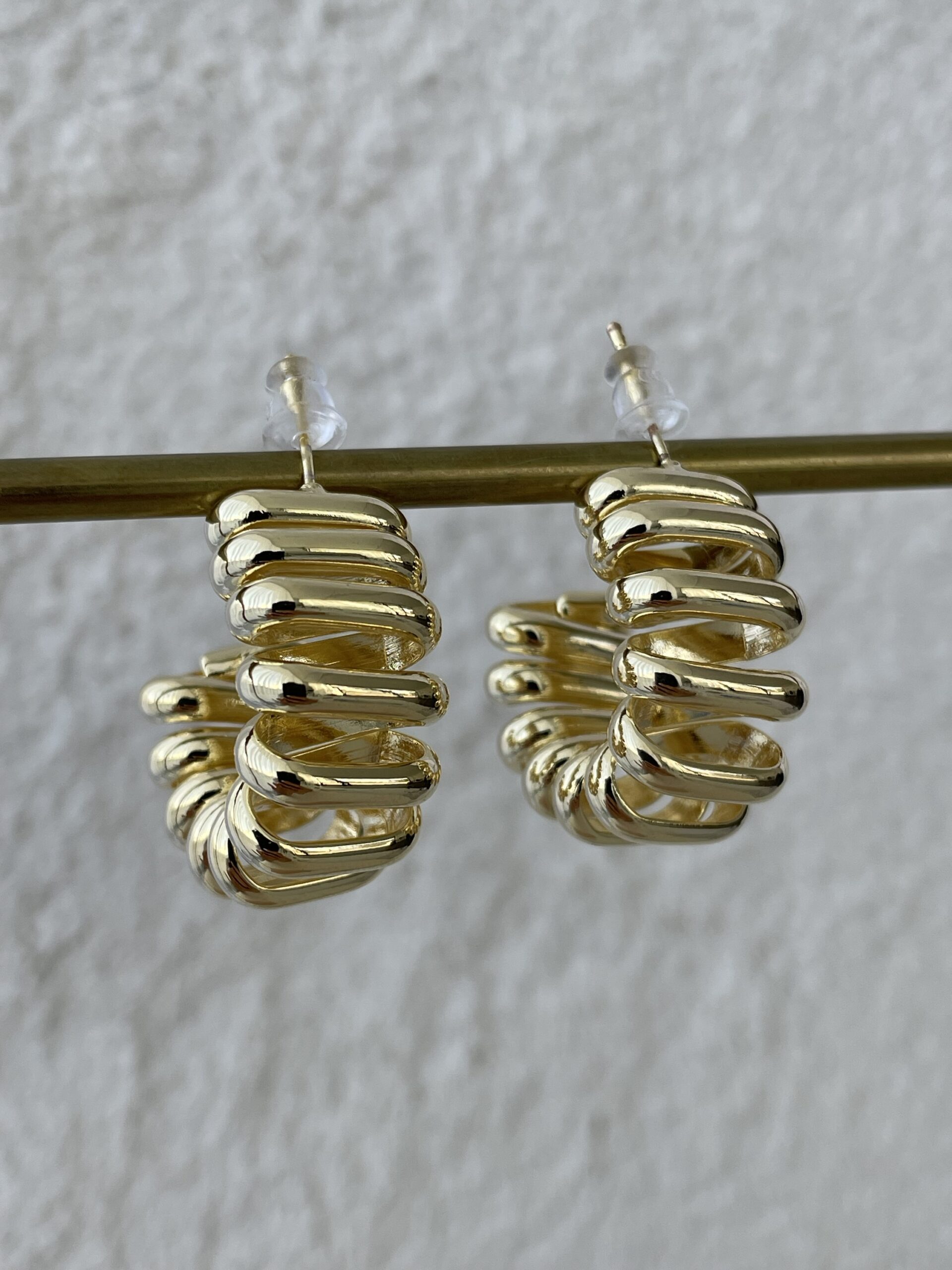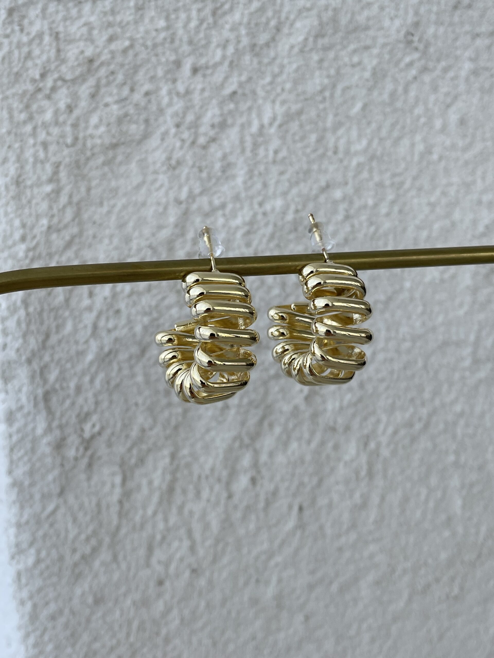 Özel Seri Sarmal Tasarım Asimetrik Gold Halka Küpe