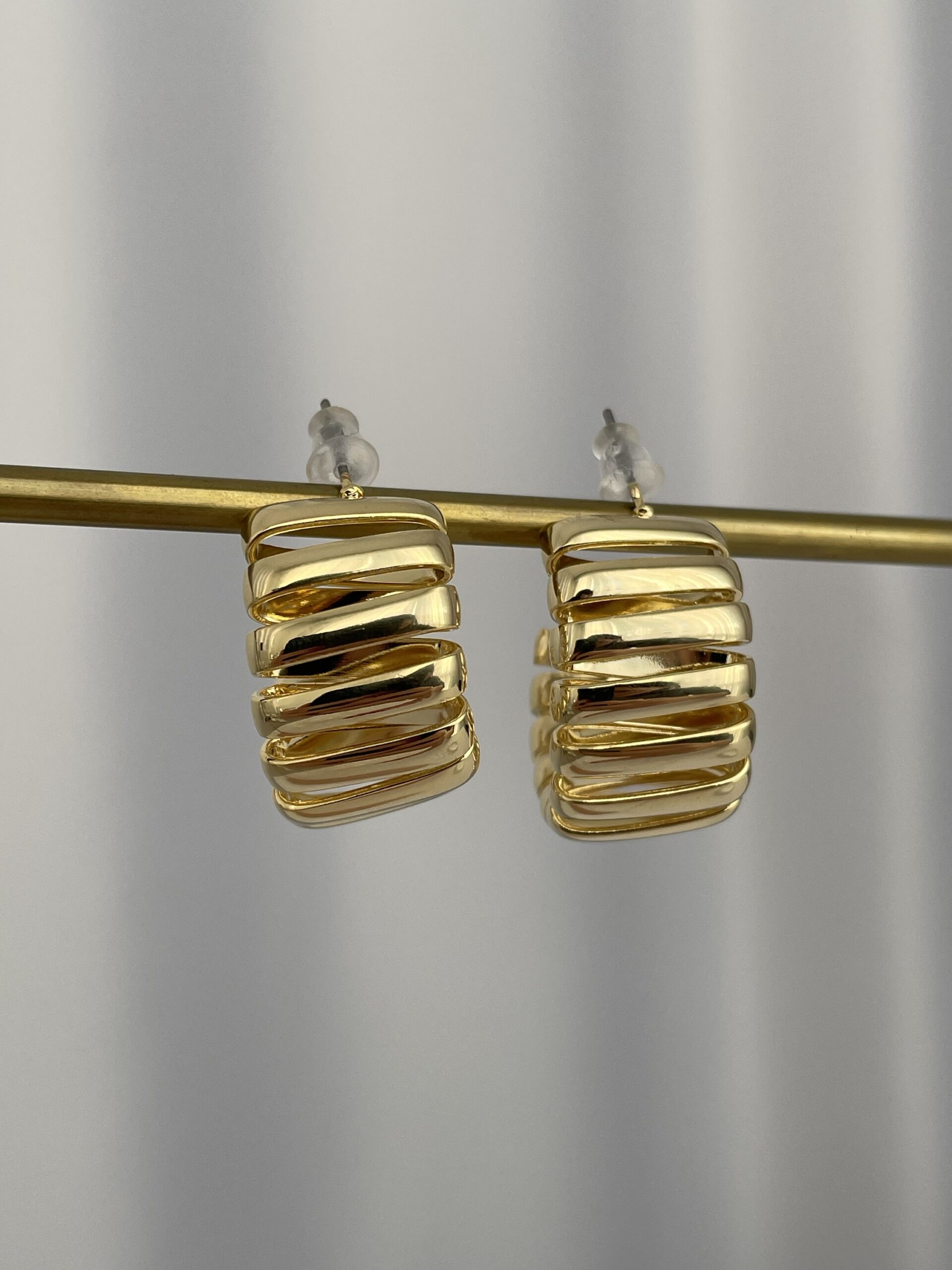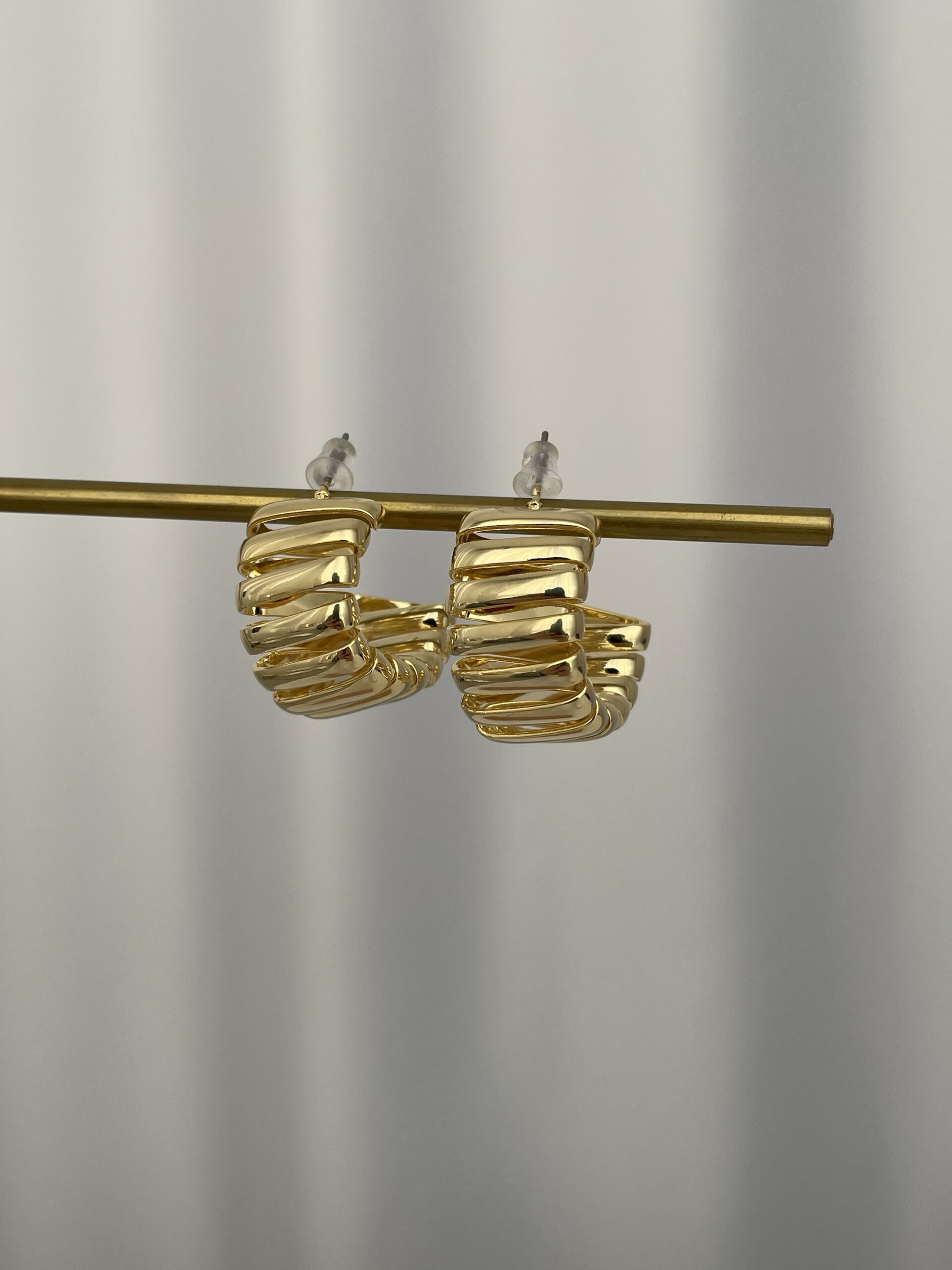 Özel Seri Sarmal Tasarım Asimetrik Gold Halka Küpe