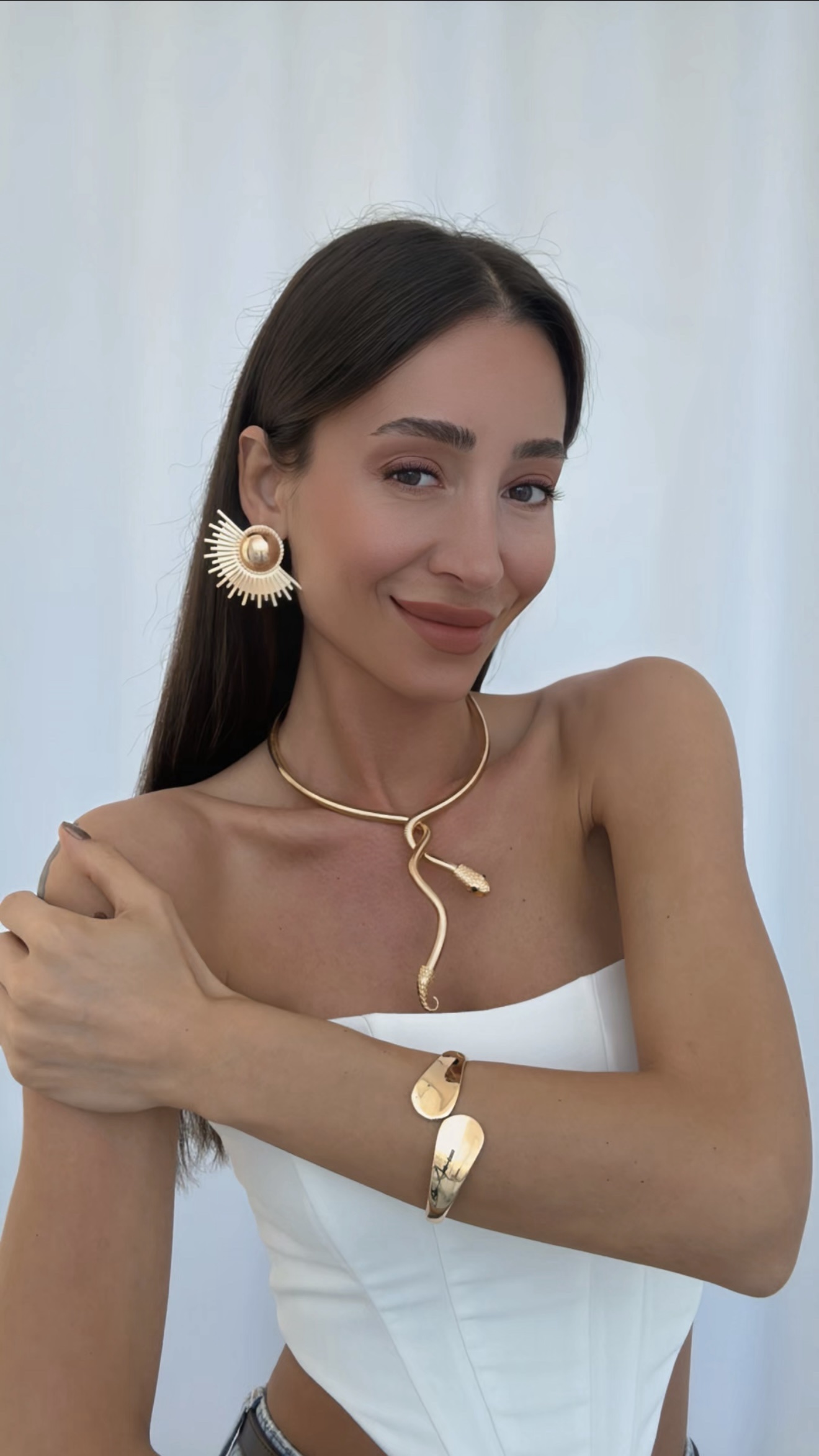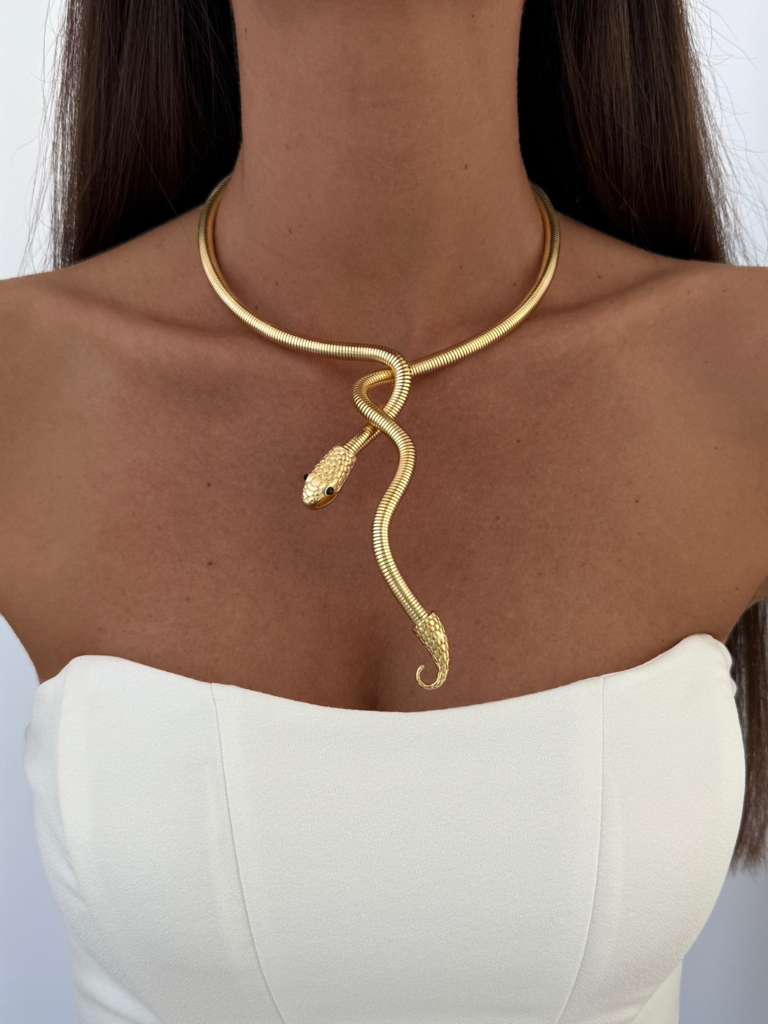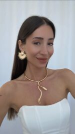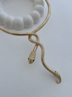 Özel Seri Sarmal Yılan Tasarım Gold Choker Kolye